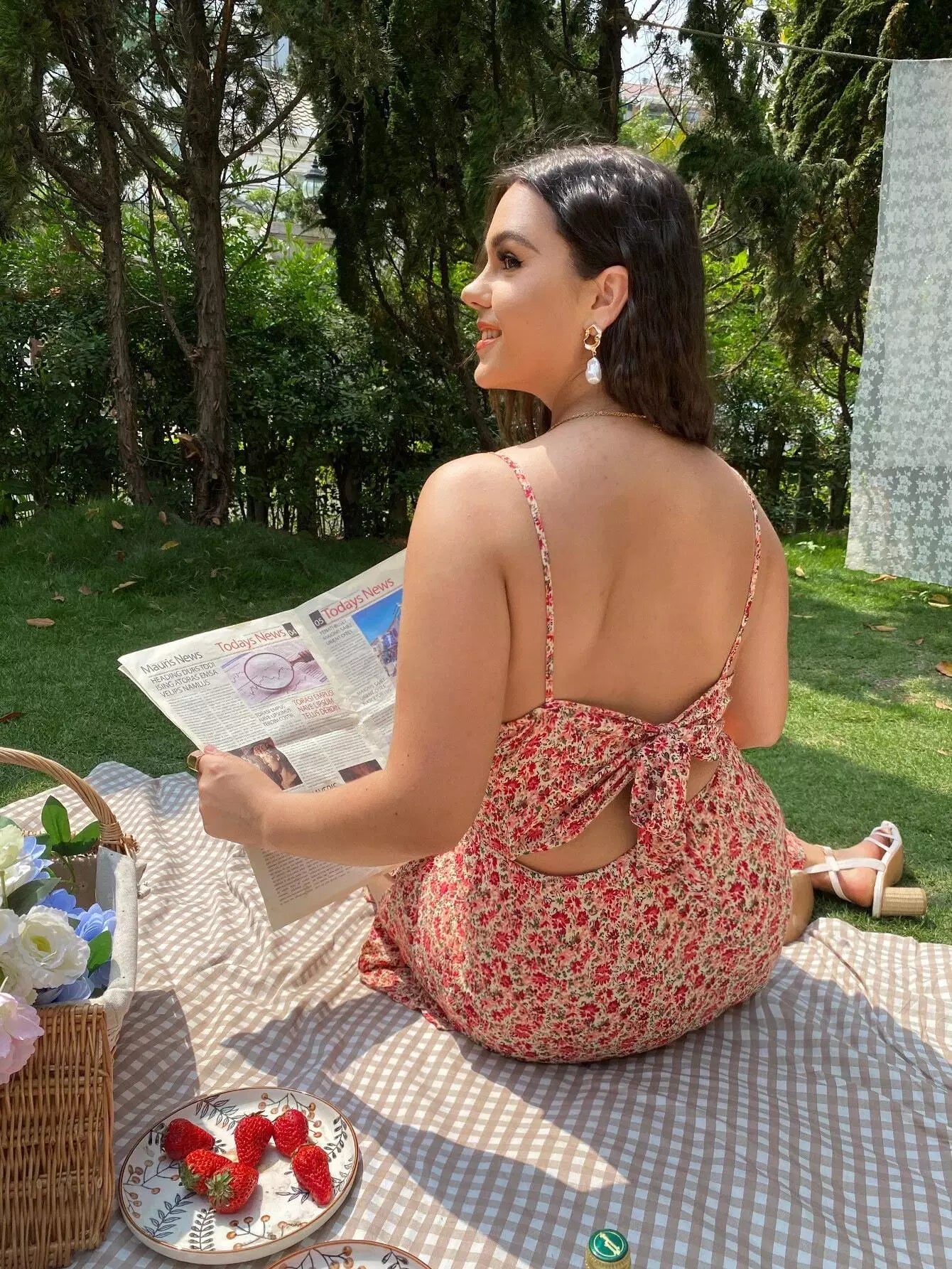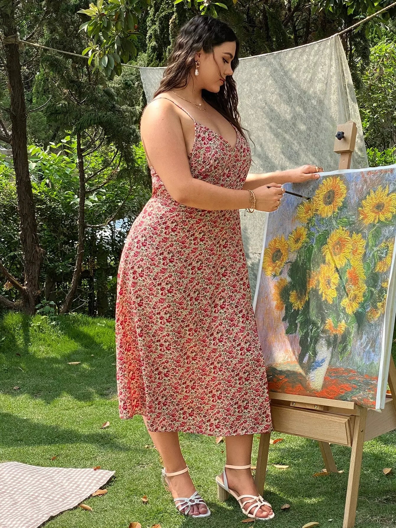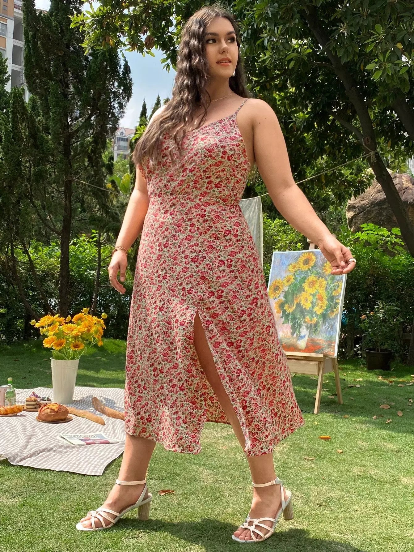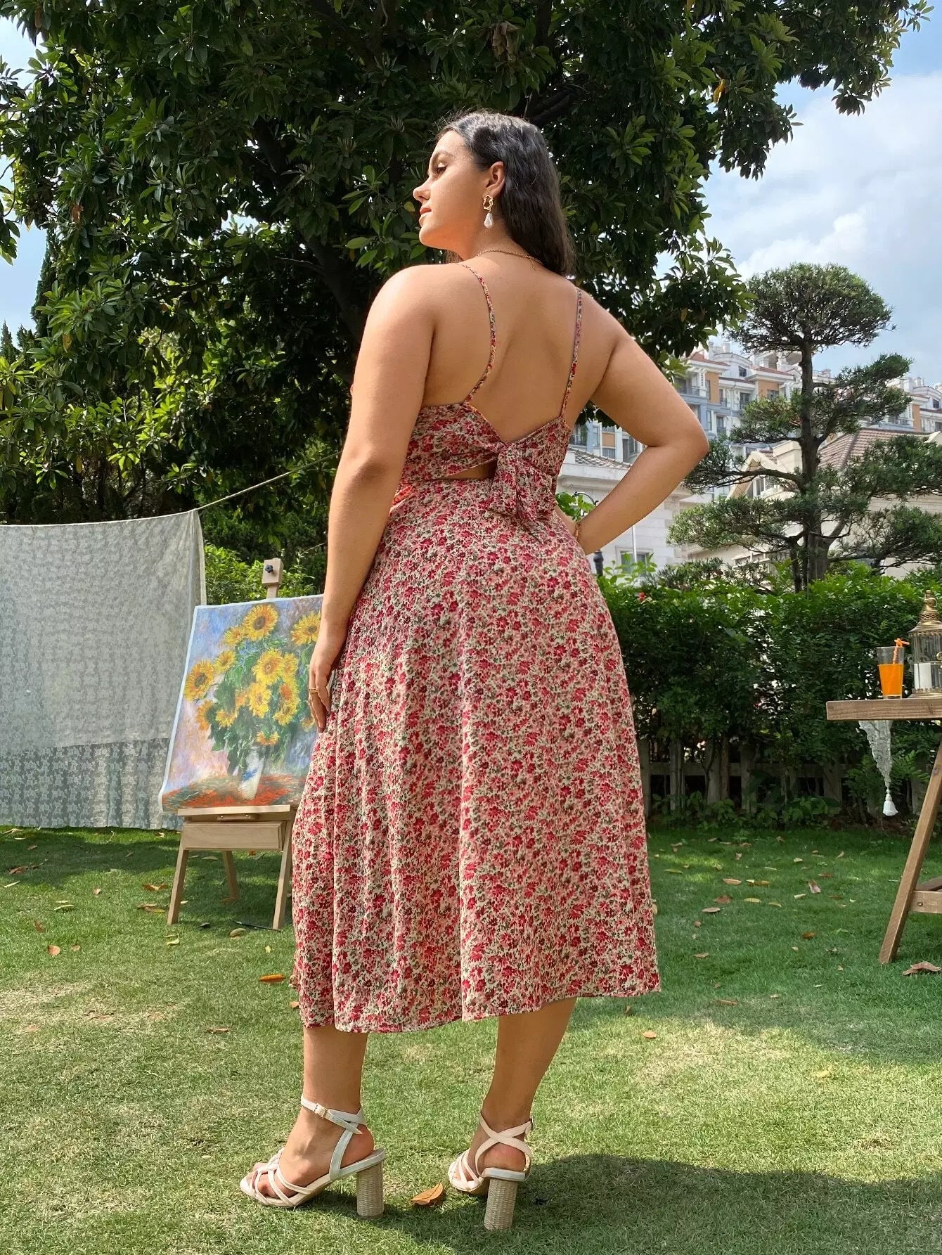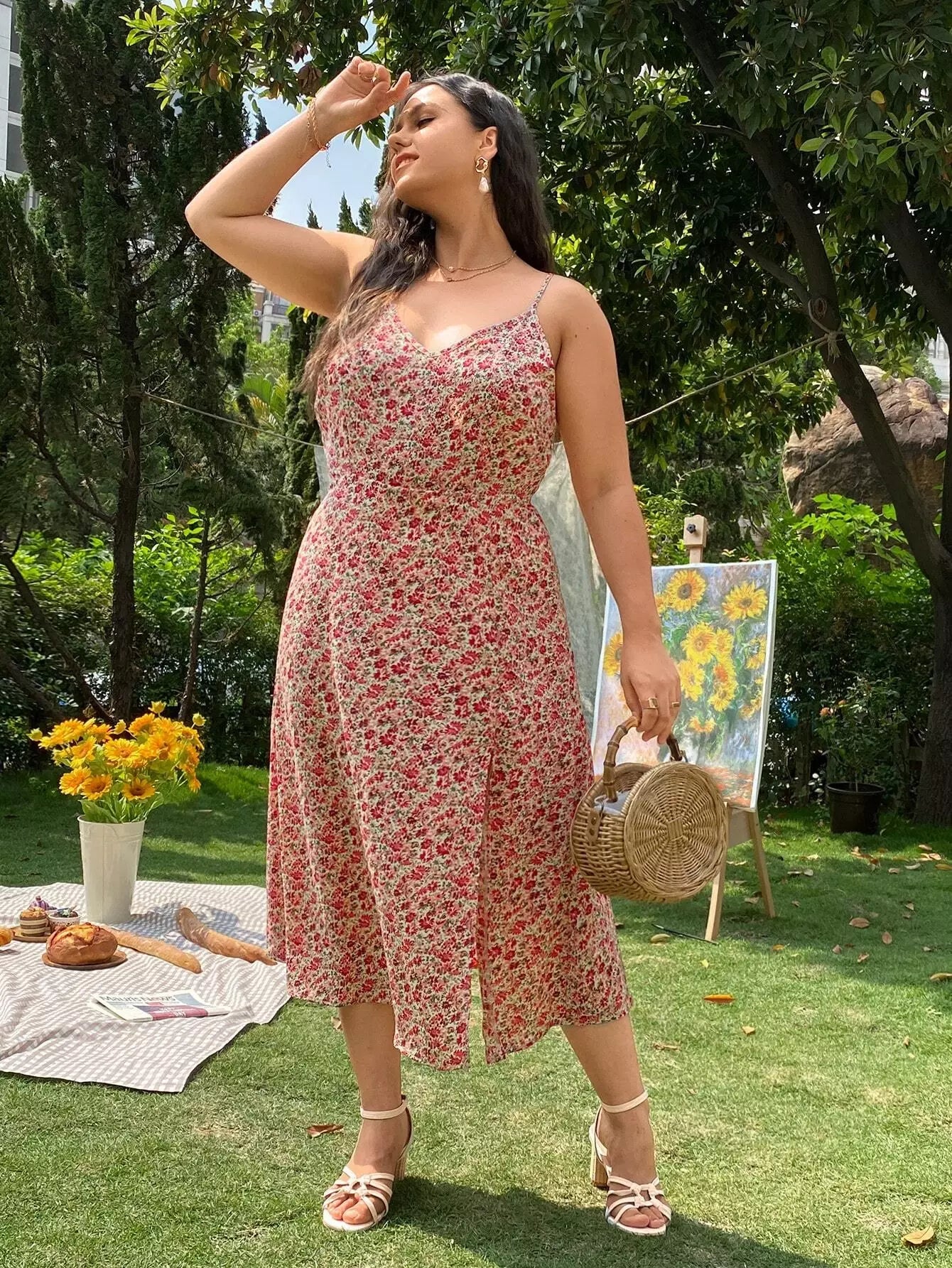 Plus Ditsy Floral Tie Back Split Cami Dress