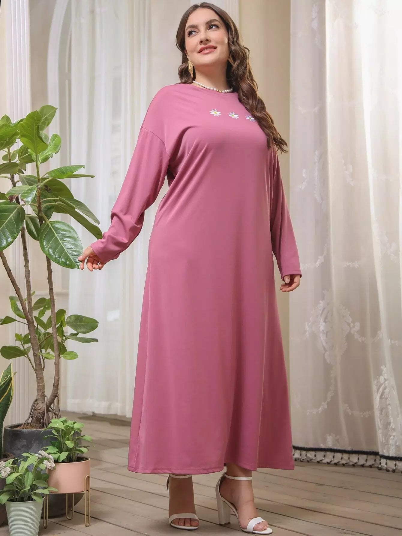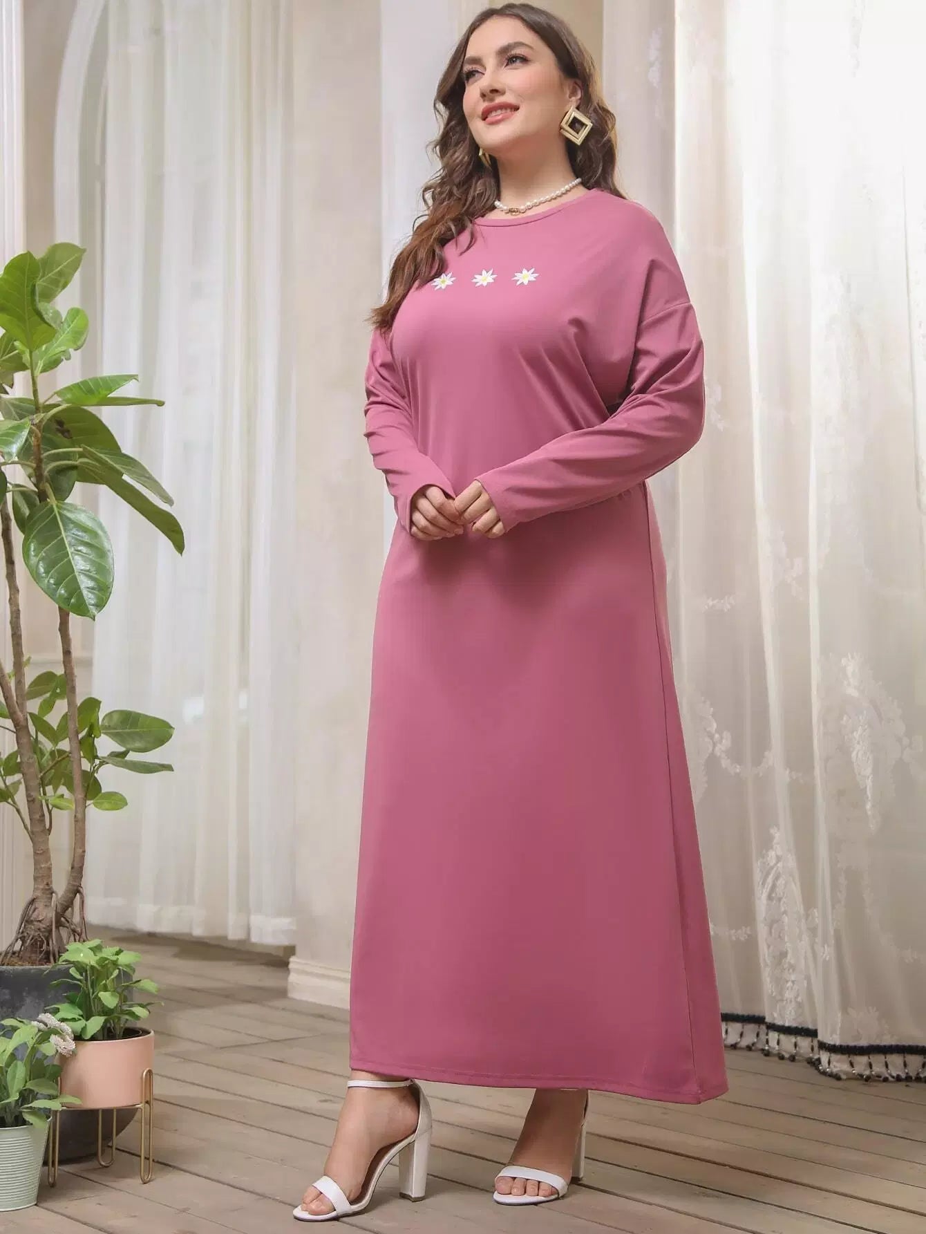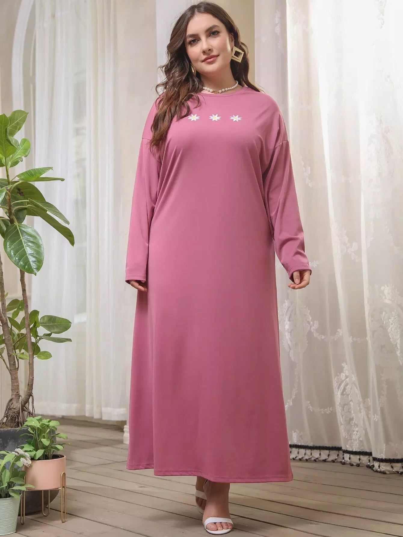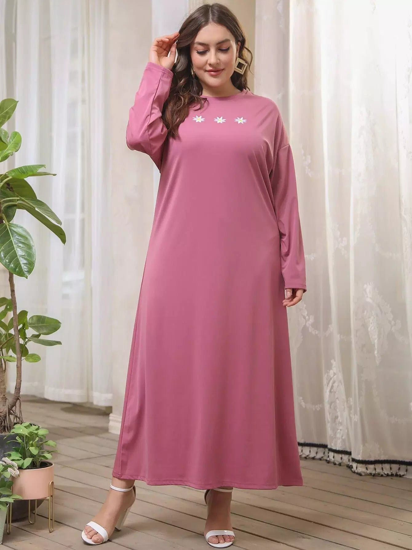 Plus Drop Shoulder Floral Embroidery Tee Dress