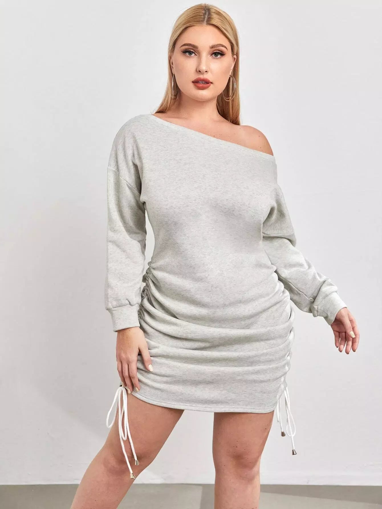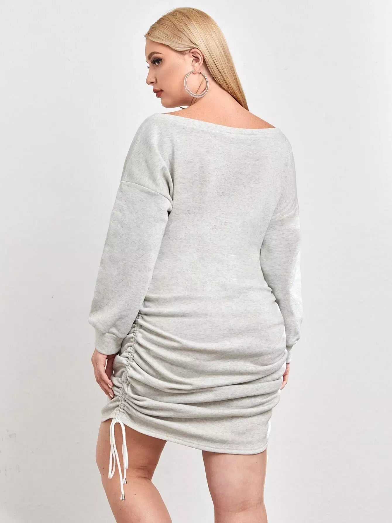 Plus Drop Shoulder Ruched Knot Bodycon Dress