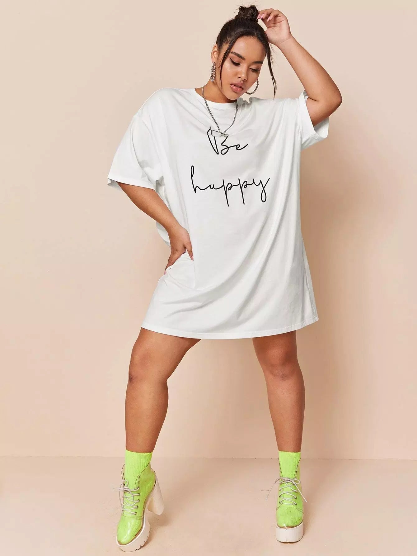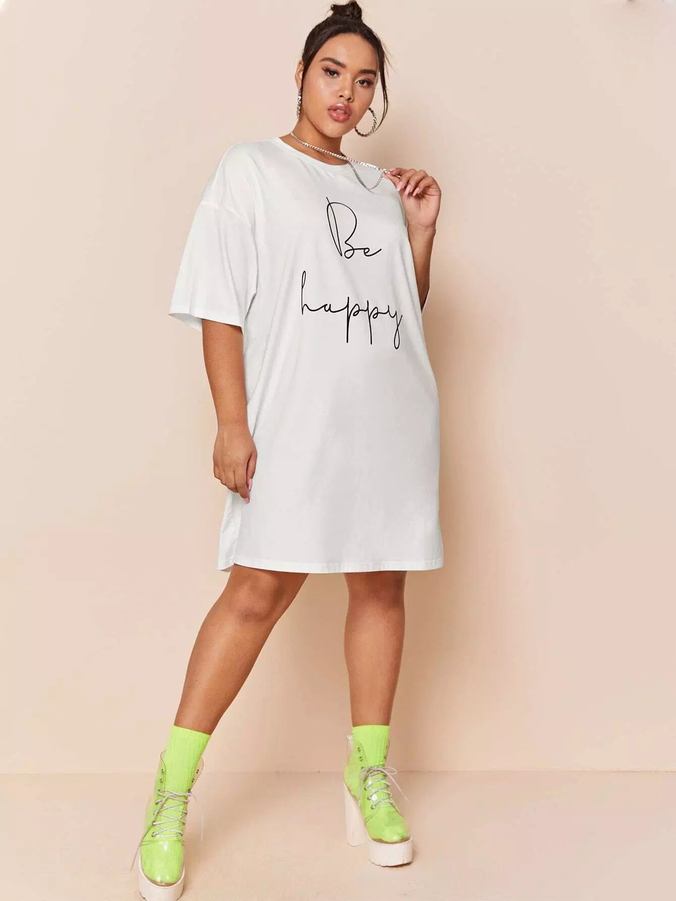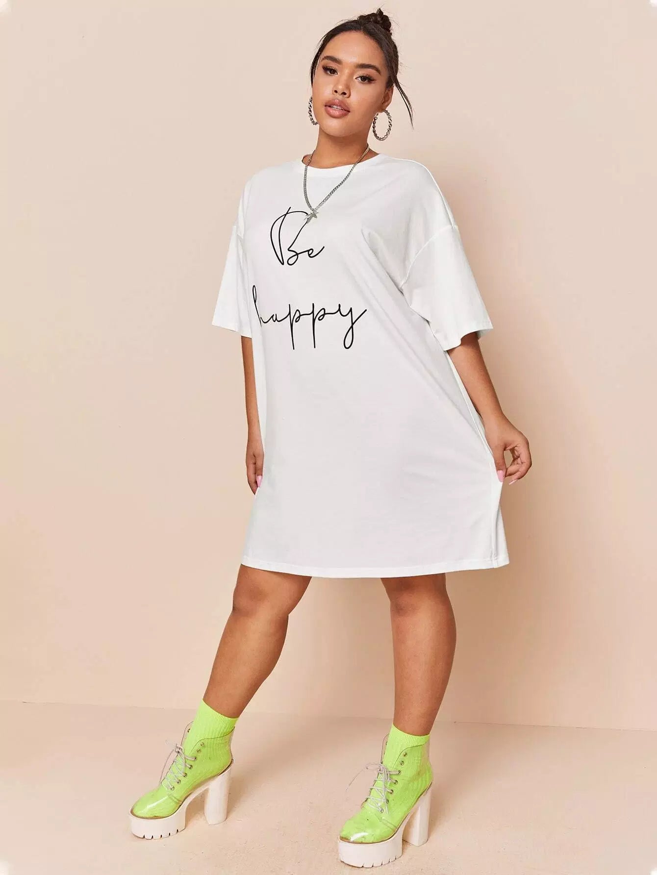 Plus Drop Shoulder Slogan Graphic Tee Dress