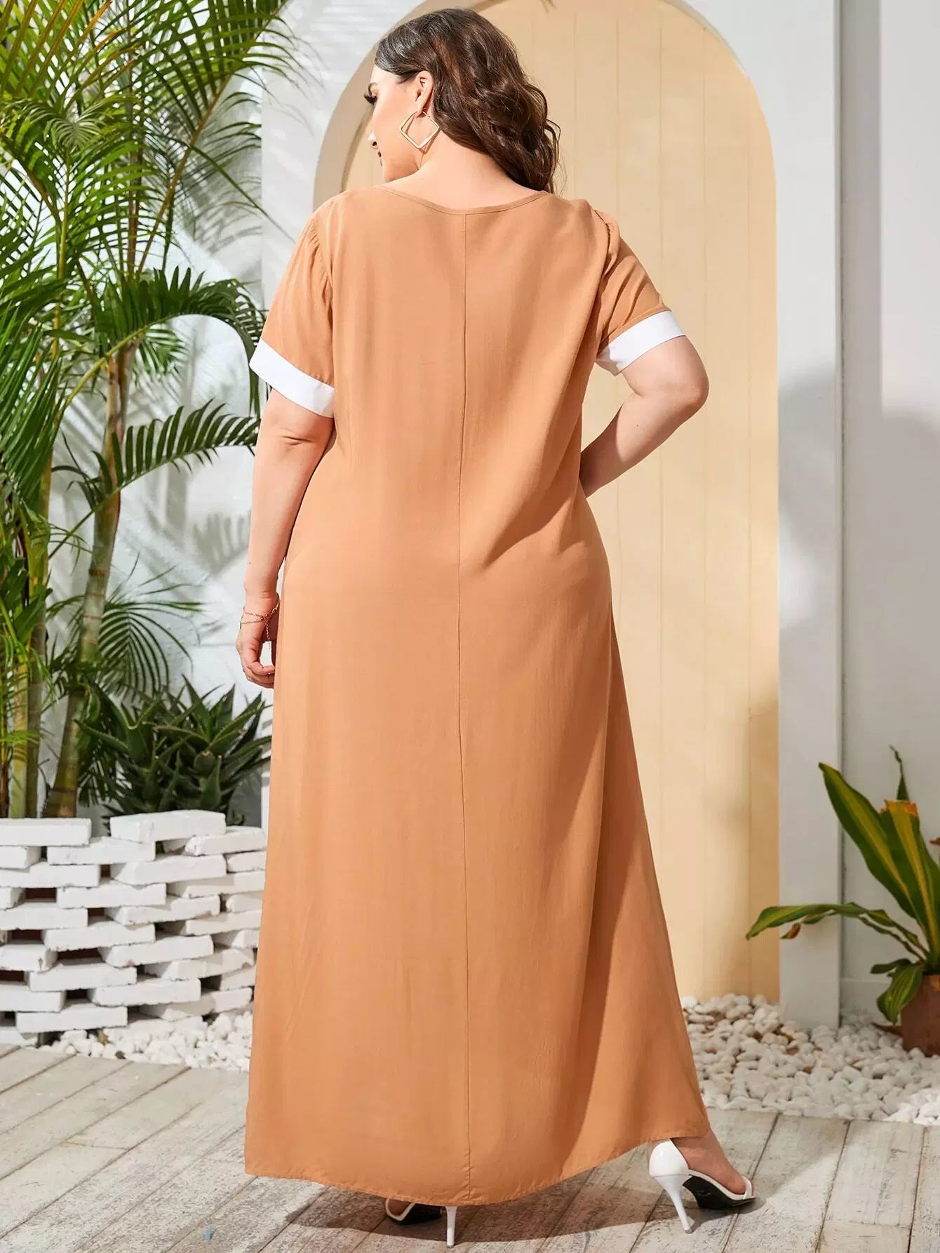 Plus Embroidered Detail Tie Neck Tunic Dress