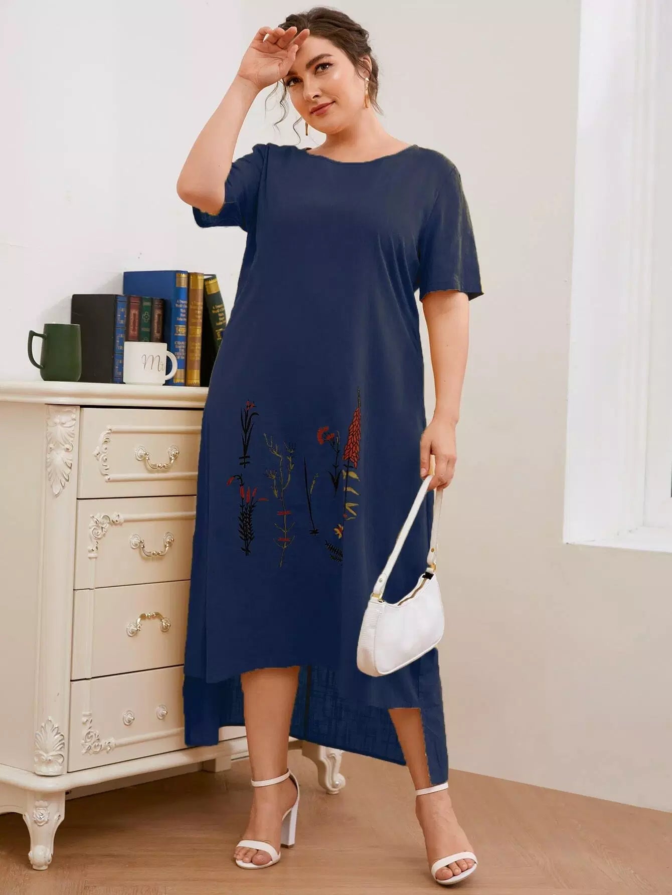 Plus Floral Print High Low Dress