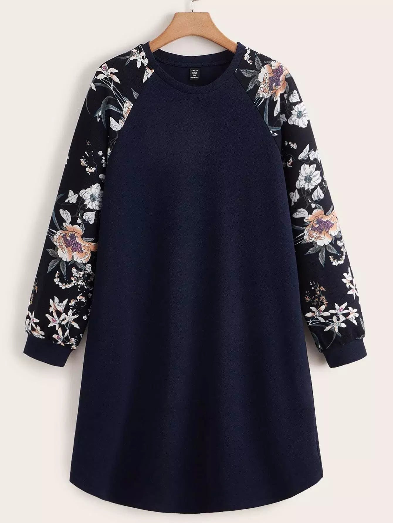 Plus Floral Print Raglan Sleeve Dress