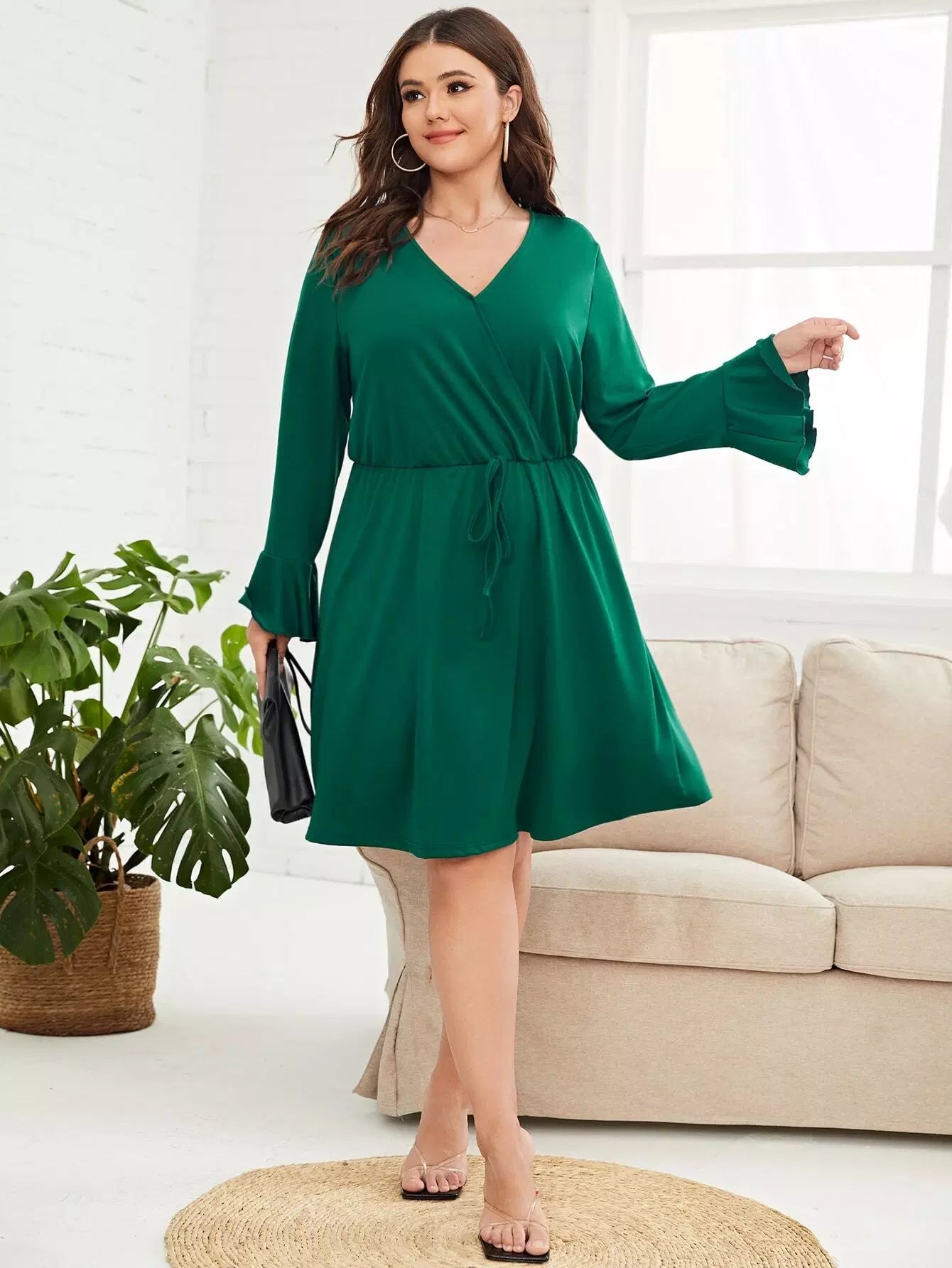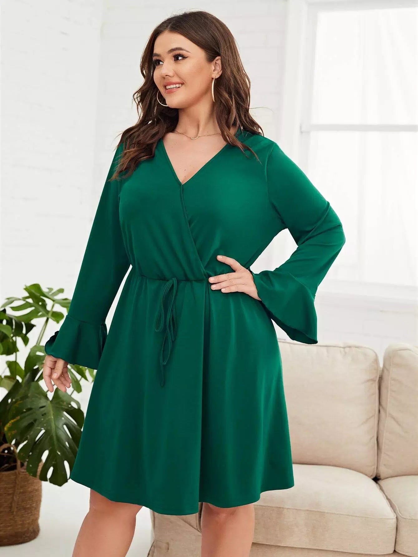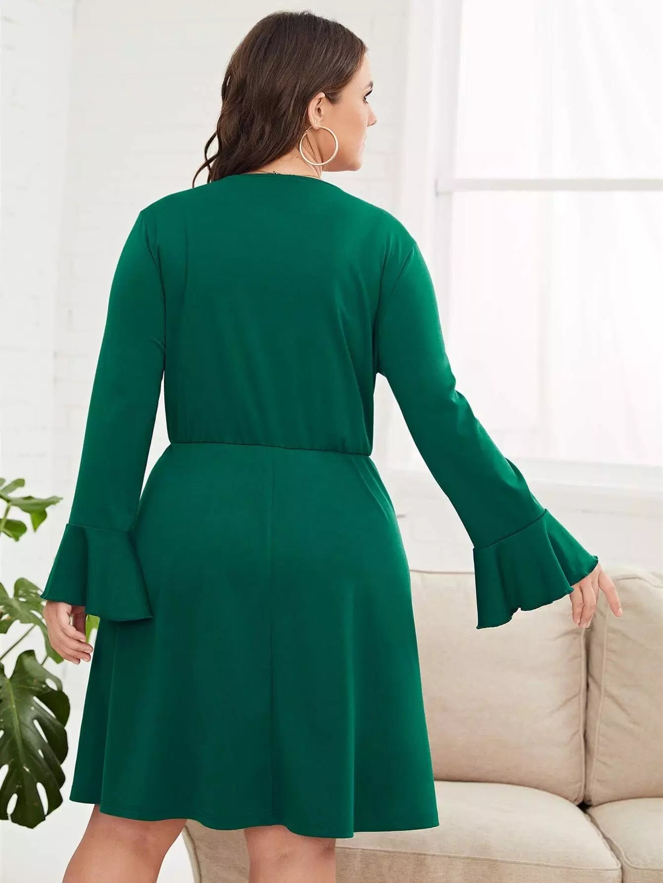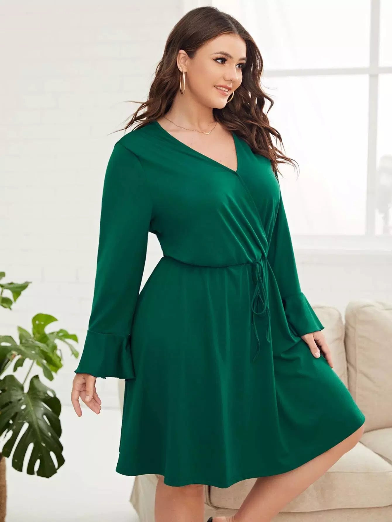 Plus Flounce Sleeve Knot Front Dress