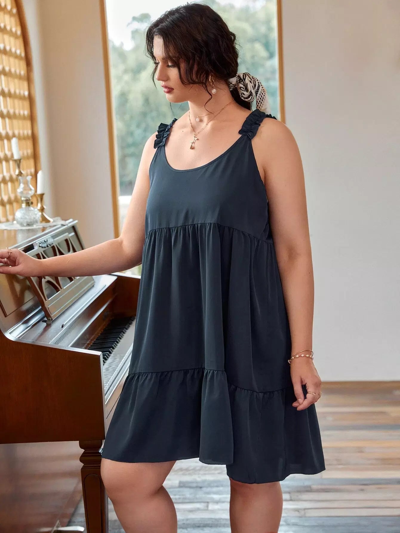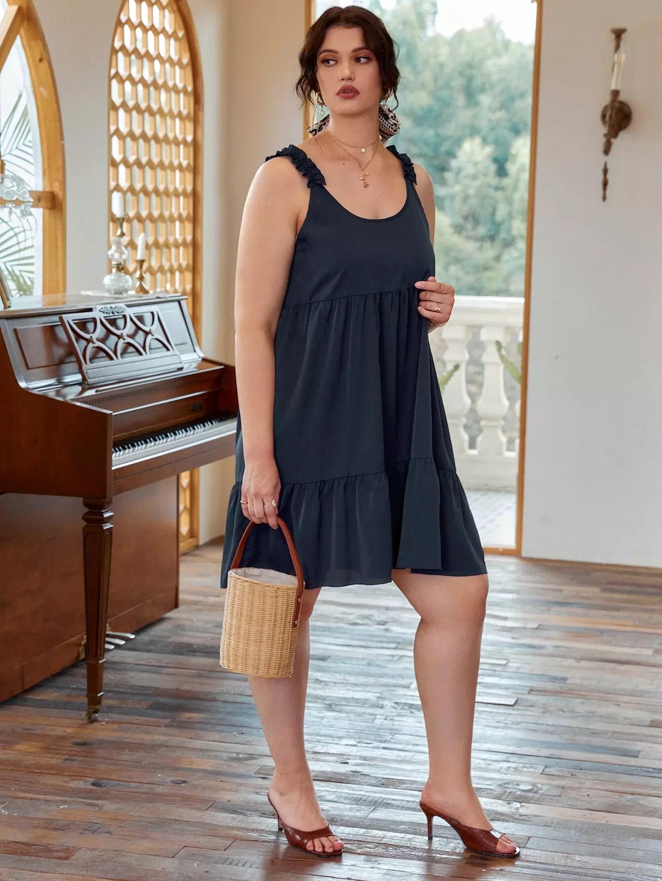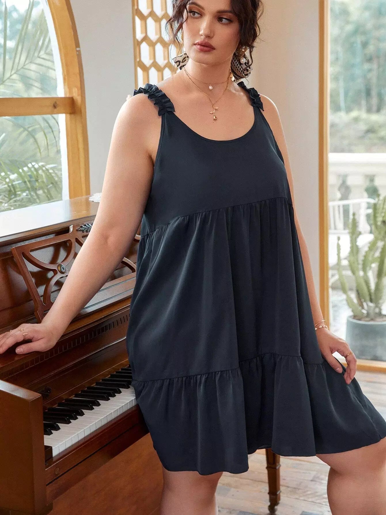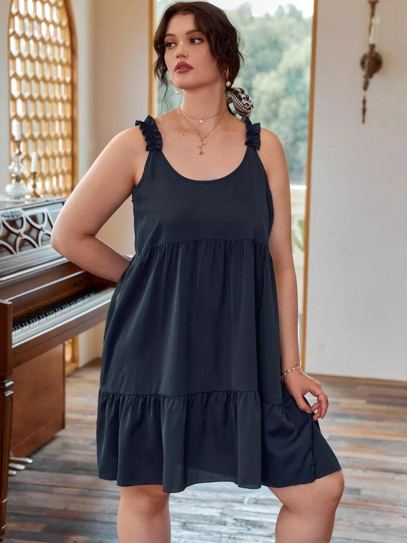 Plus Frill Trim Smock Dress