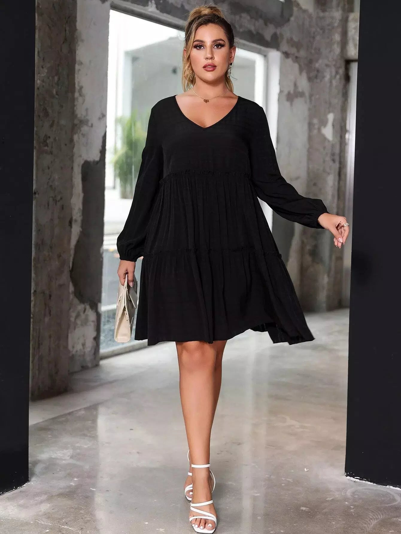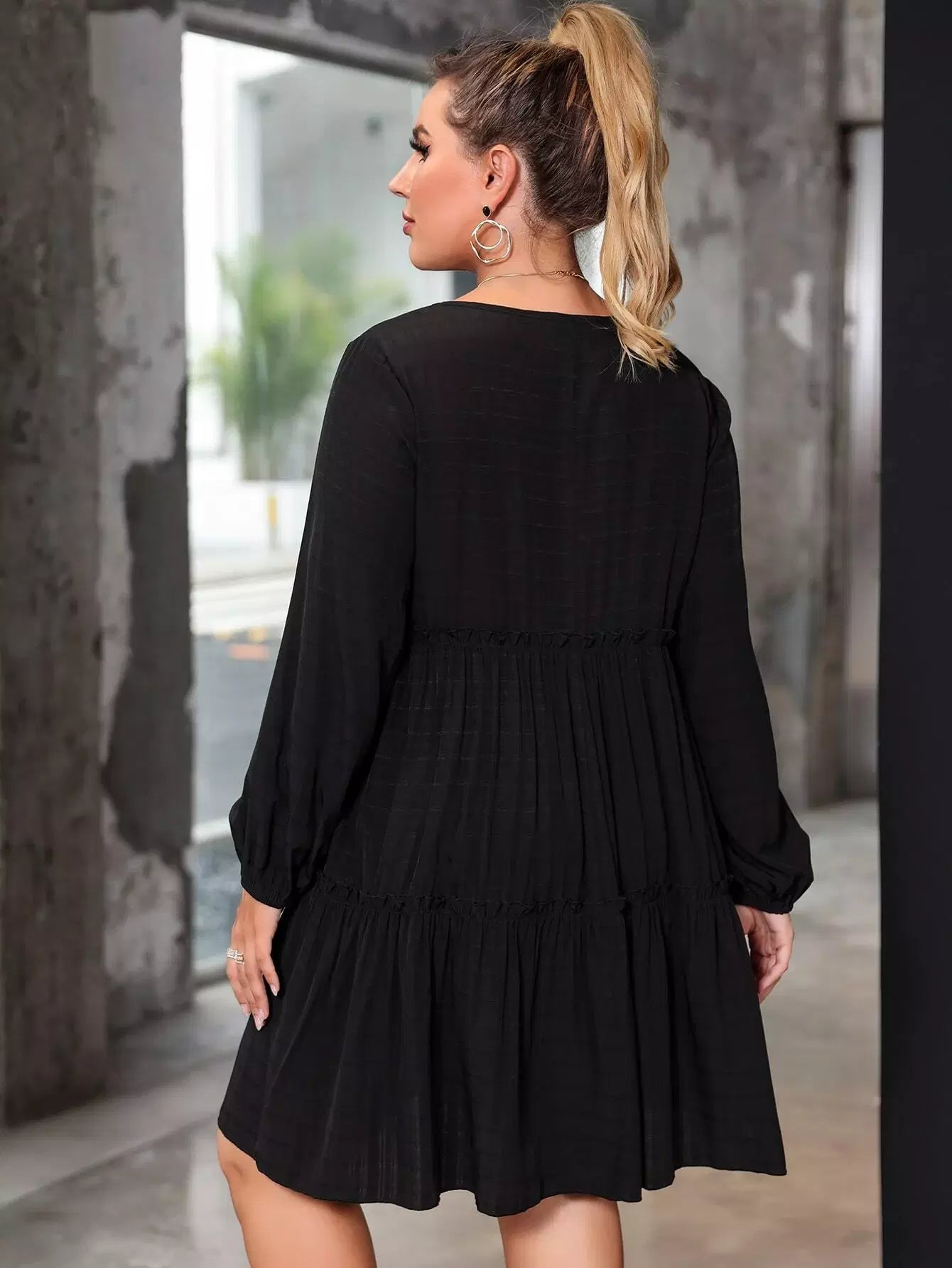 Women - Plus Frilled Ruffle Hem Bishop Sleeve Smock Dress