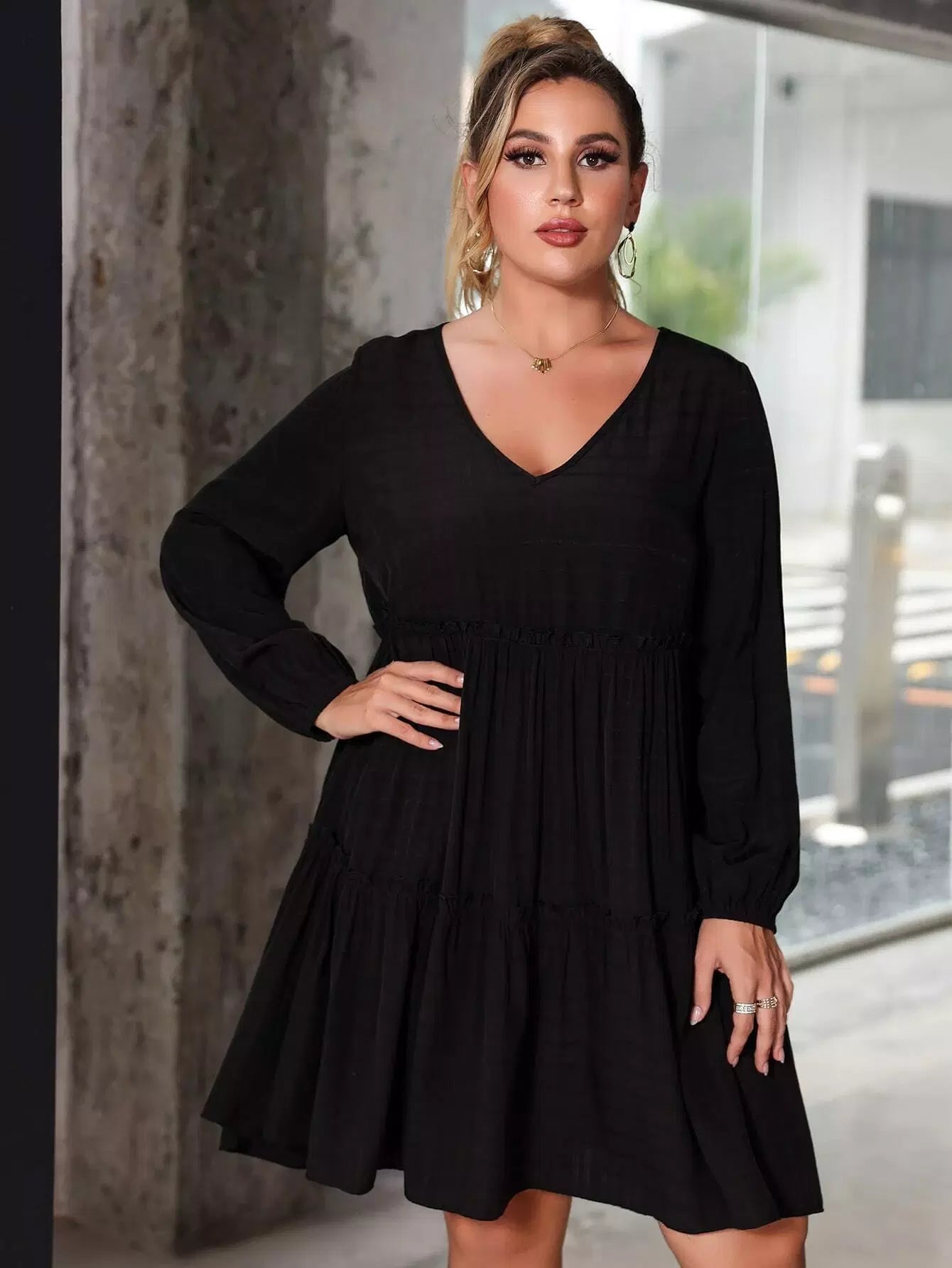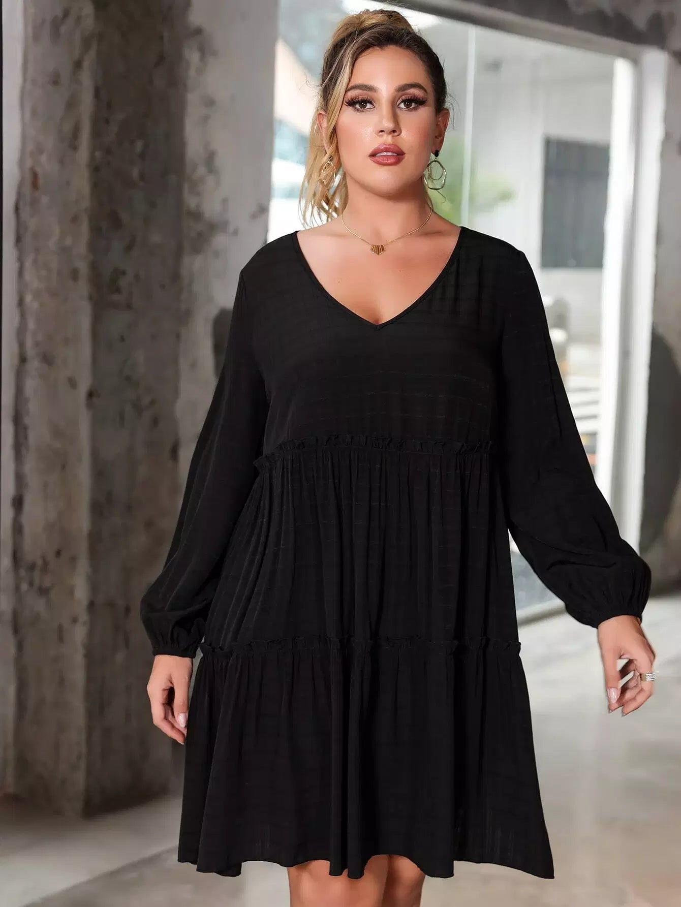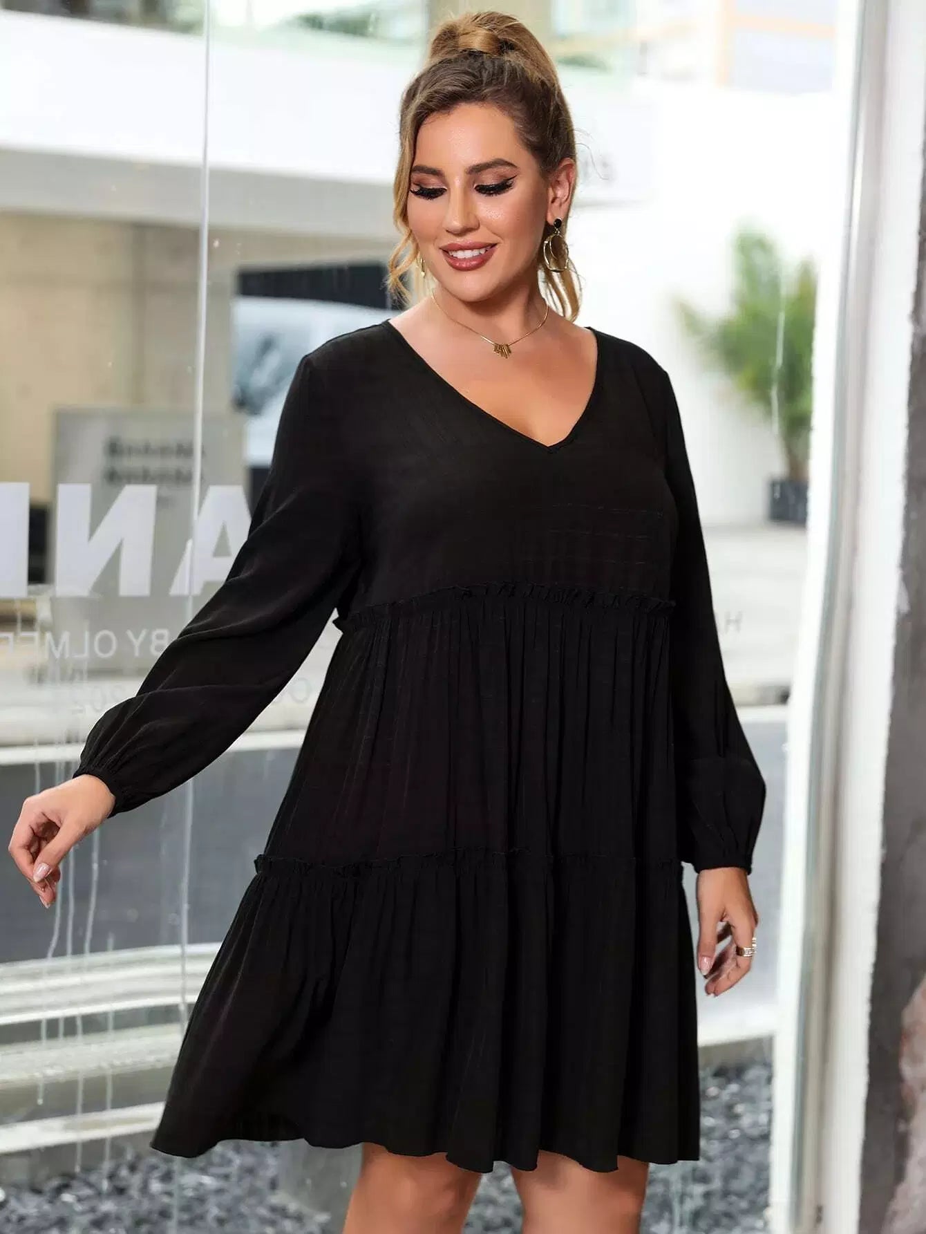 Plus Frilled Ruffle Hem Bishop Sleeve Smock Dress