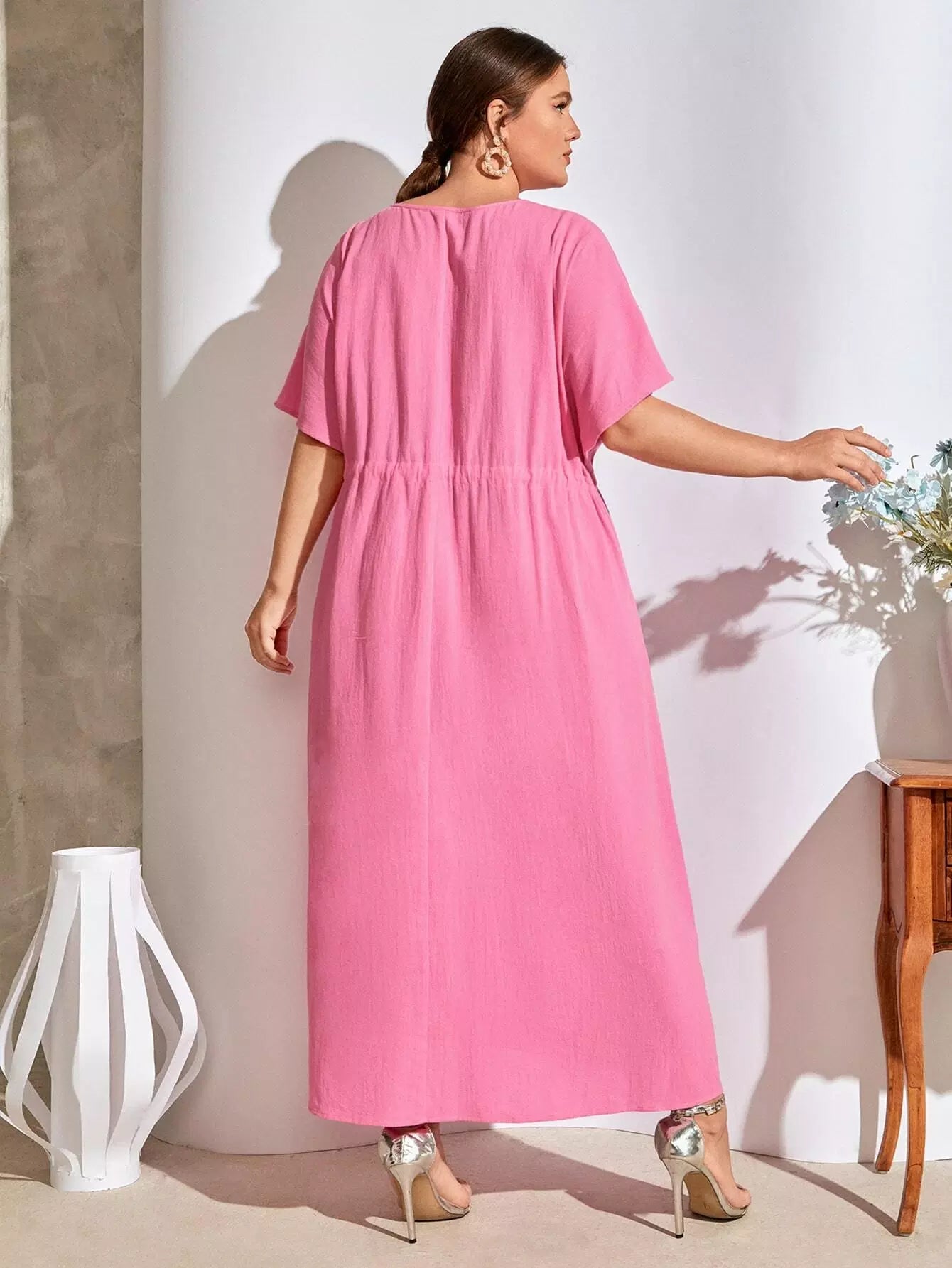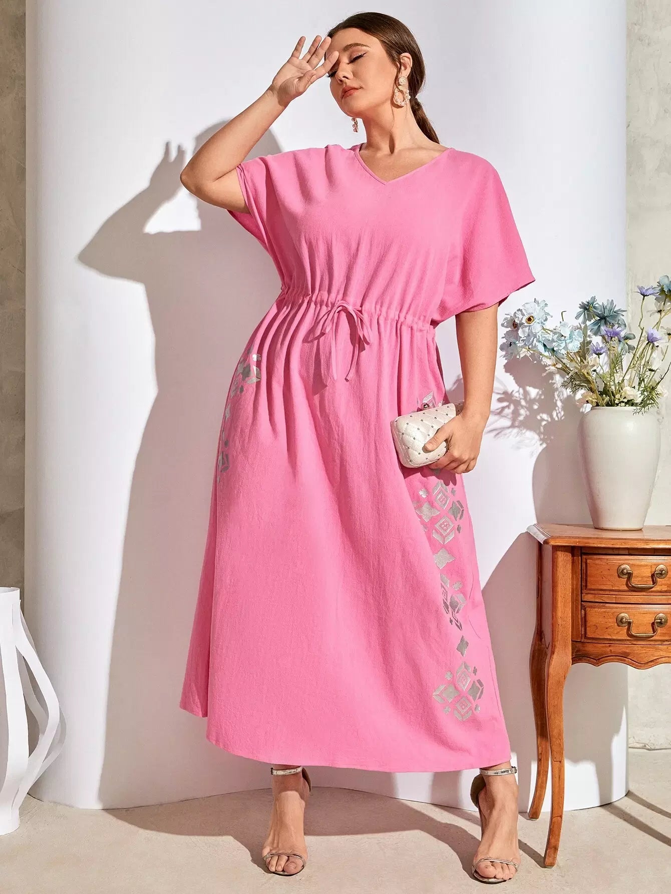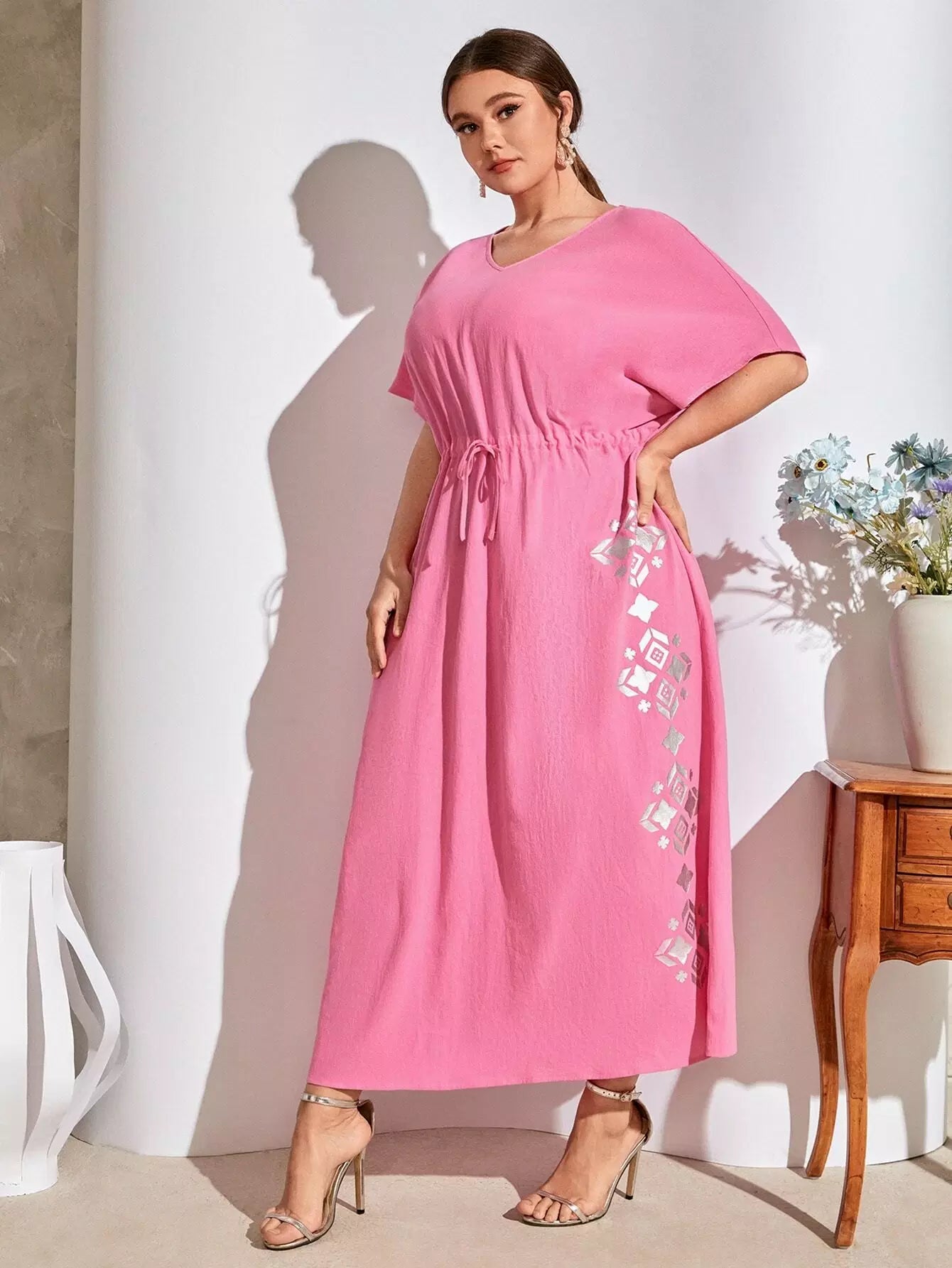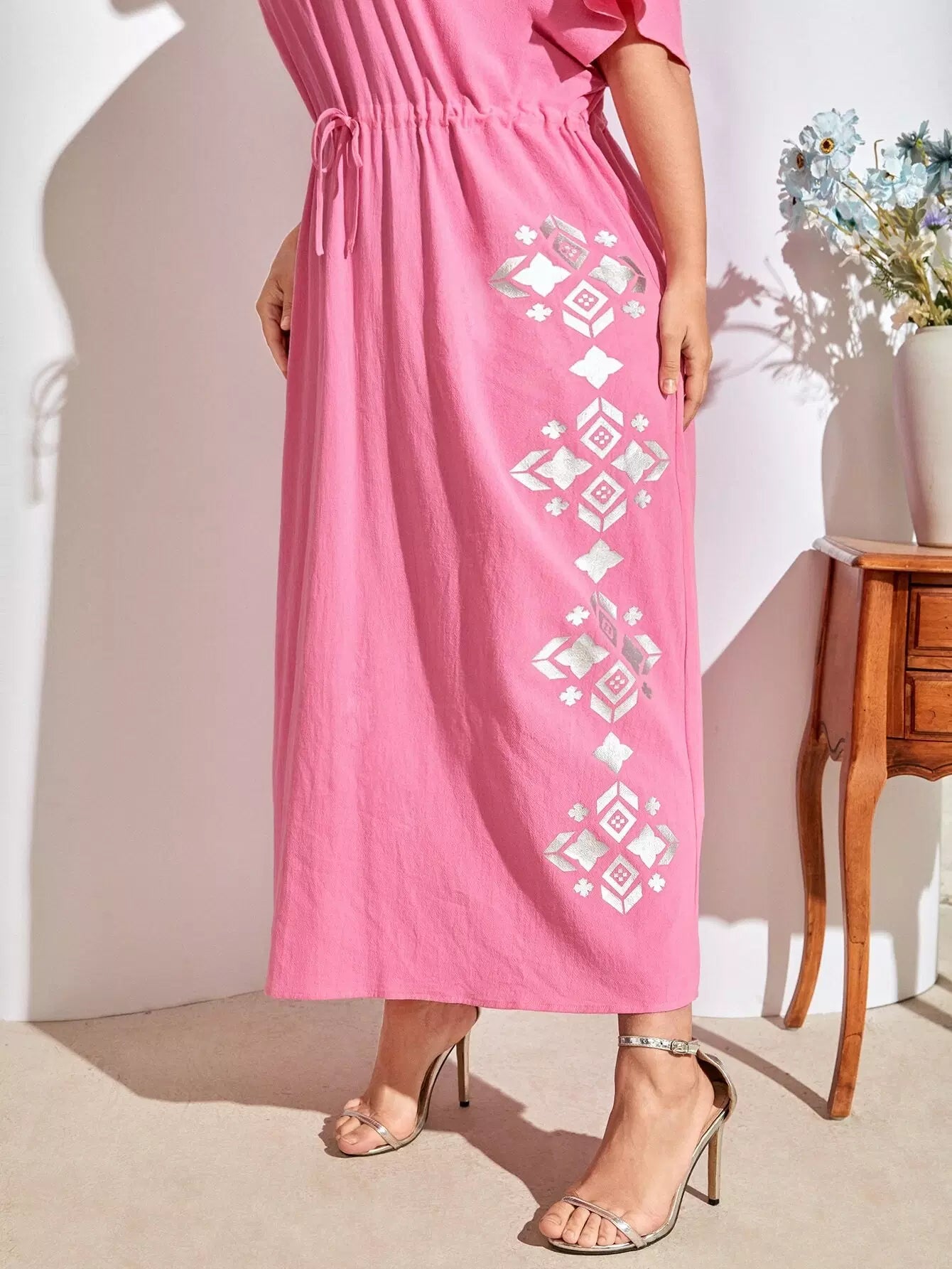 Plus Geo Print Batwing Sleeve Drawstring Waist Maxi Dress