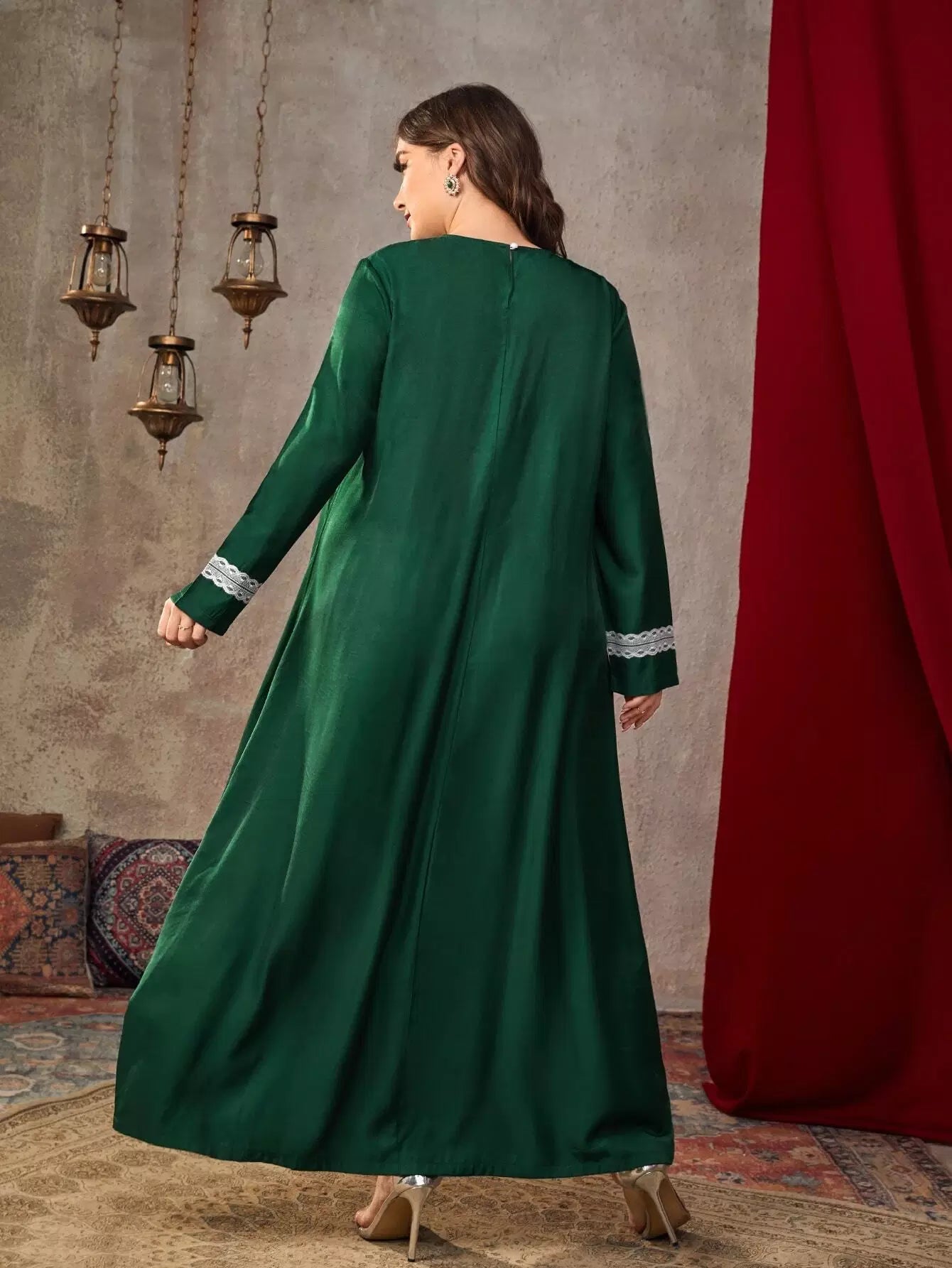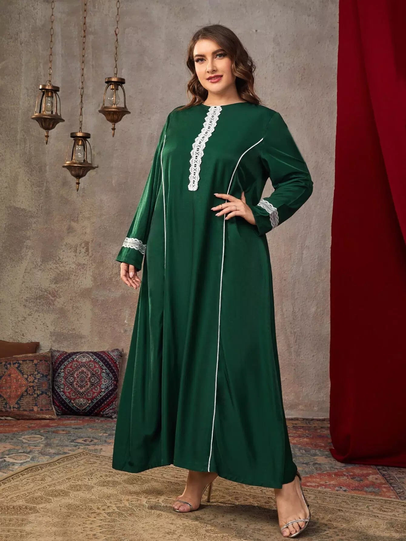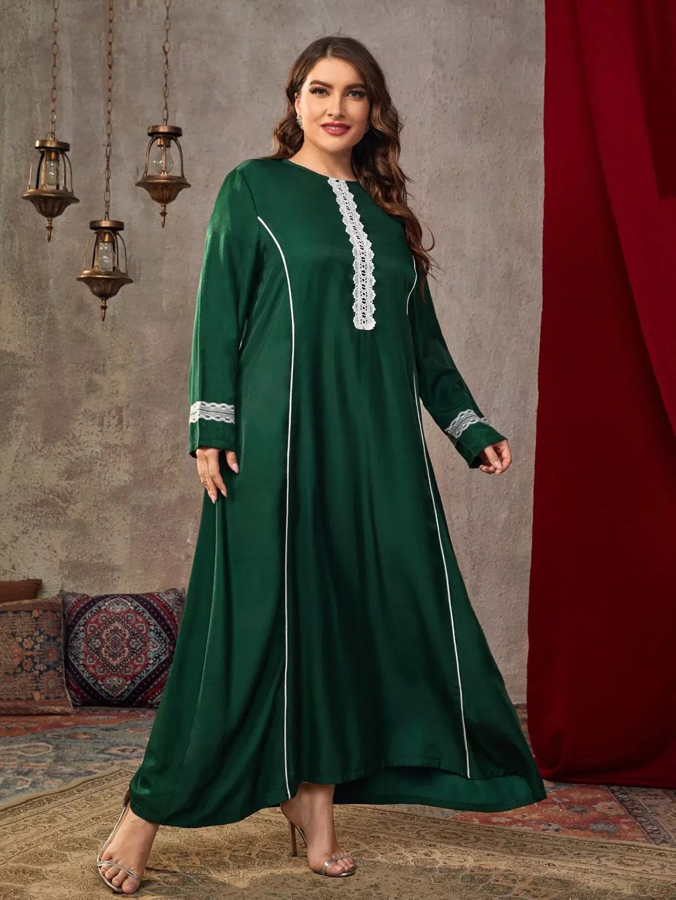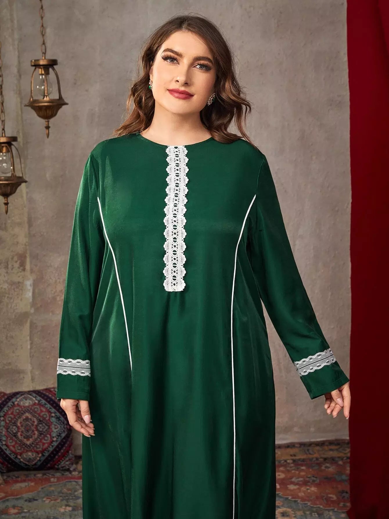 Plus Guipure Lace Scallop Trim Contrast Piping Maxi Dress