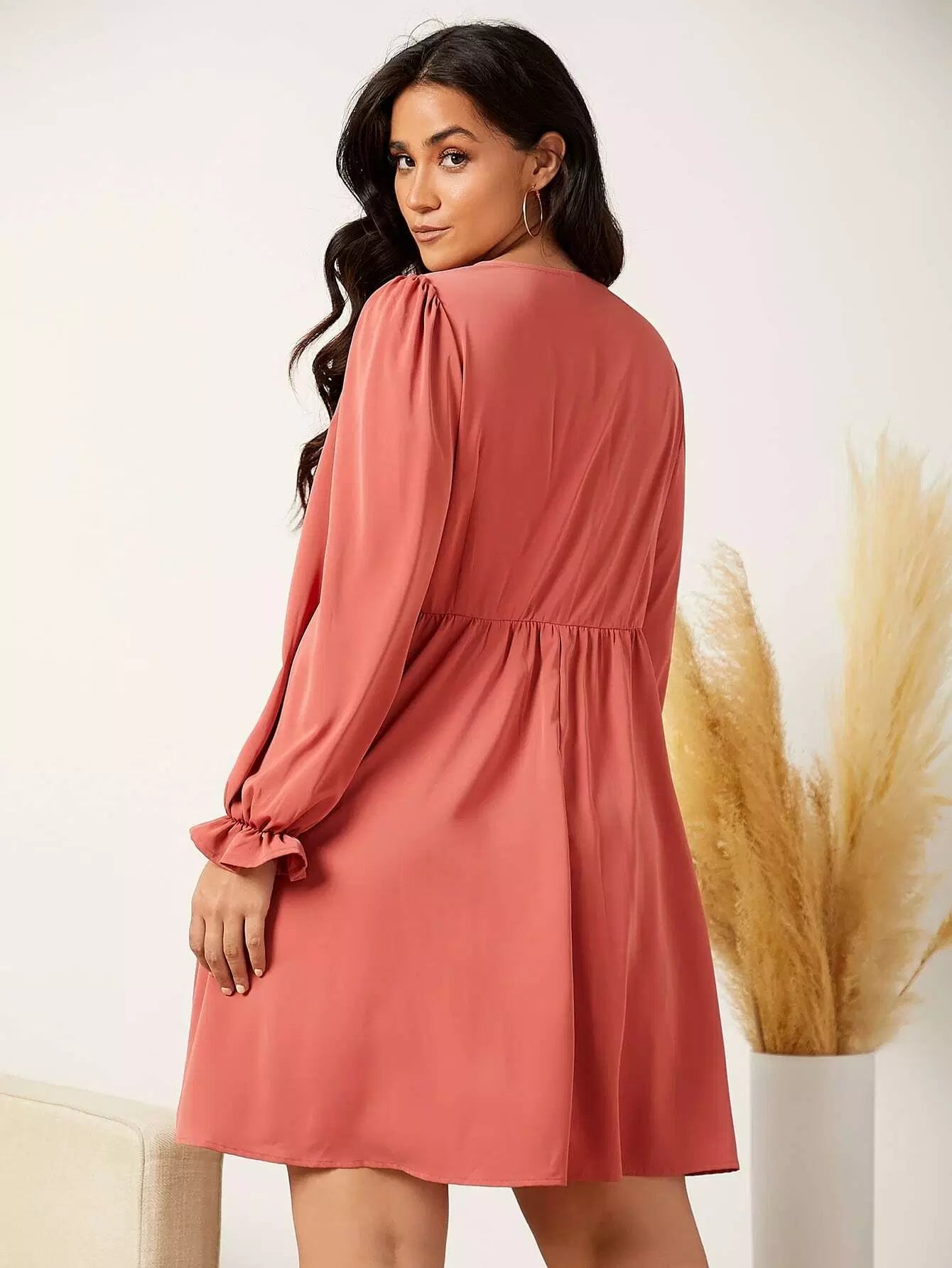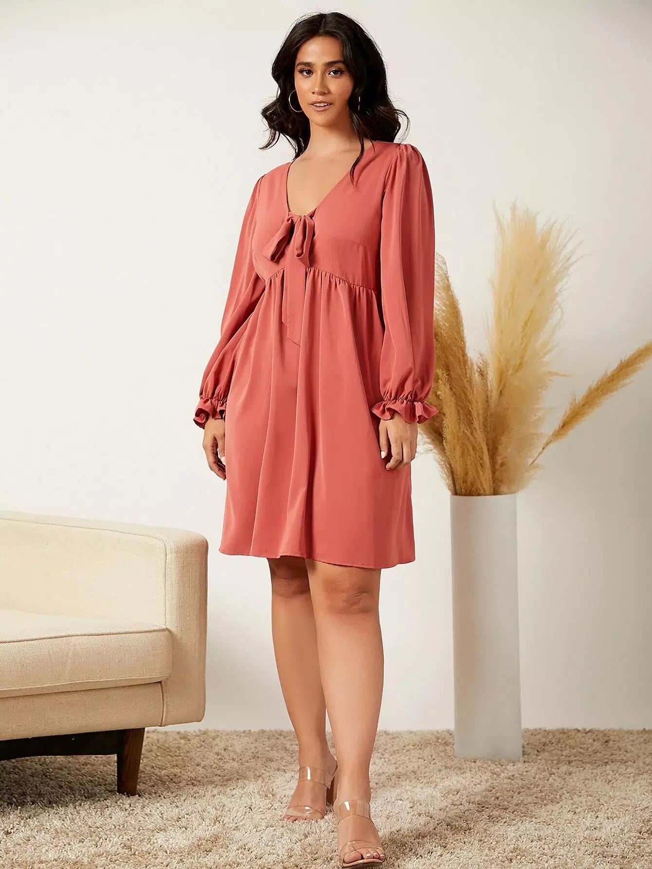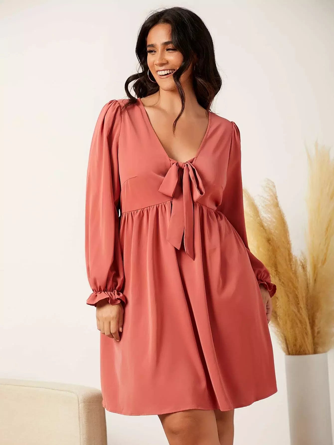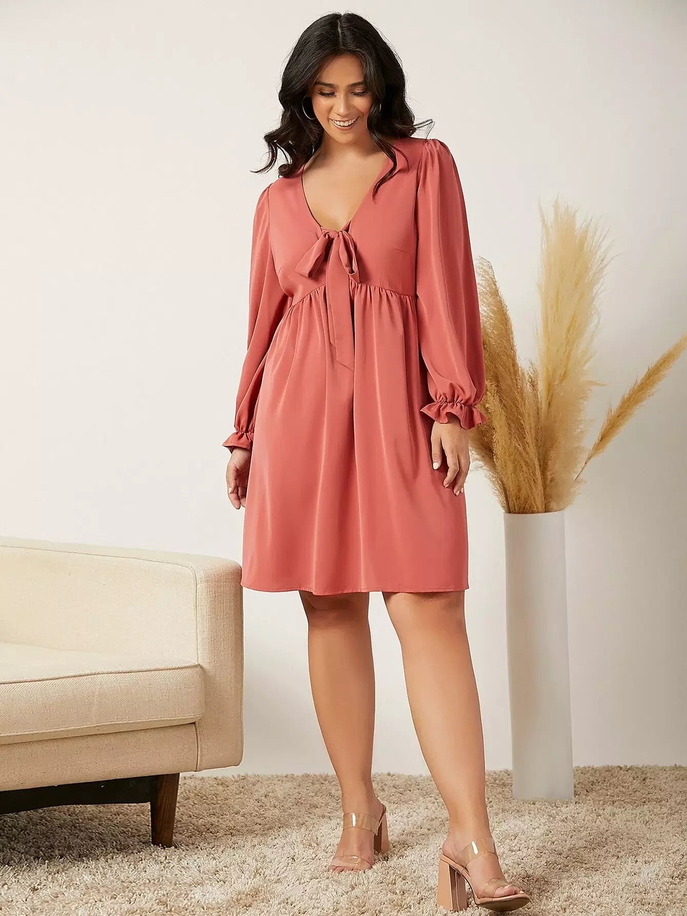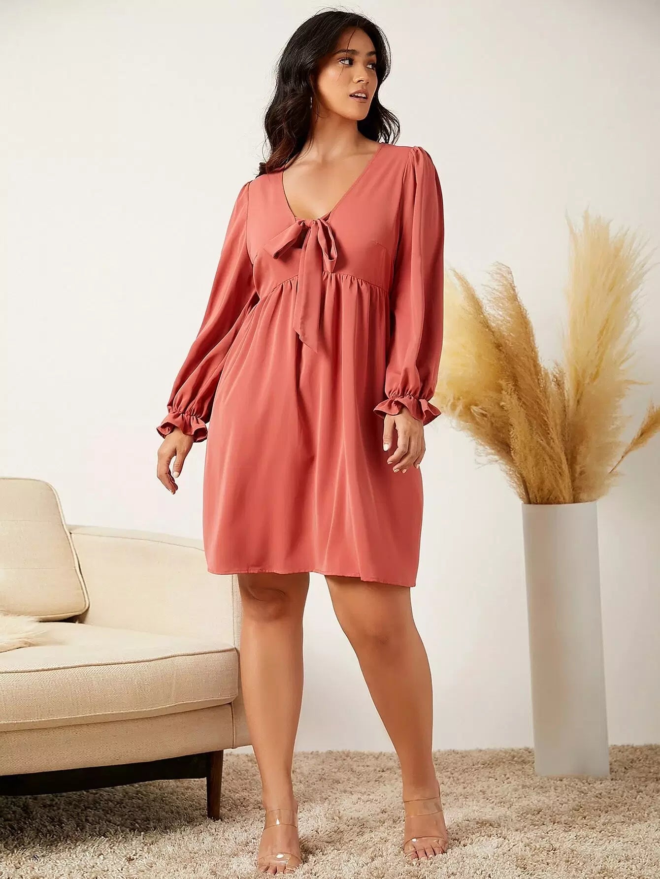 Plus Knot Front Flounce Sleeve Dress