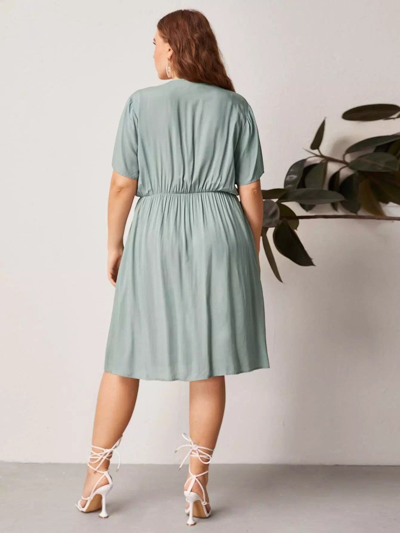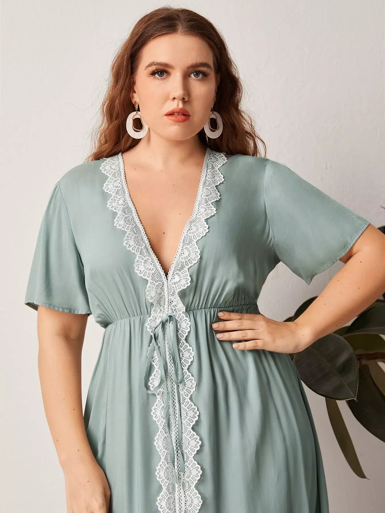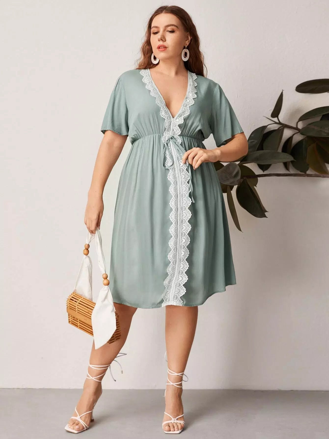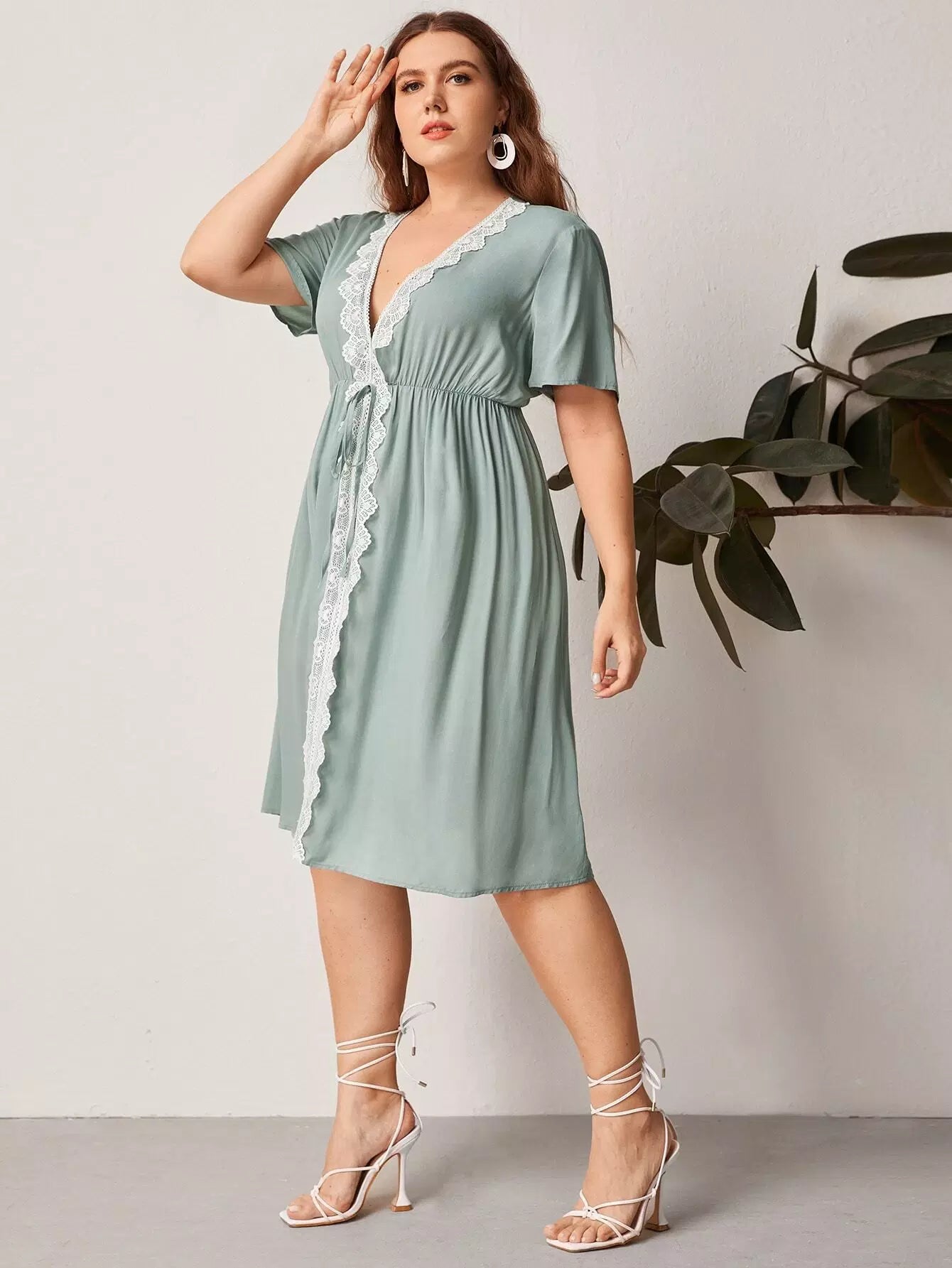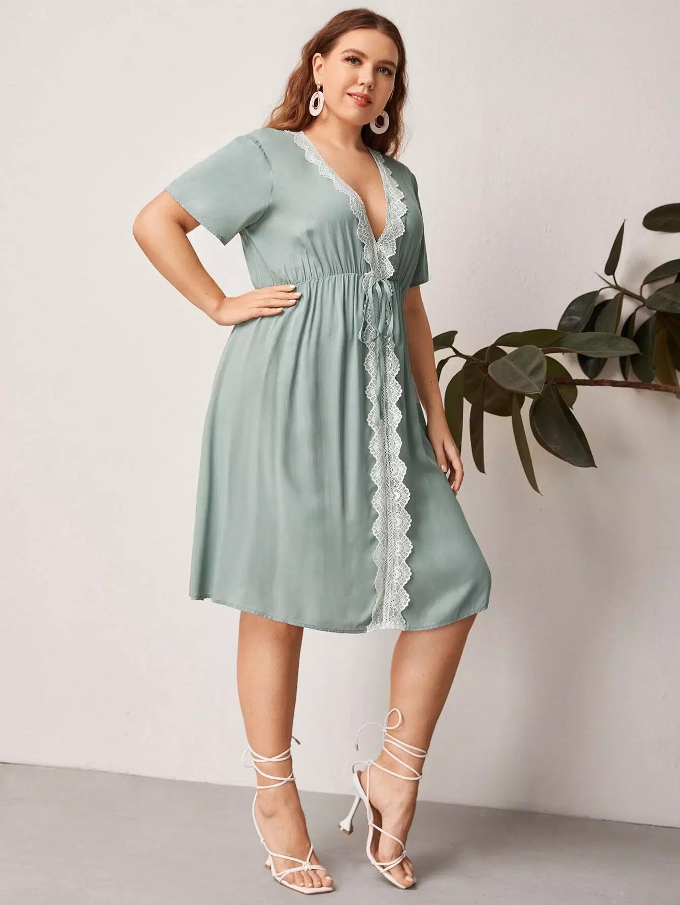 Plus Lace Panel Plunging Neck Dress