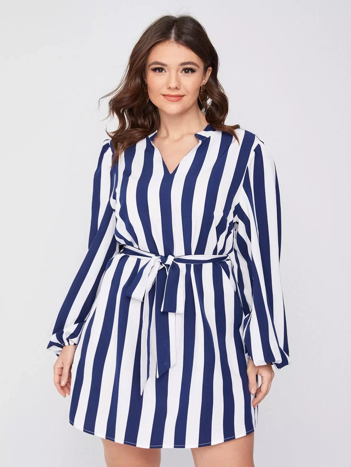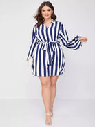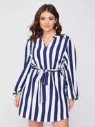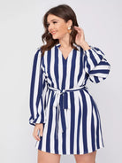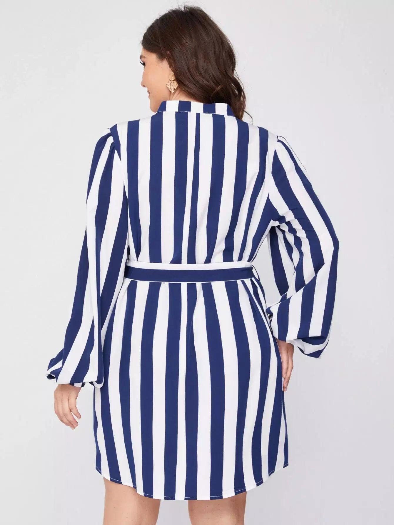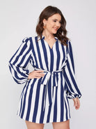 Women - Plus Lantern Sleeve Belted Striped Dress