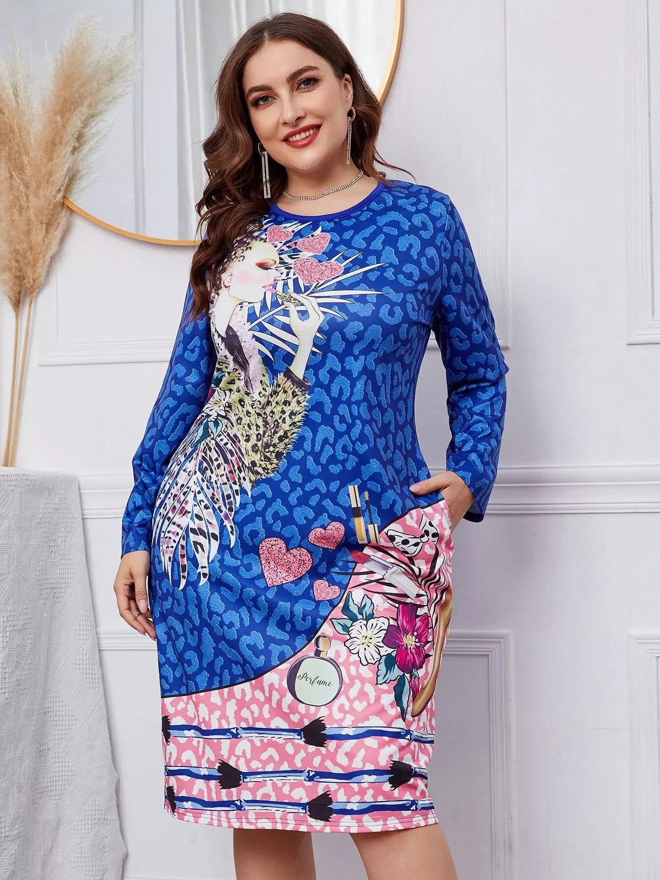 Plus Leopard & Figure Graphic Hidden Pocket Tee Dress