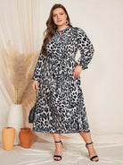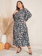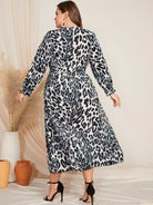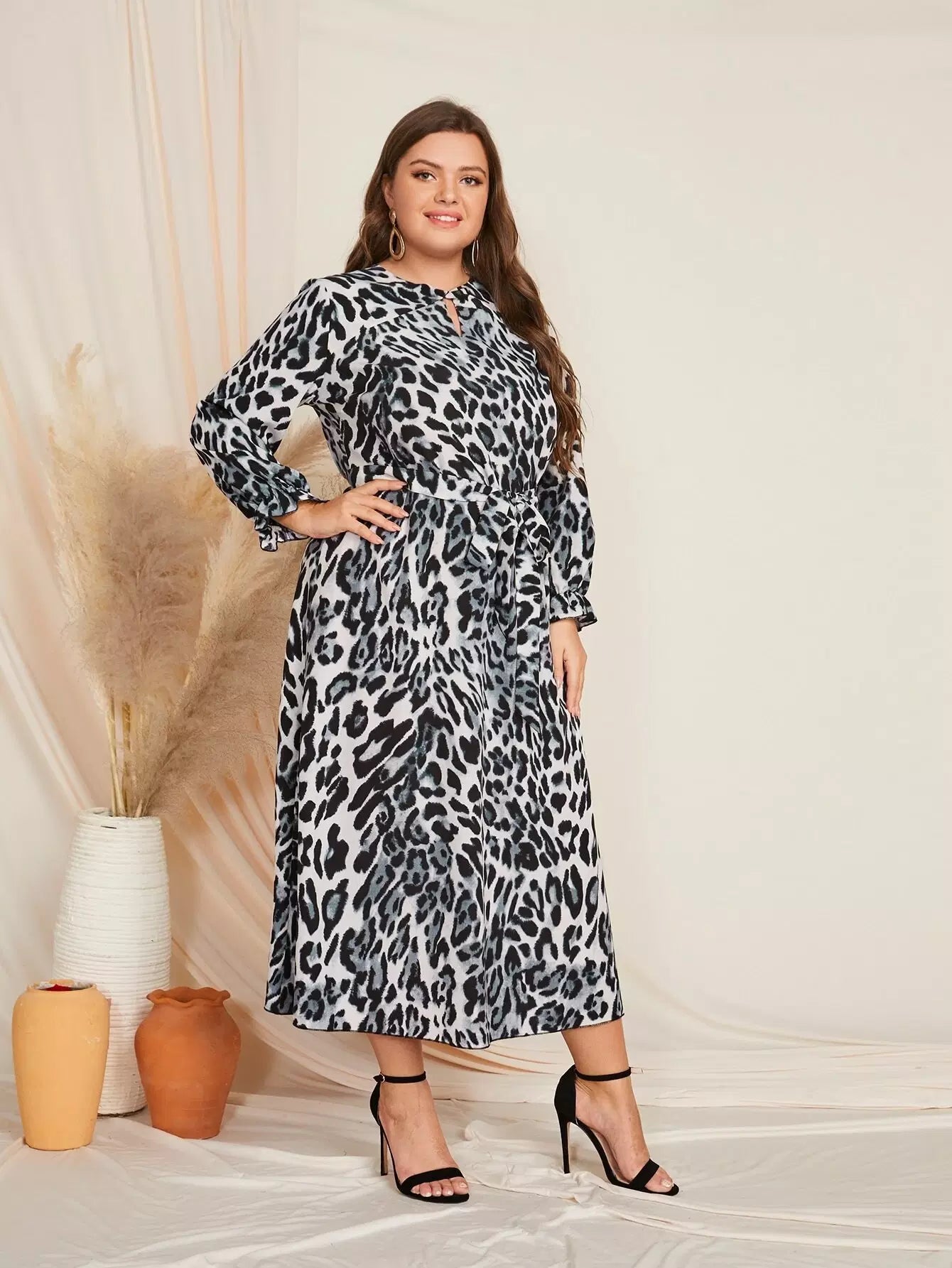Plus Leopard Print Flounce Sleeve Keyhole Neck Dress Without Belt