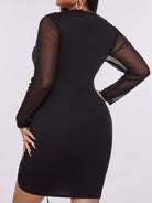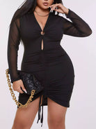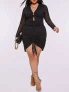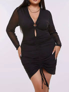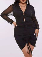 Plus Mesh Insert O-ring Cut Out Drawstring Front Bodycon Dress