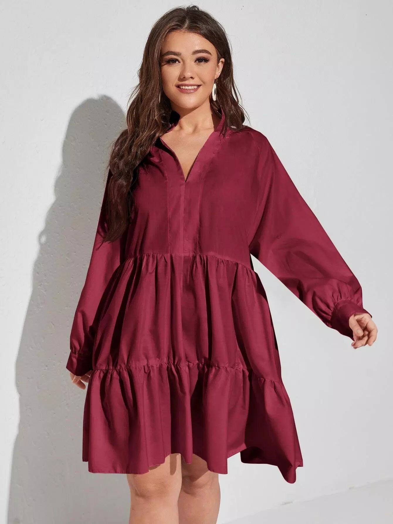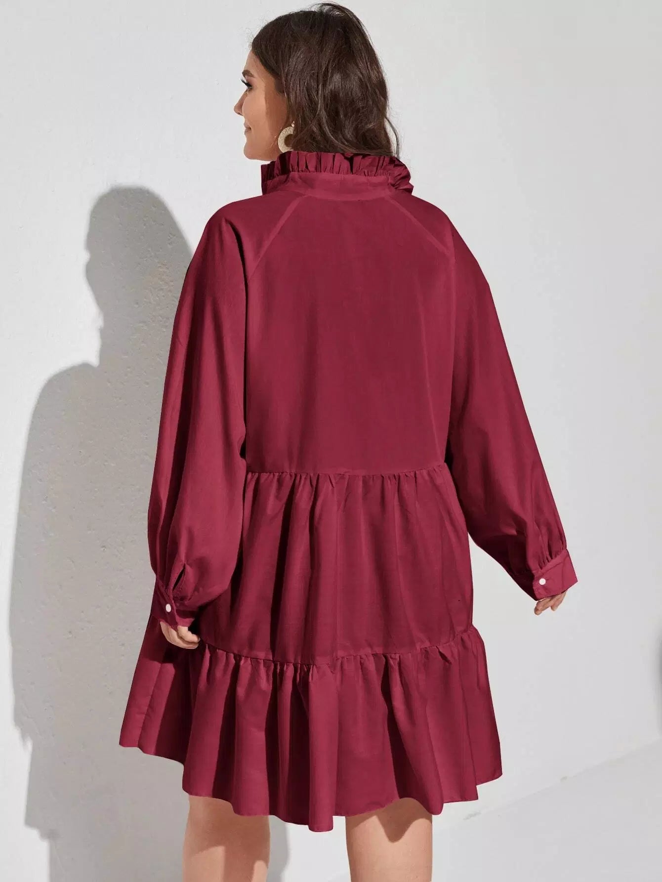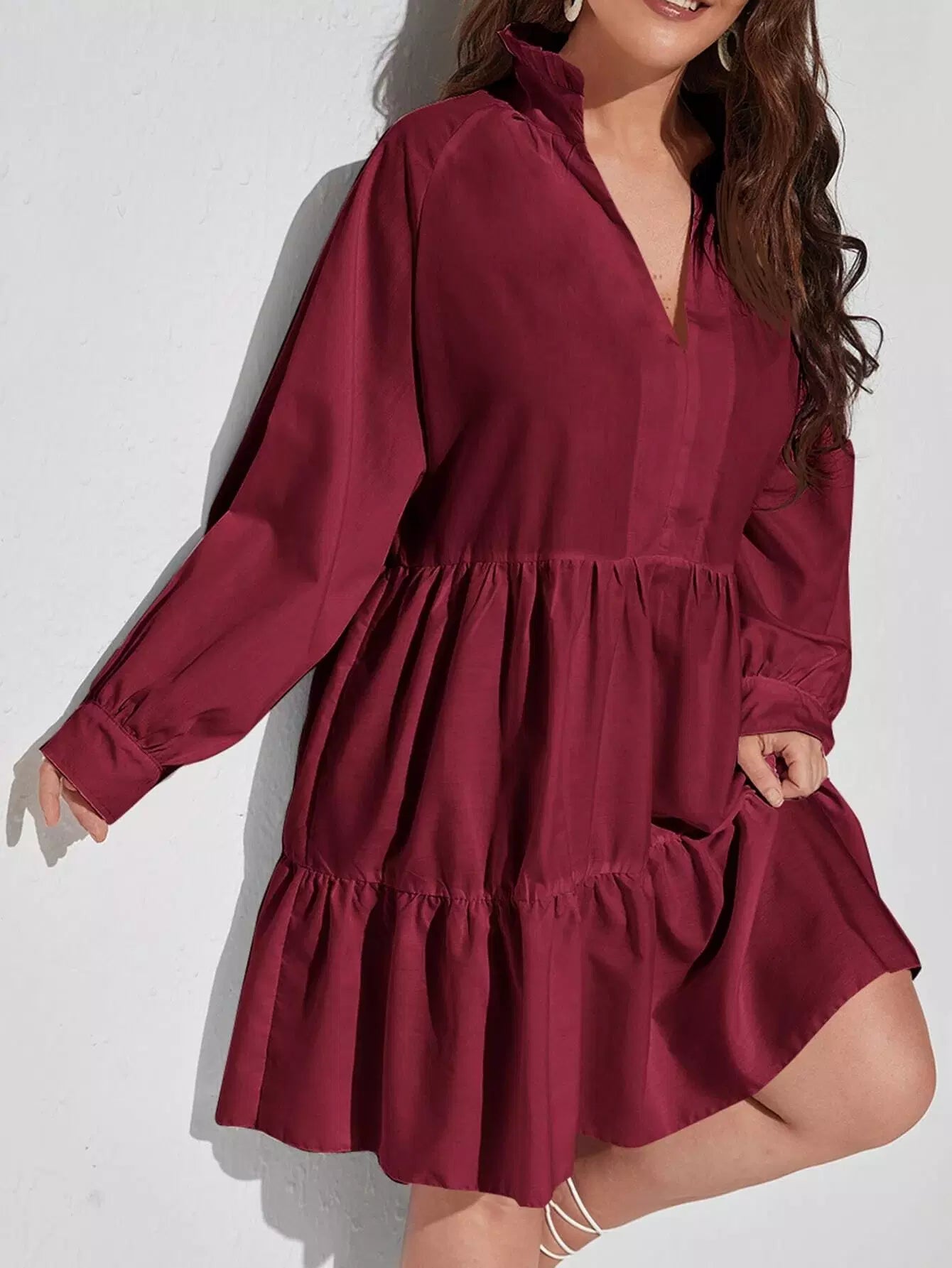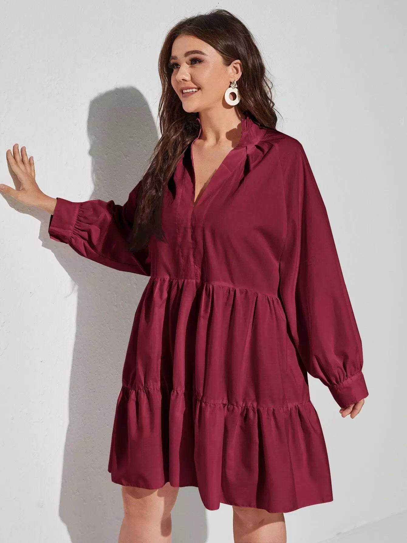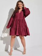 Plus Notched Neck Ruffle Hem Smock Dress