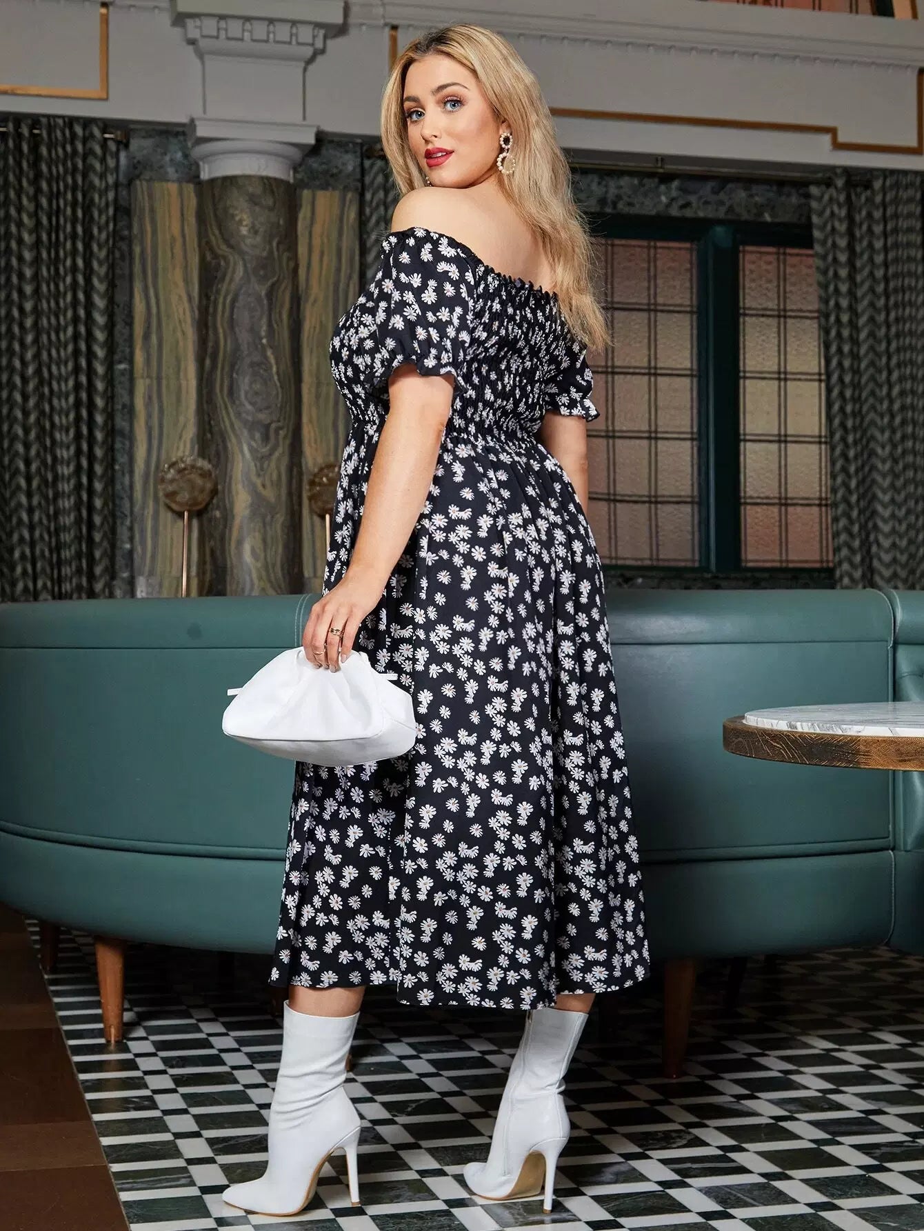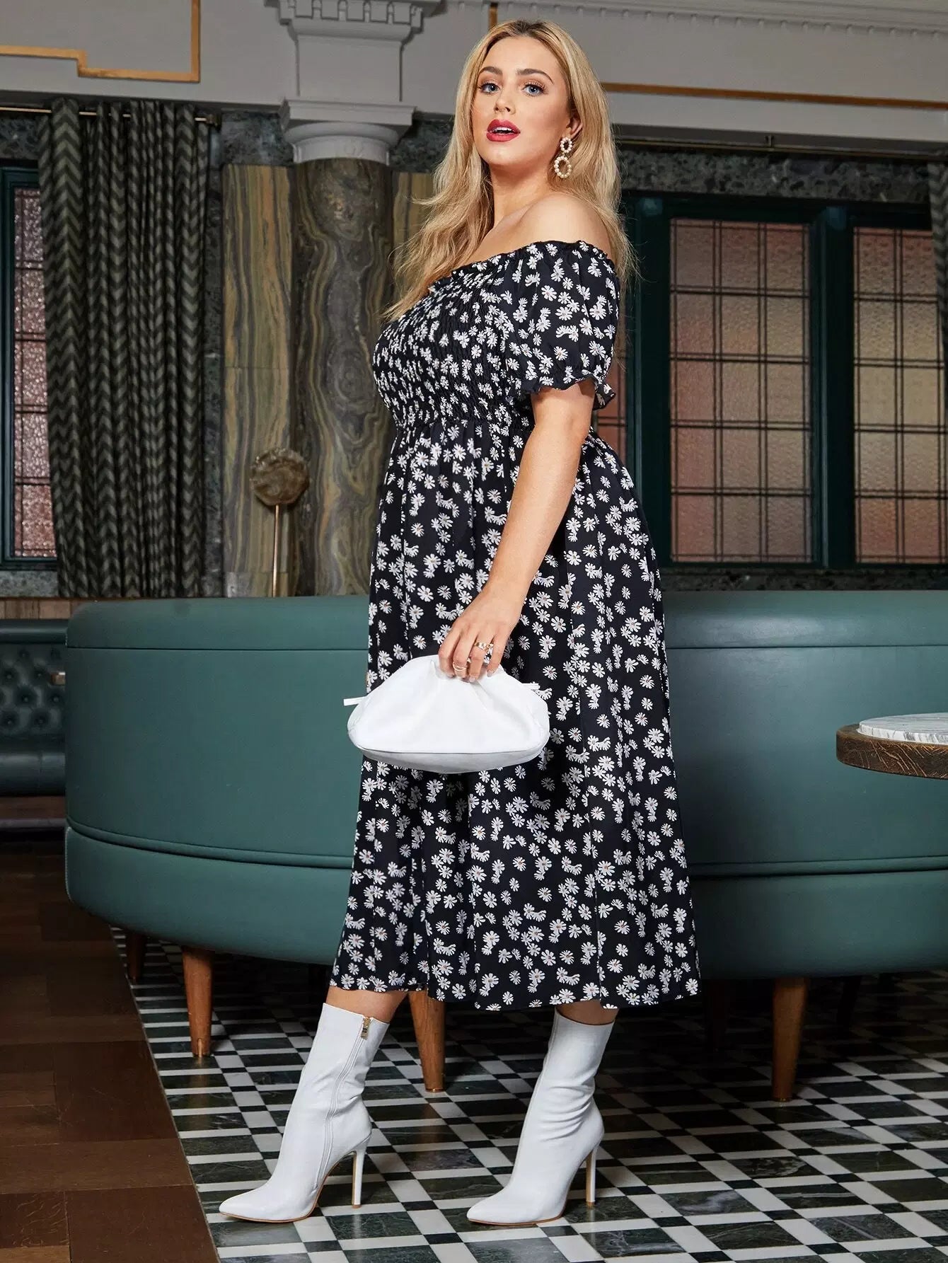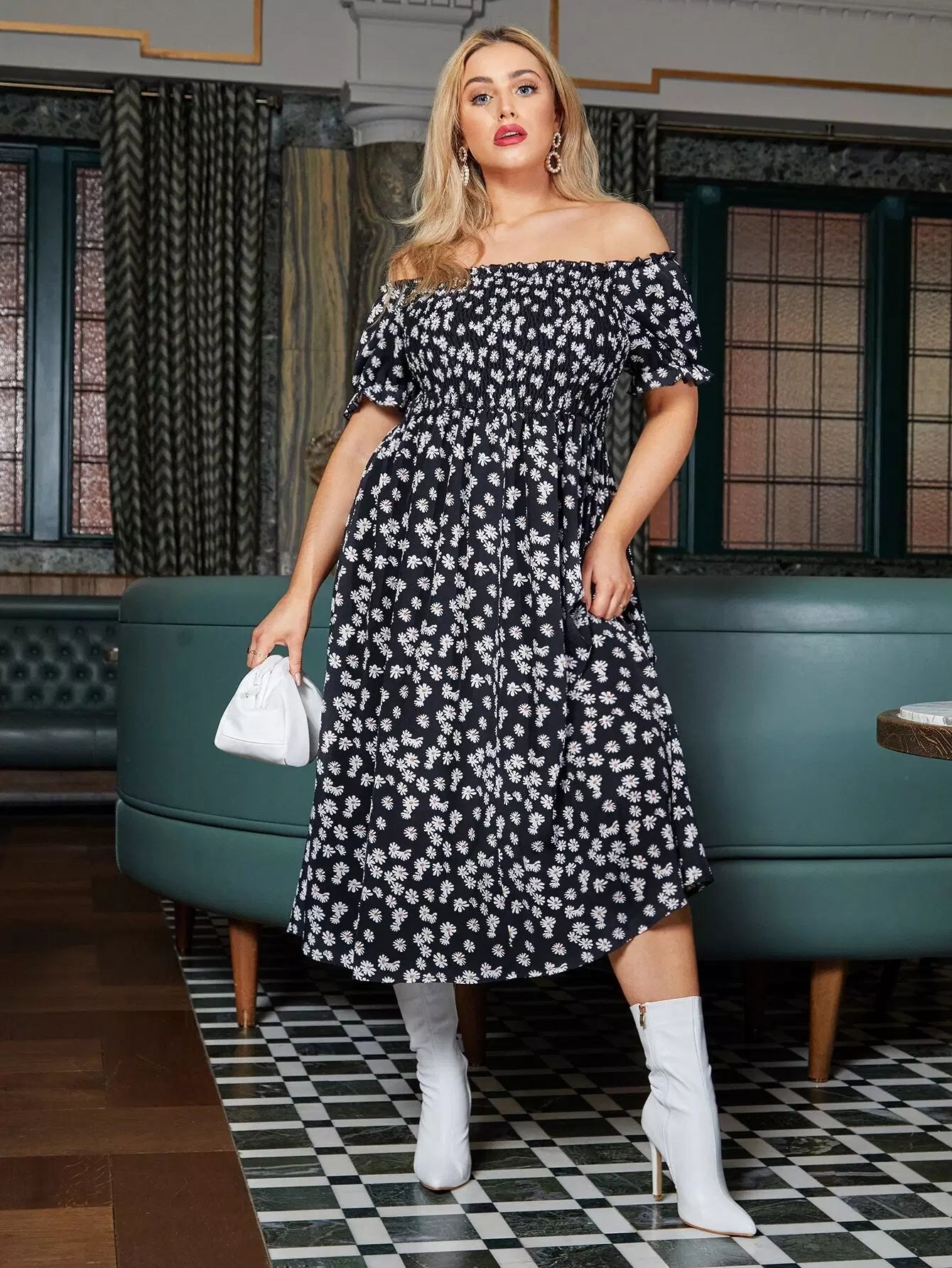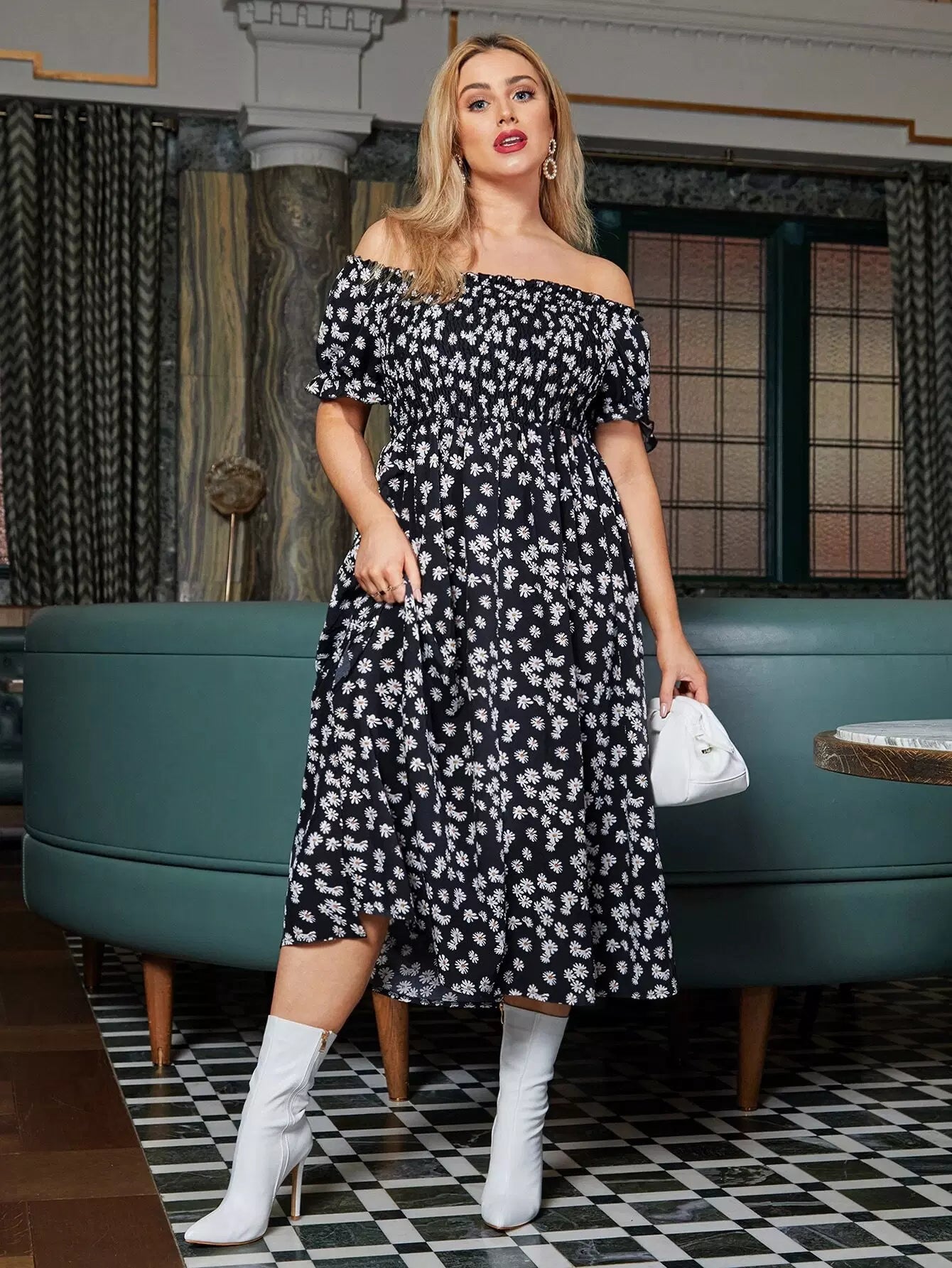 Plus Off The Shoulder Allover Floral Print Dress