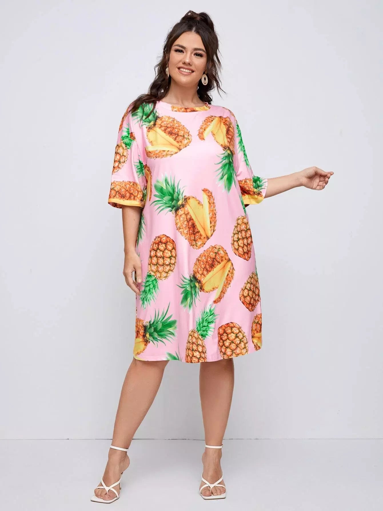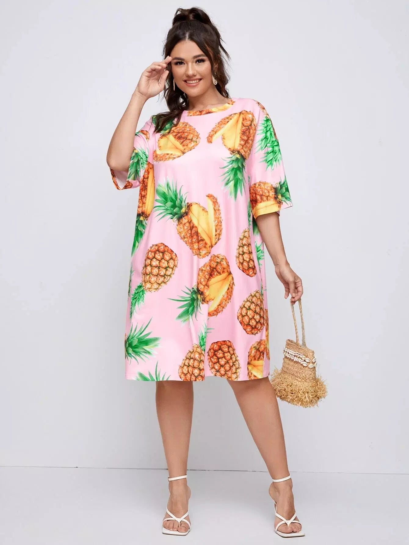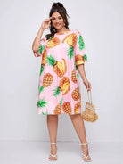 Plus Pineapple Print Tee Dress
