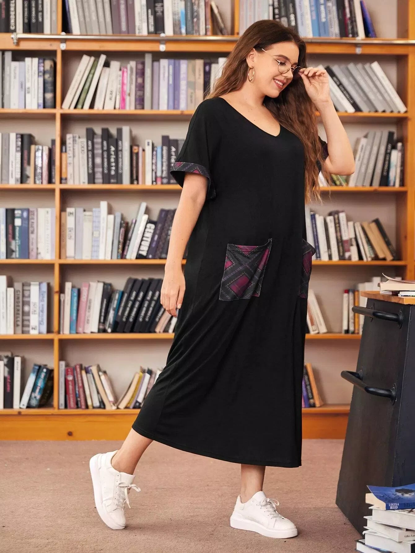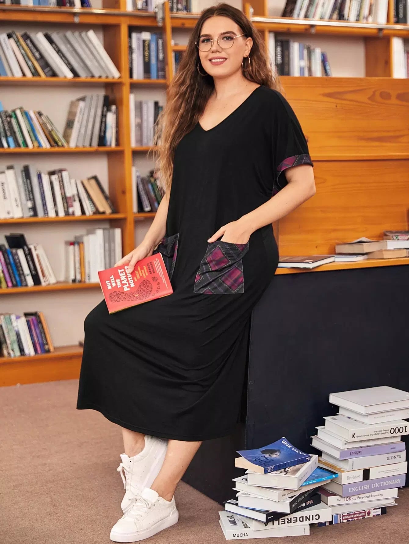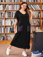 Plus Plaid Pocket Patched Tee Dress