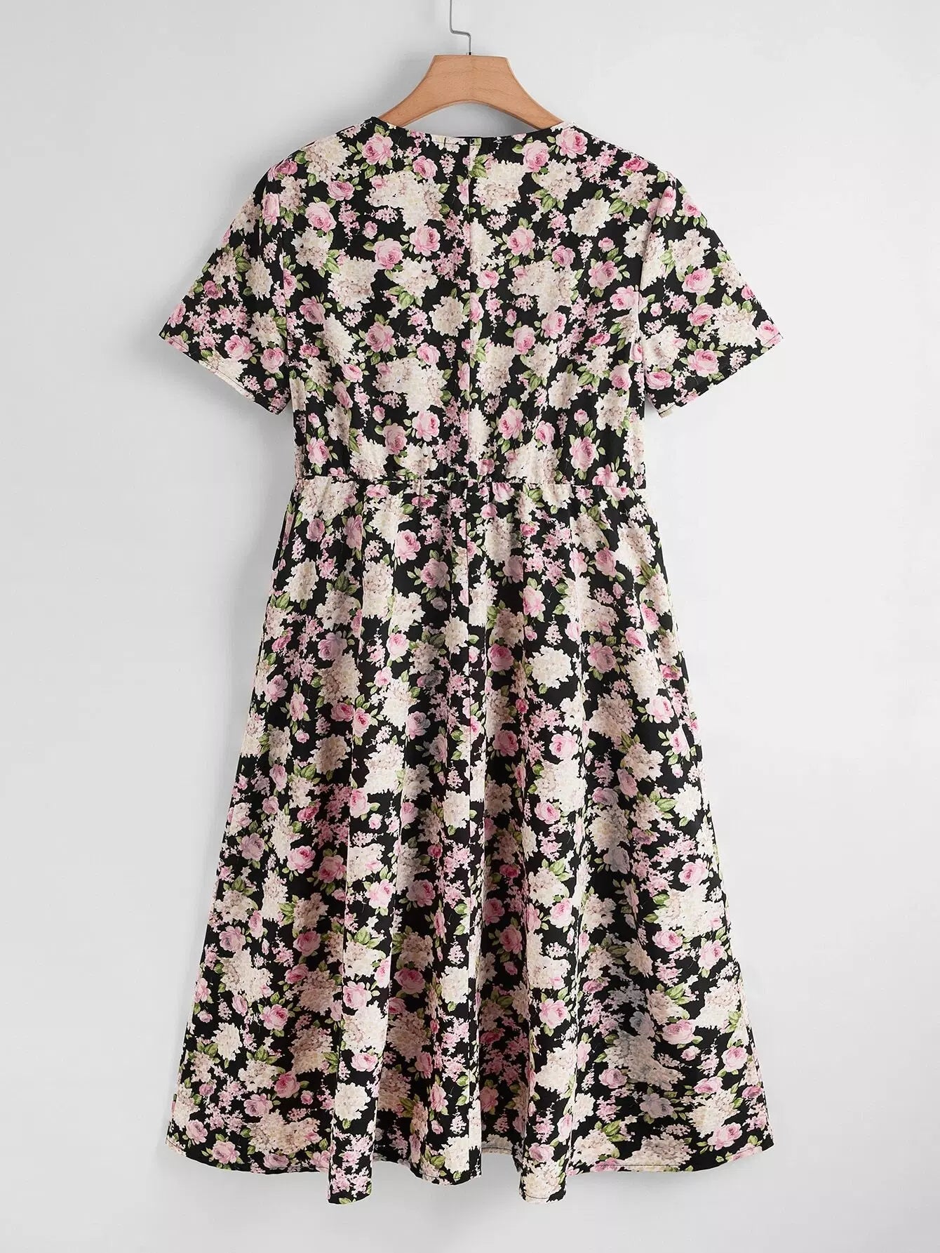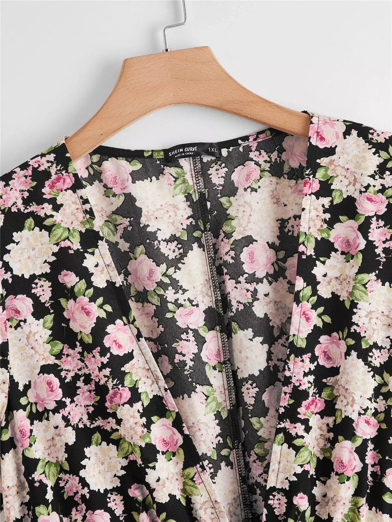 Plus Plunging Neck Split Thigh Allover Floral Dress