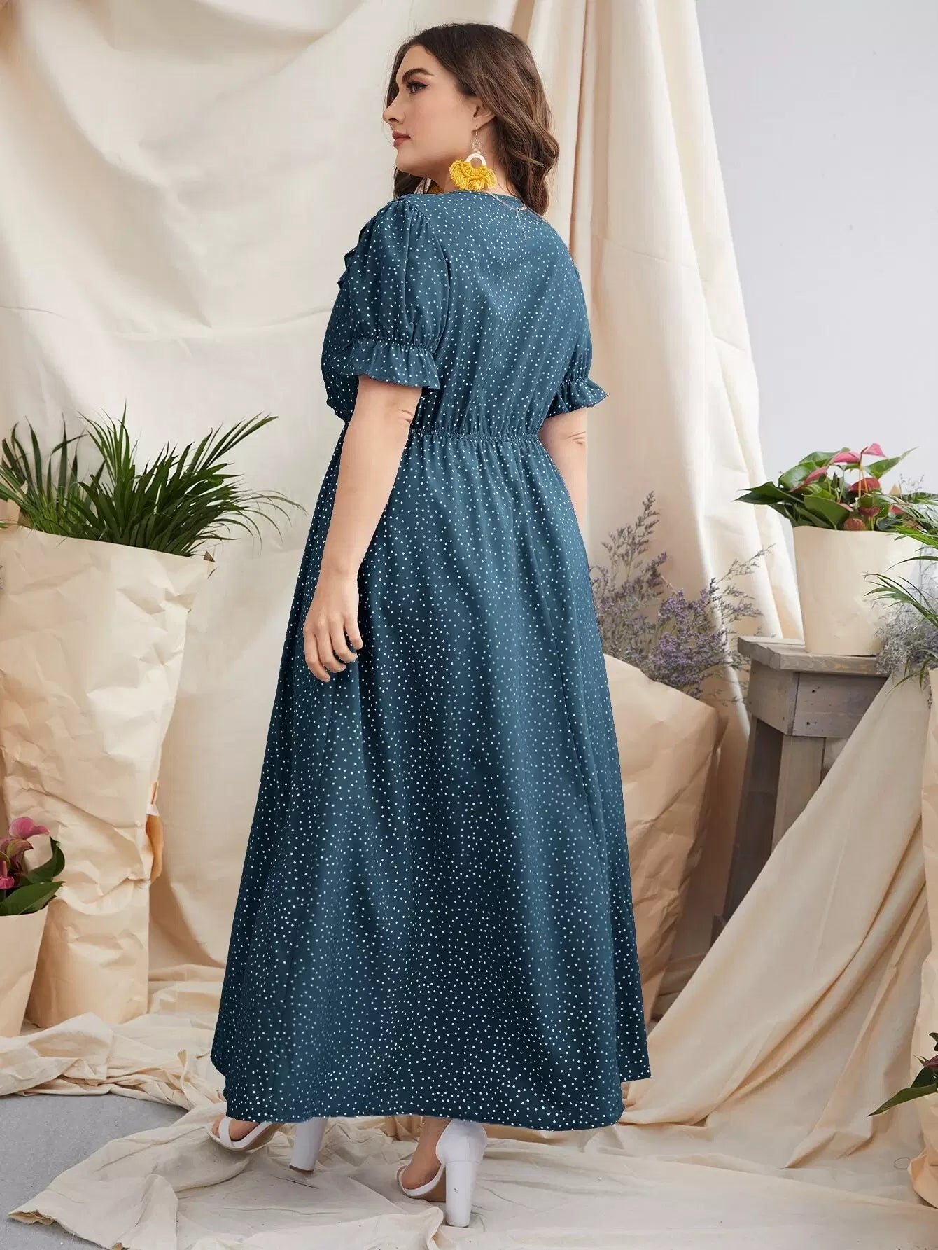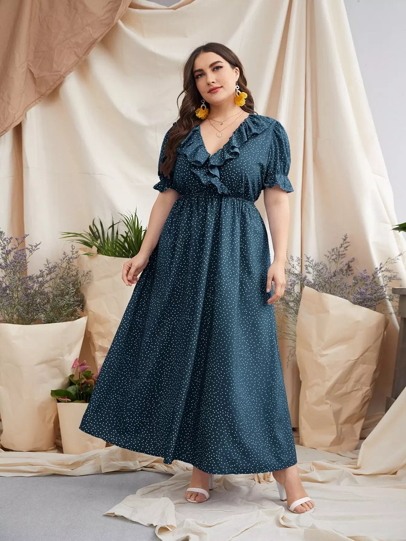 Women - Plus Polka Dot Ruffle Trim A-line Dress