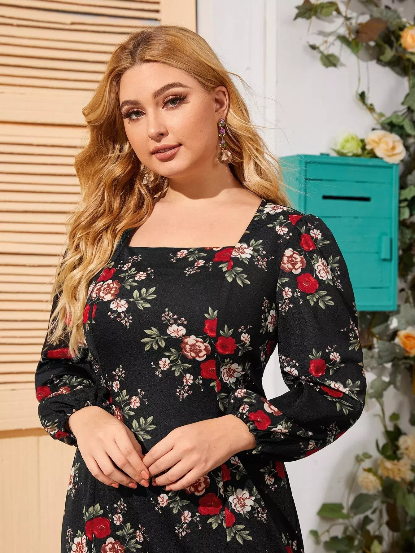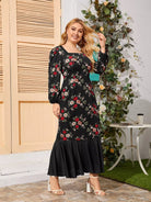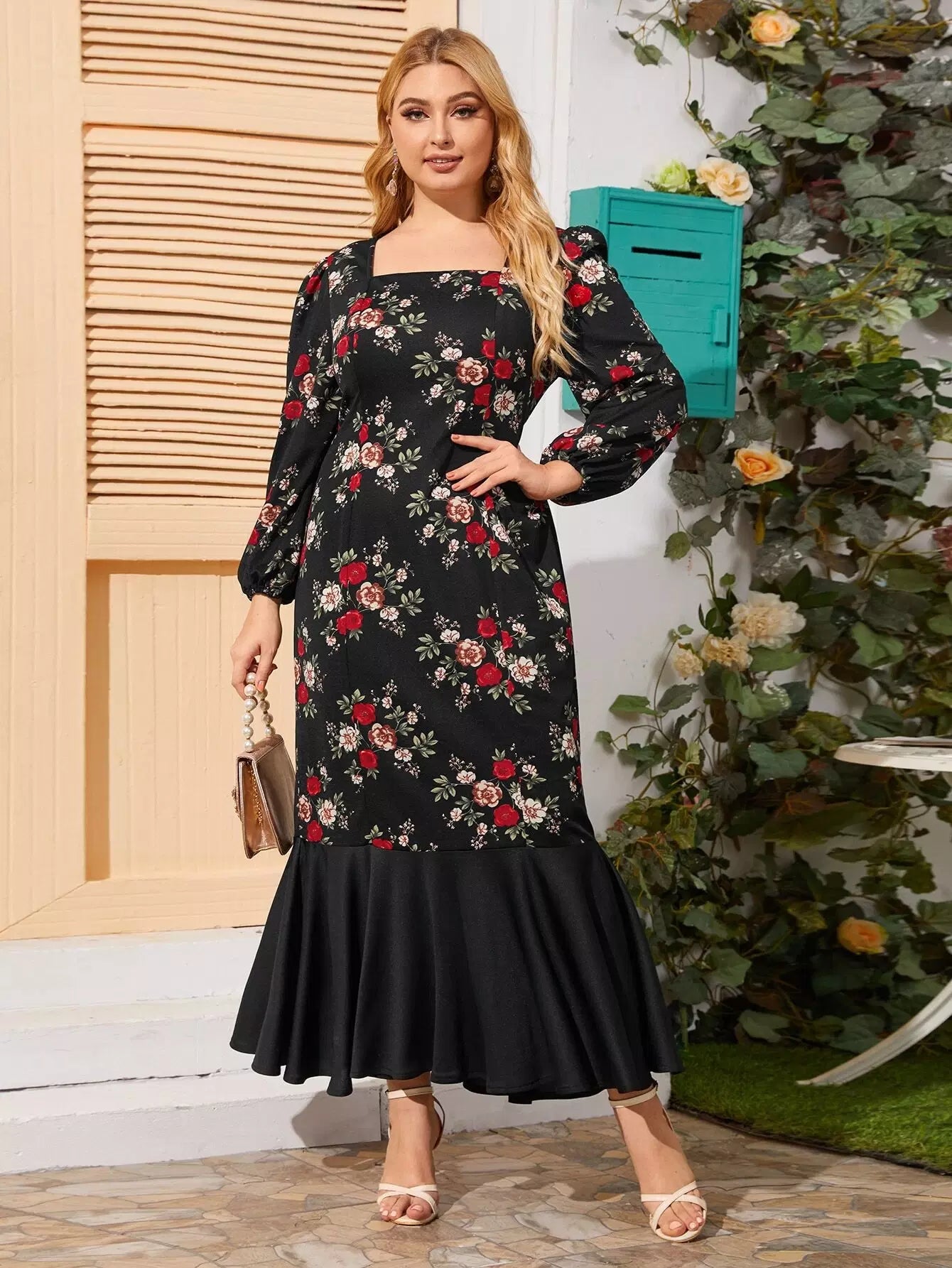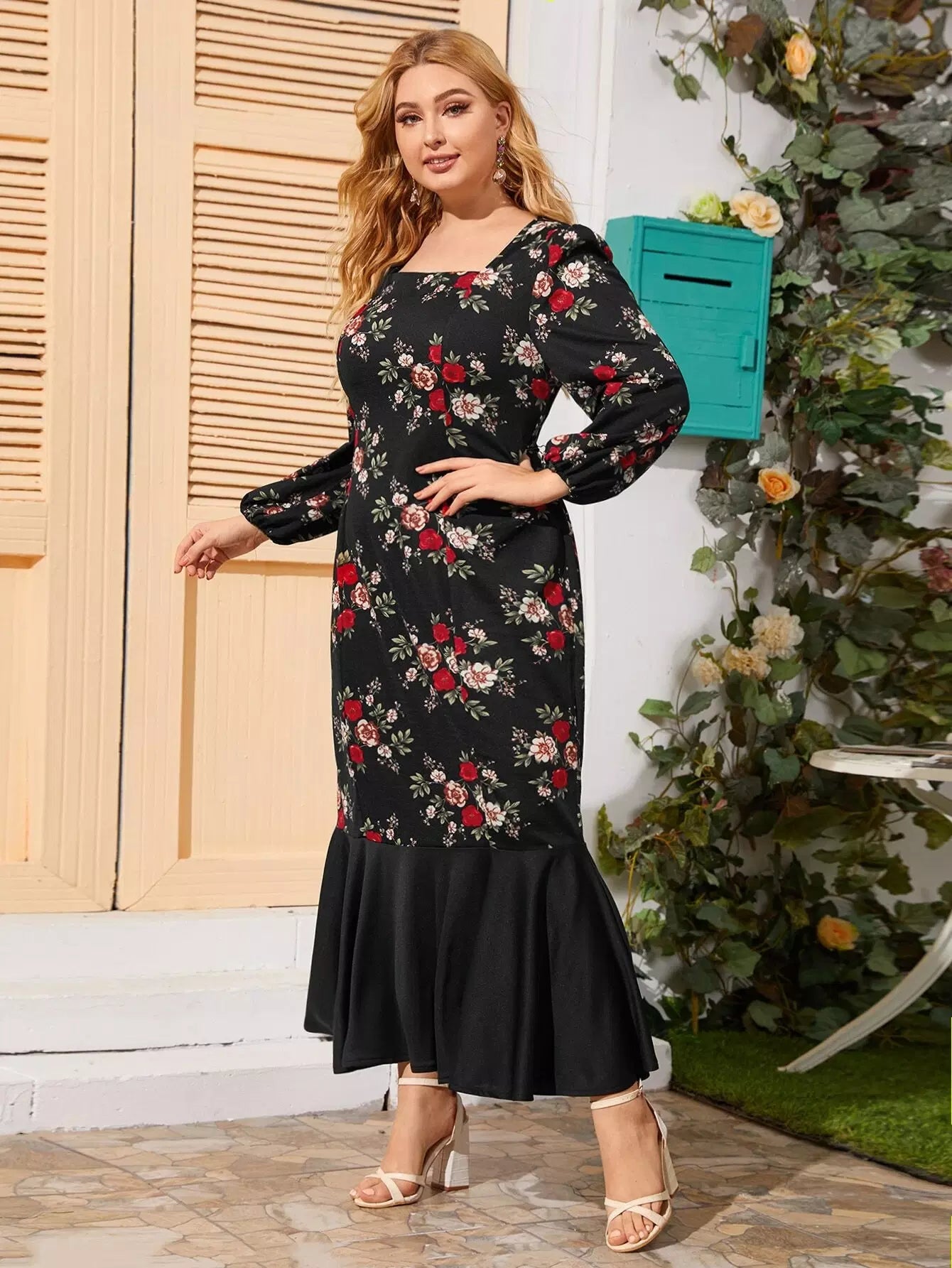 Women - Plus Square Neck Floral Print Mermaid Dress