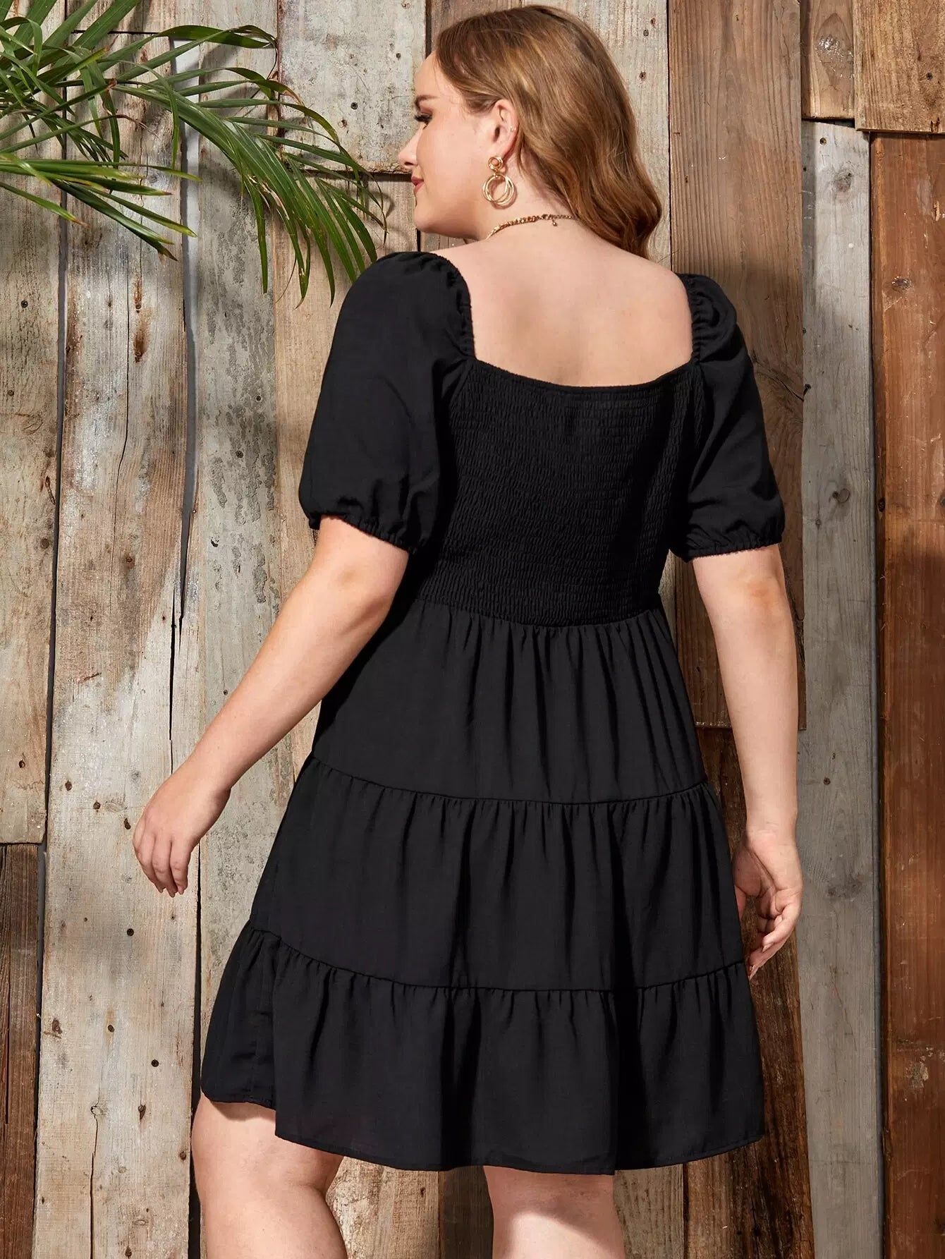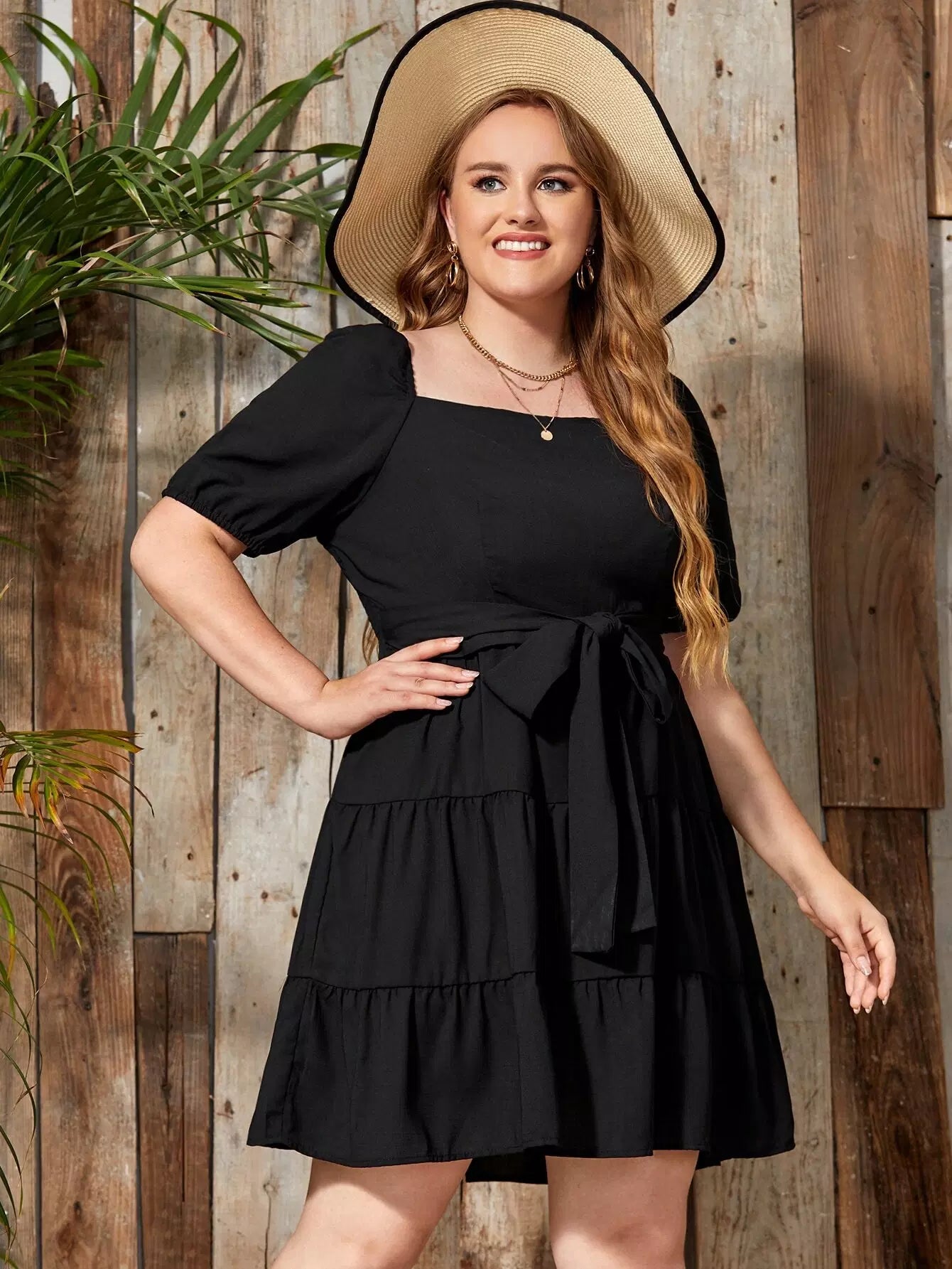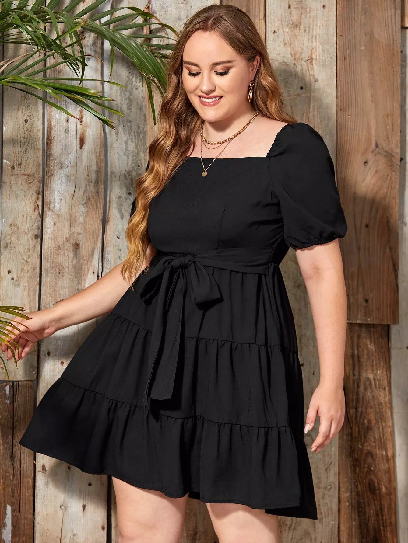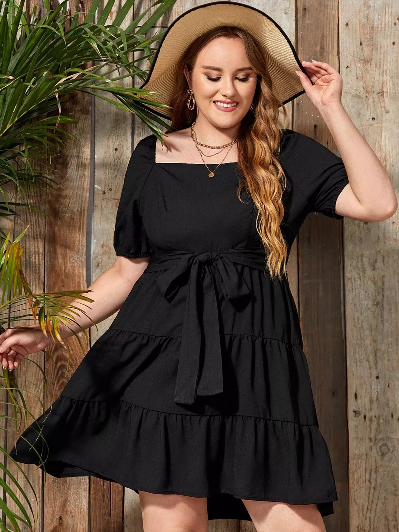 Plus Square Neck Ruffle Hem Dress Without Belt