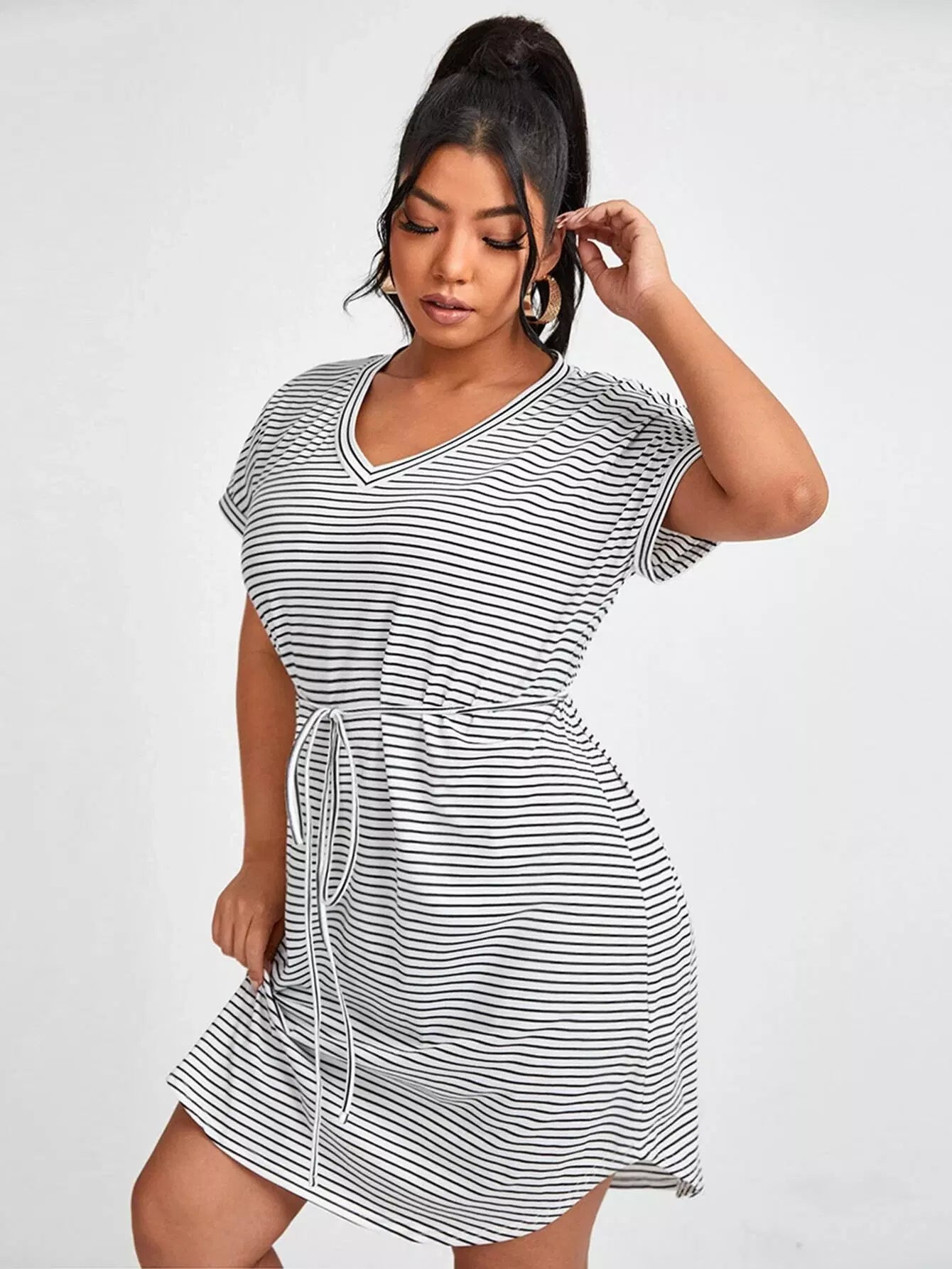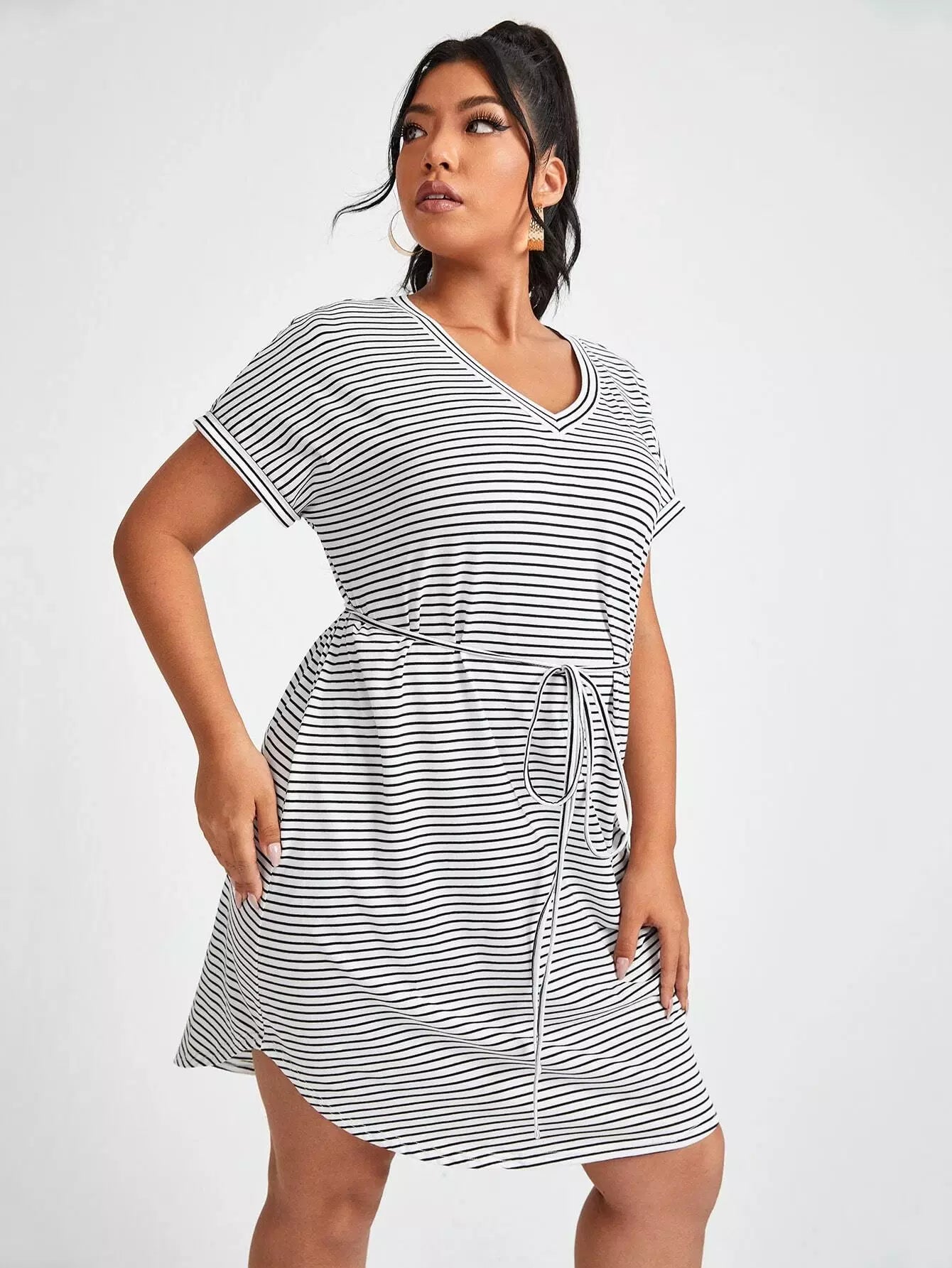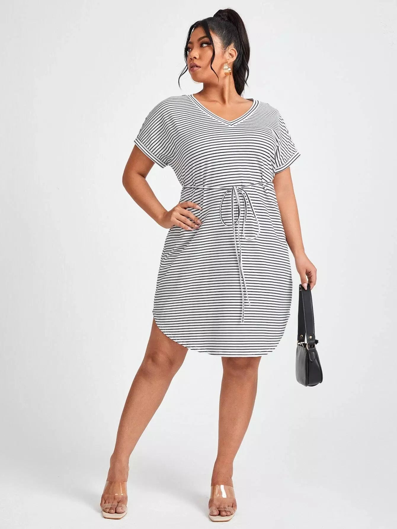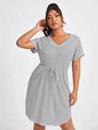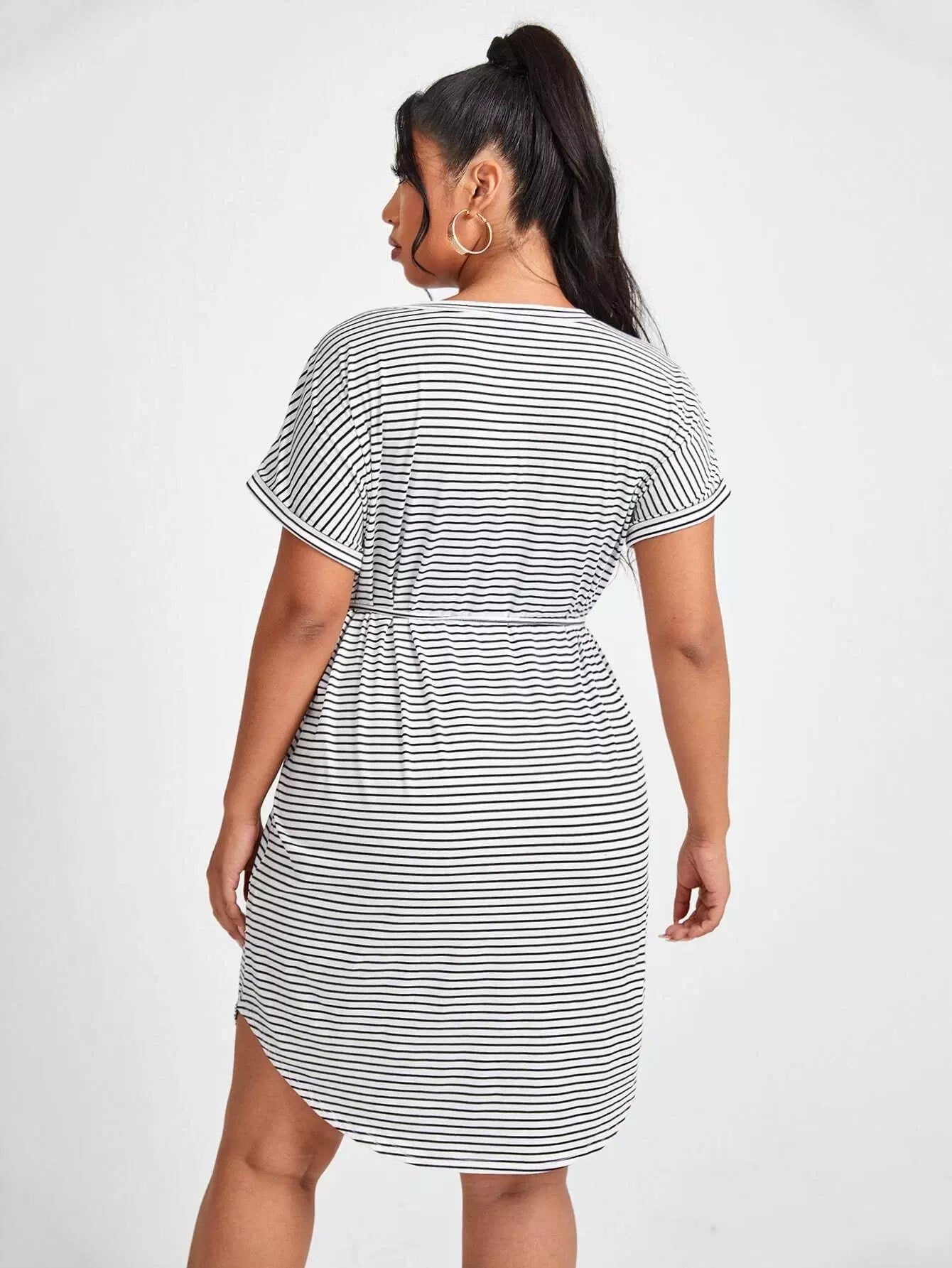 Plus Striped Curved Hem Dress Without Belt