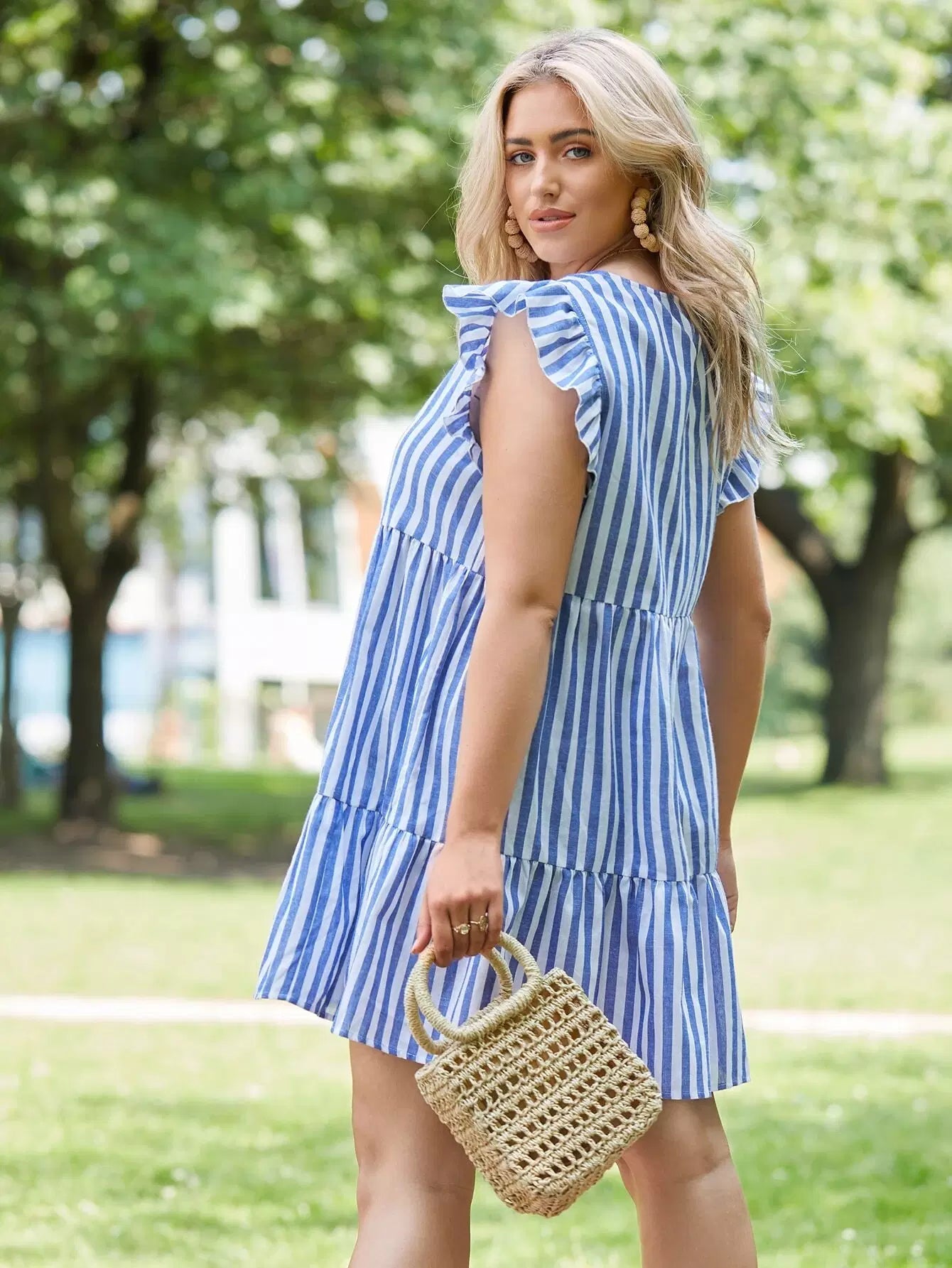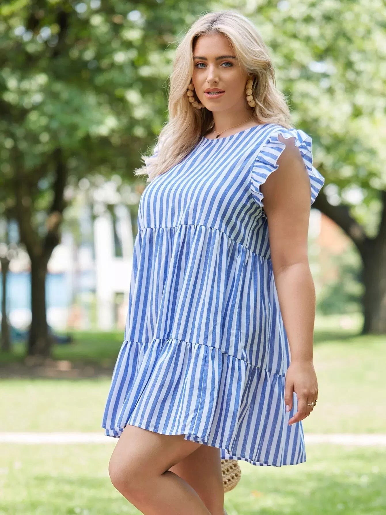 Plus Striped Print Butterfly Sleeve Smock Dress