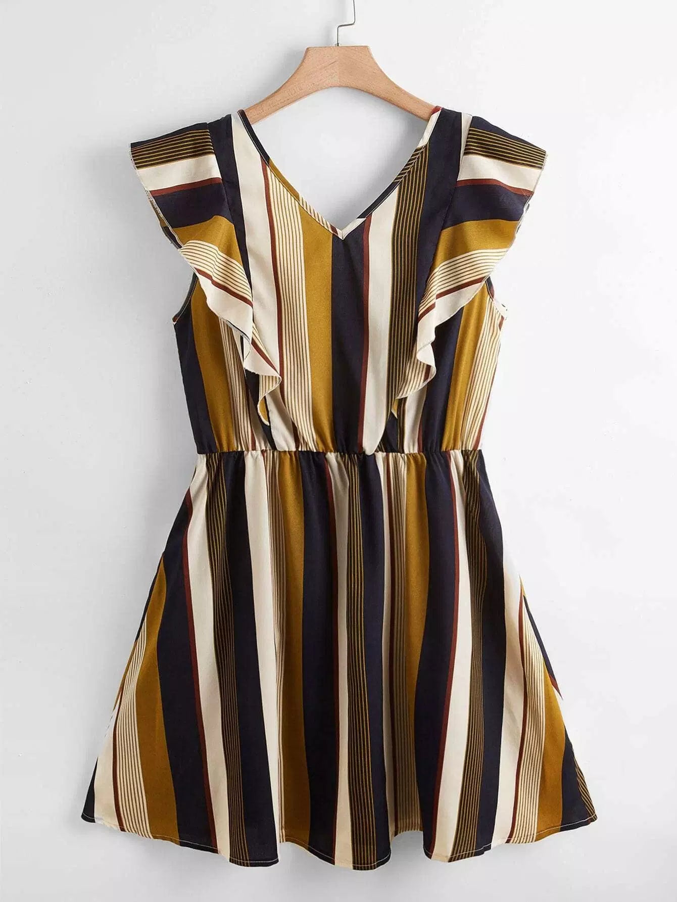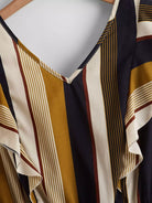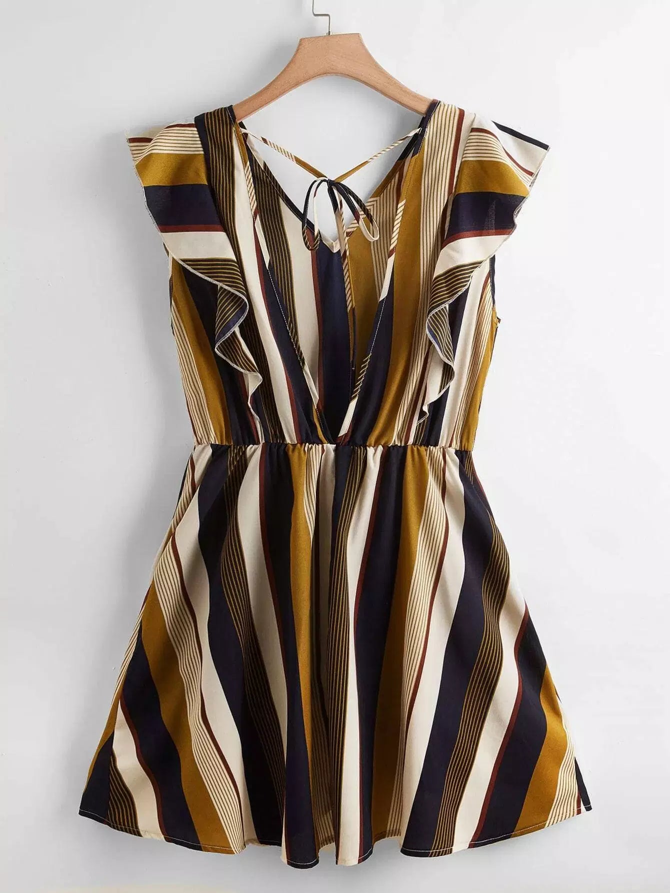 Plus Striped Ruffle Trim Knot Backless Dress