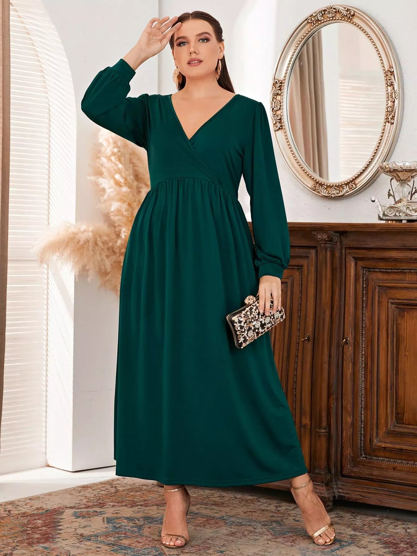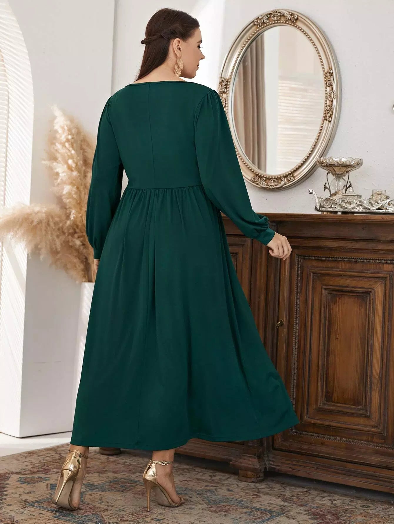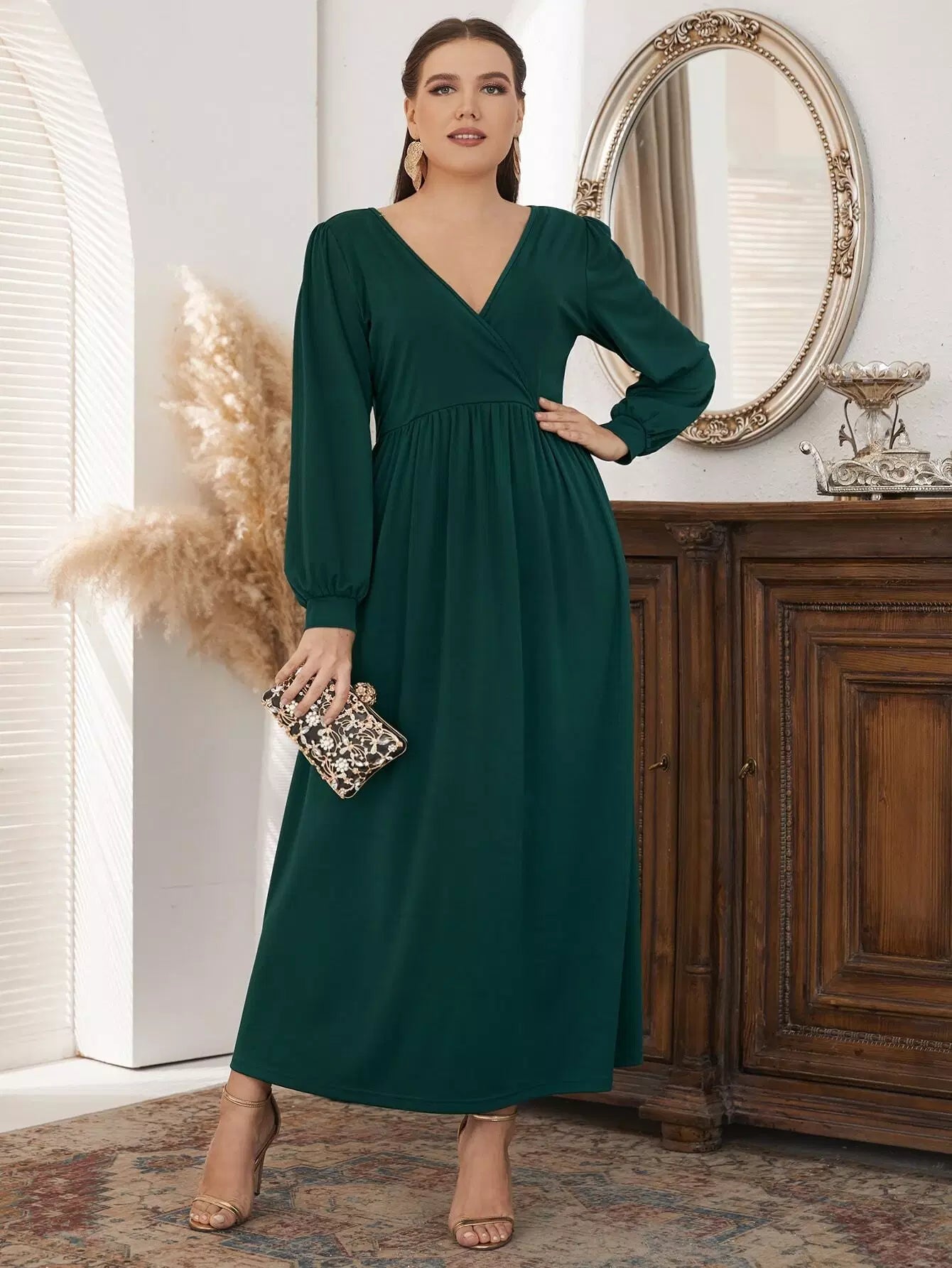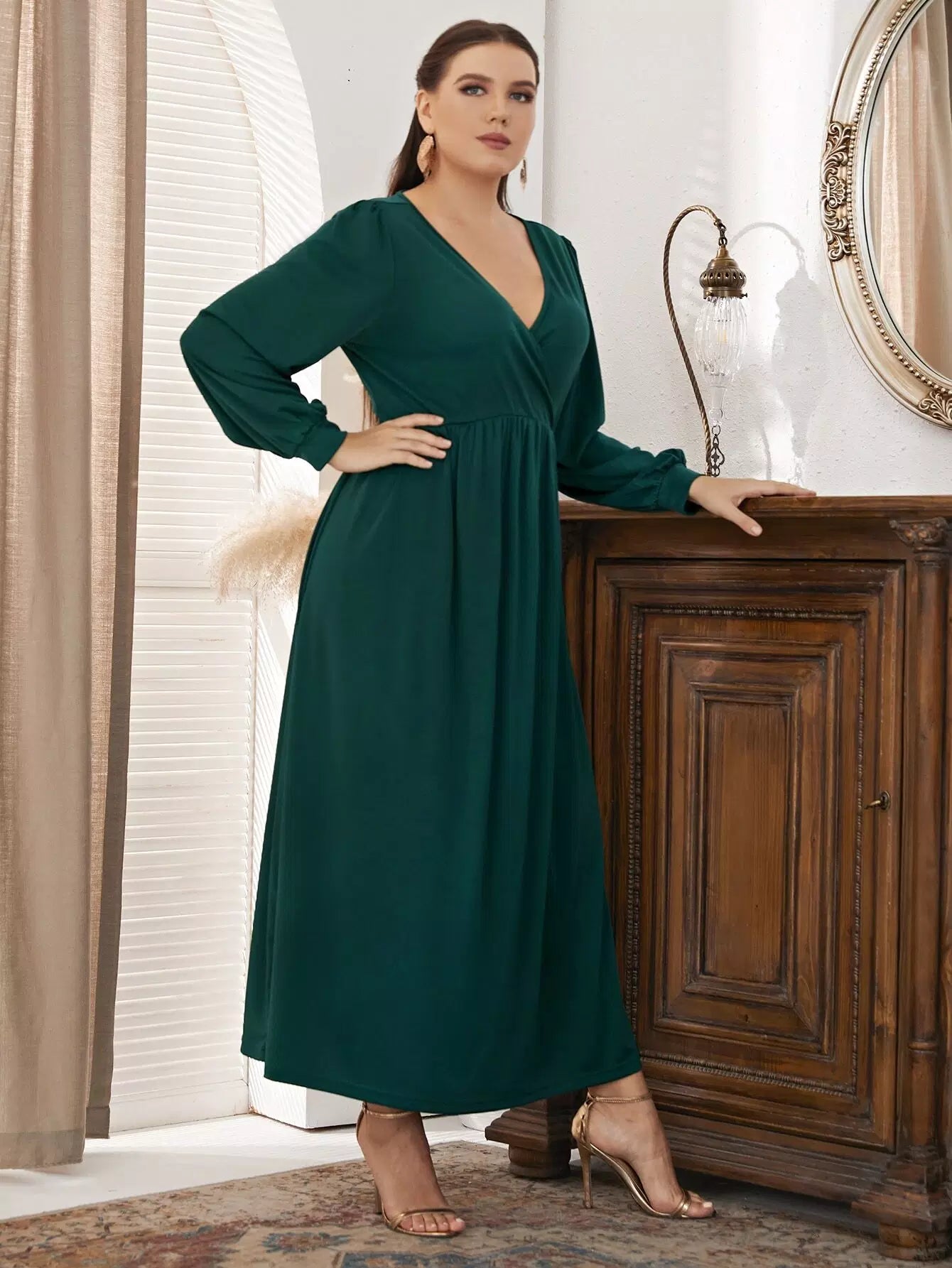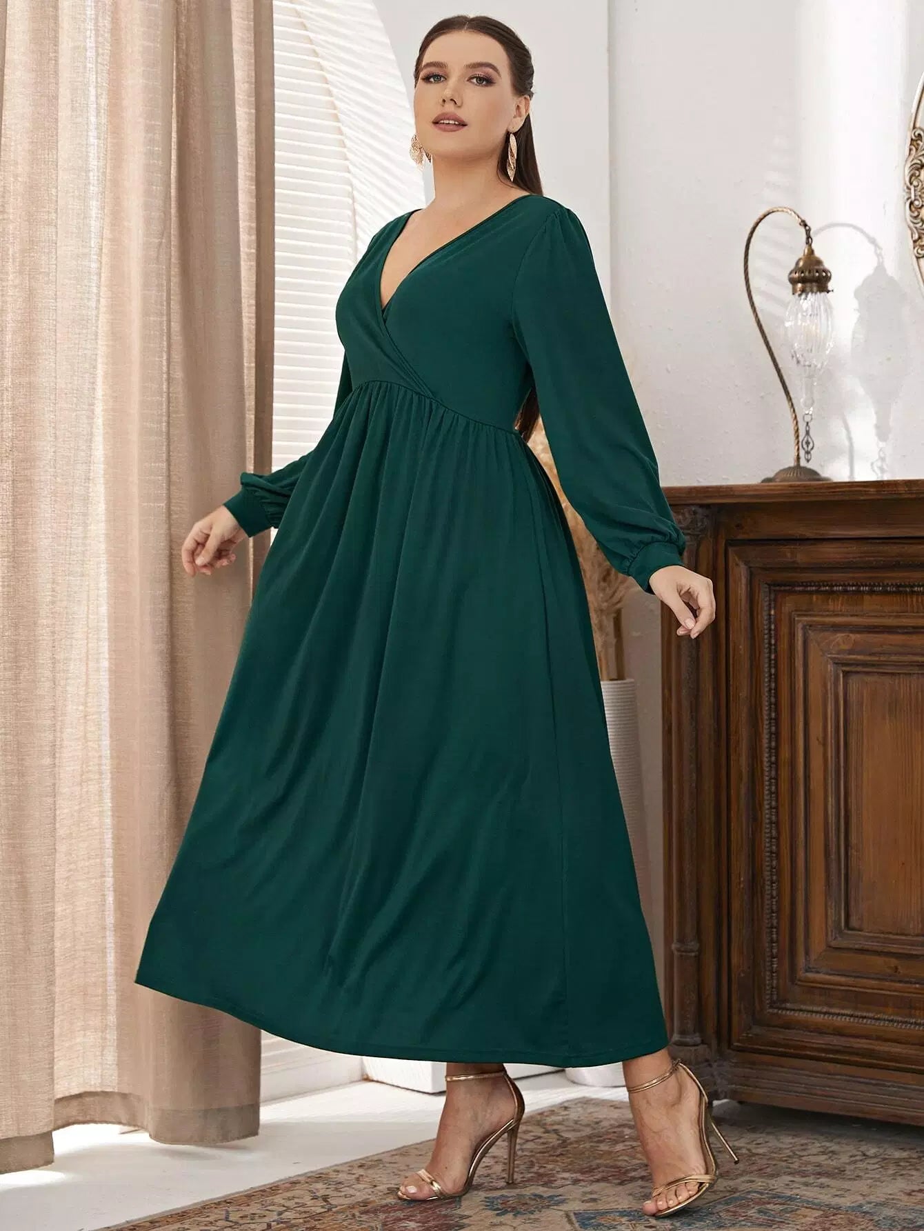Plus Surplice Neck Lantern Sleeve Dress