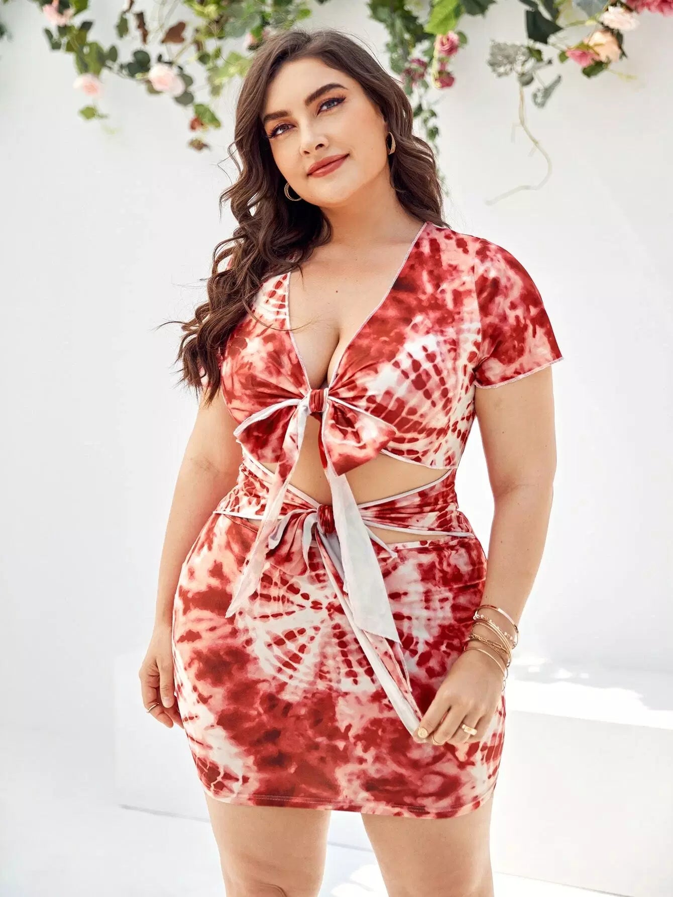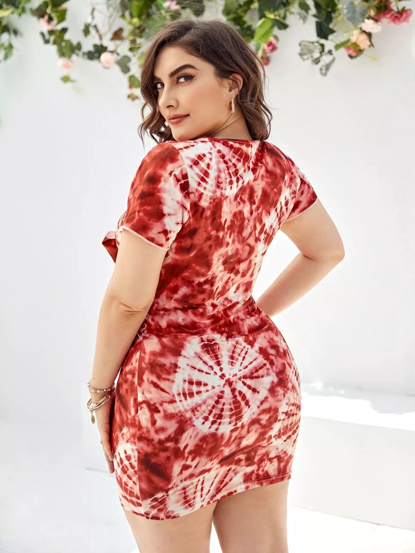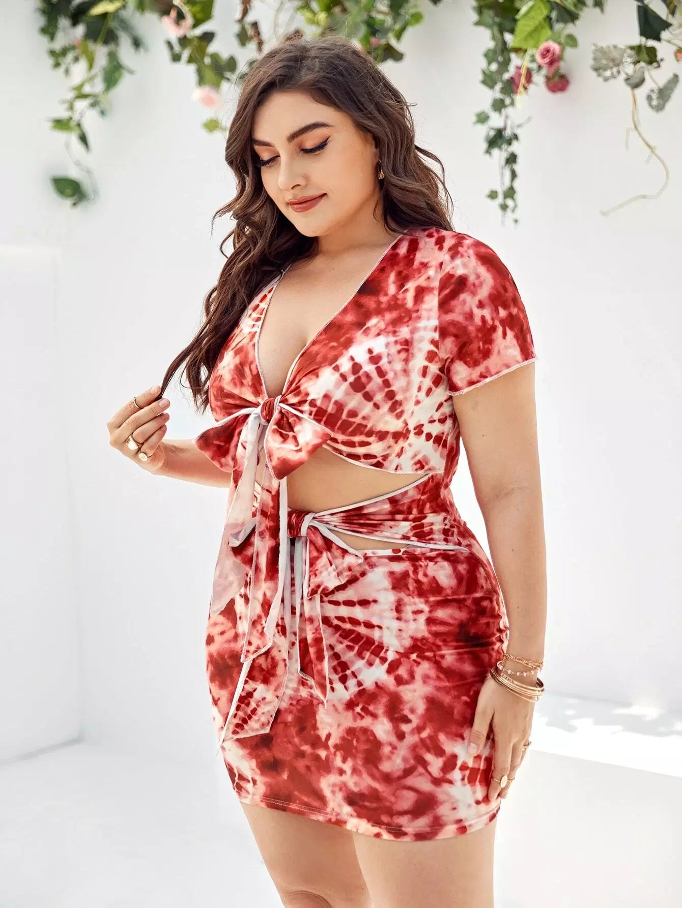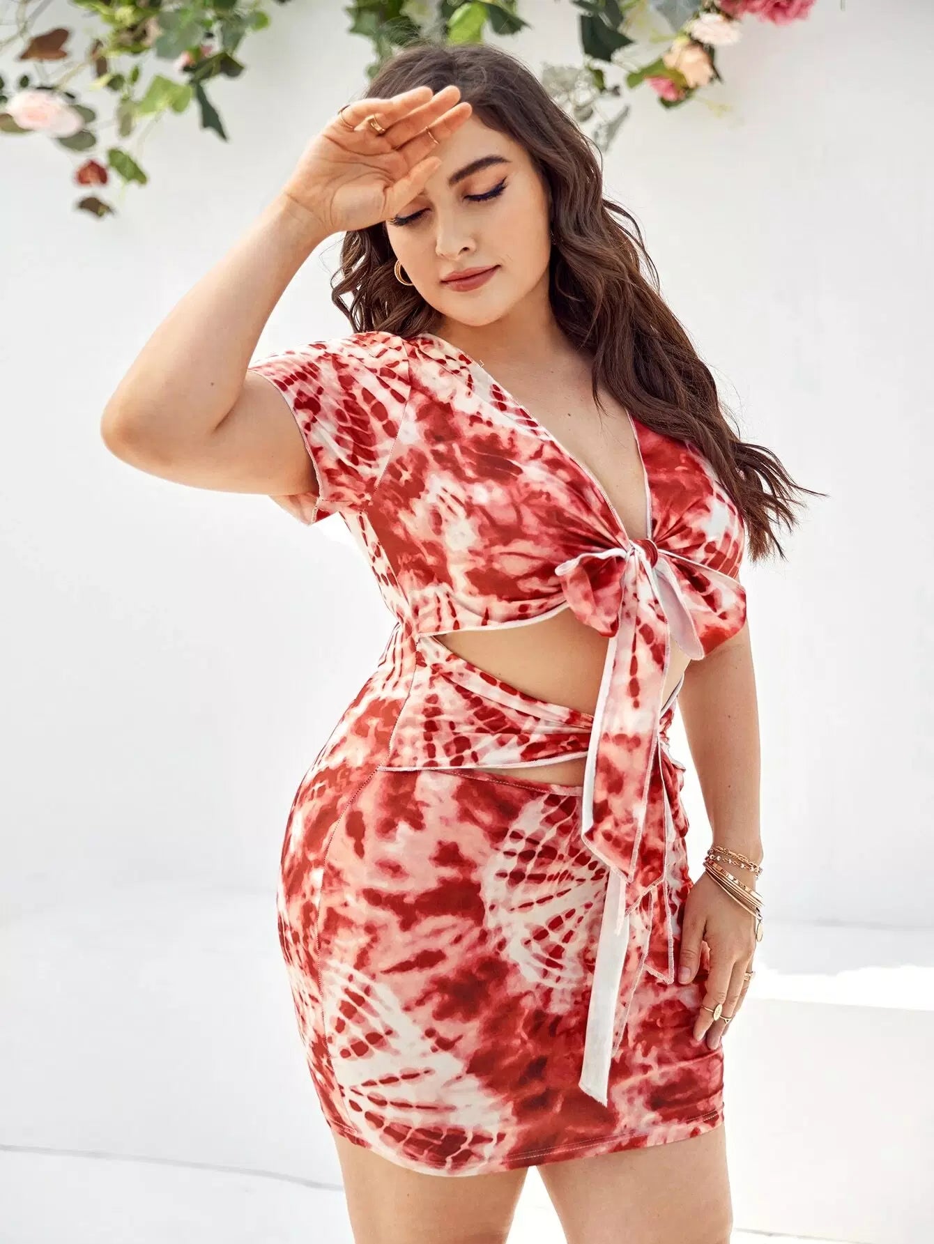 Plus Tie Dye Tie Front Peekaboo Bodycon Dress