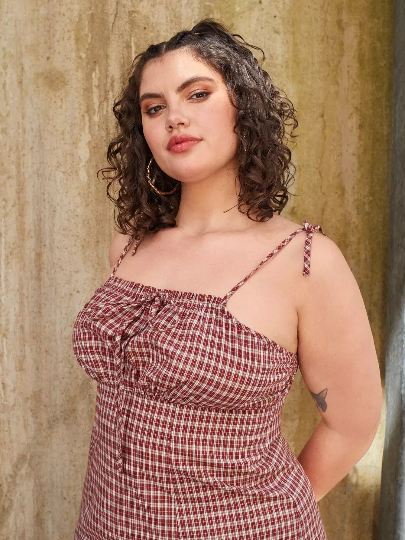 Plus Tie Front Split Hem Plaid Cami Dress