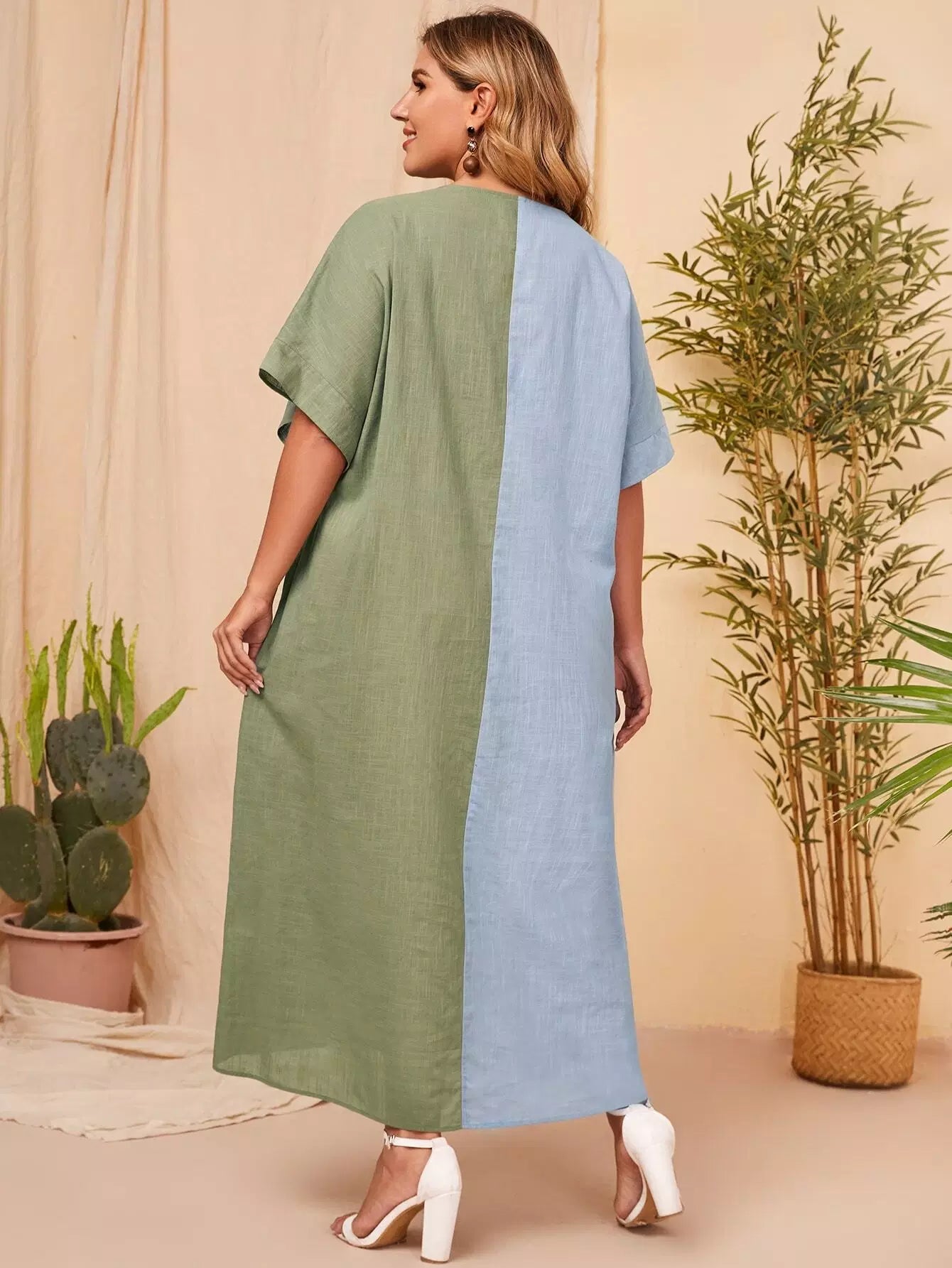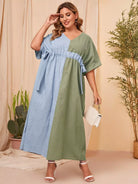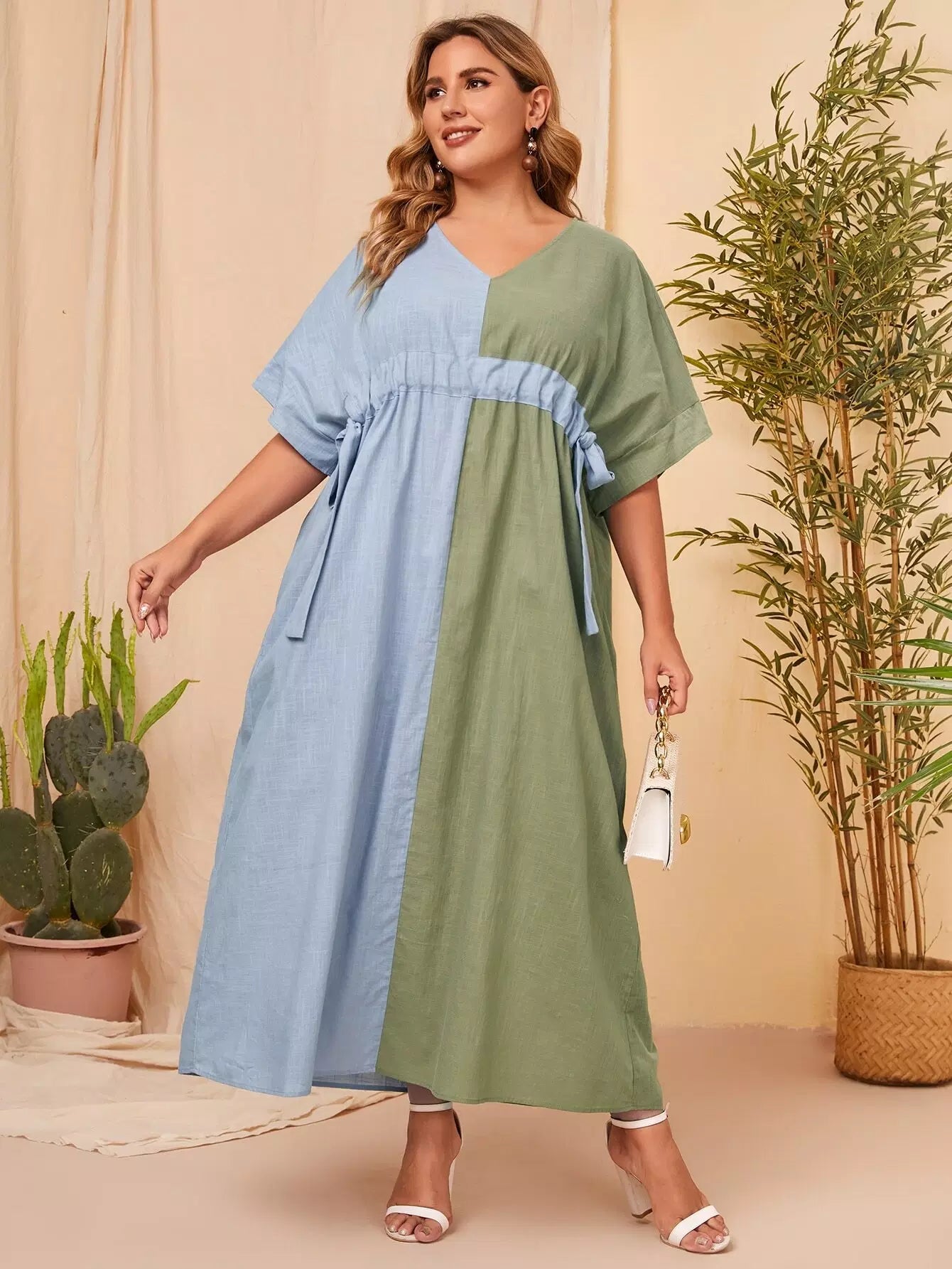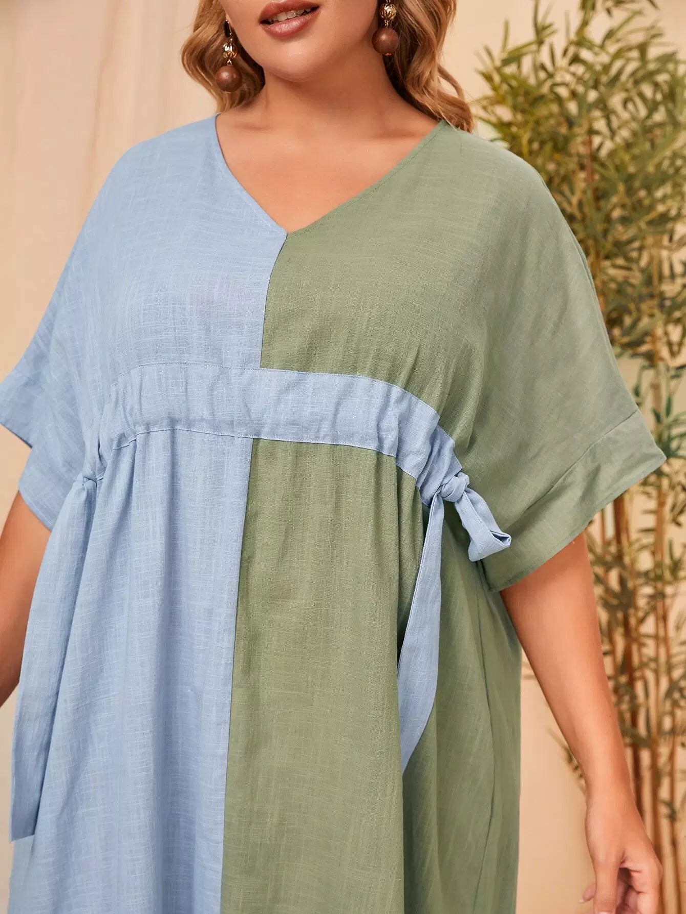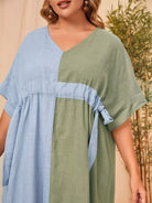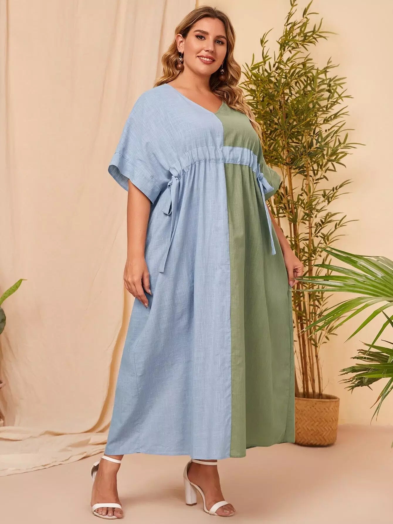 Plus Two Tone Drawstring Waist Batwing Sleeve Dress