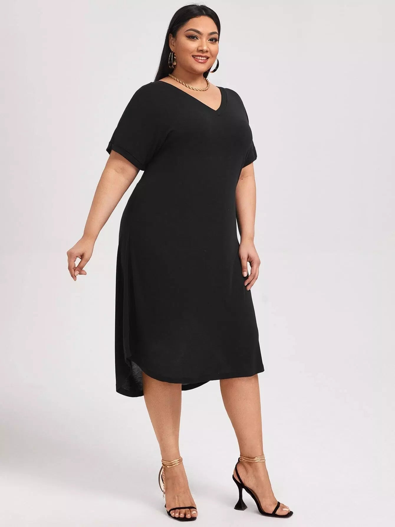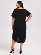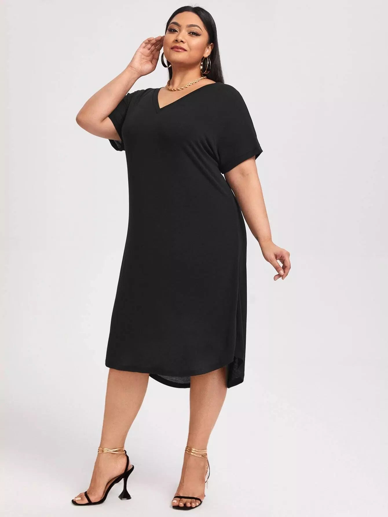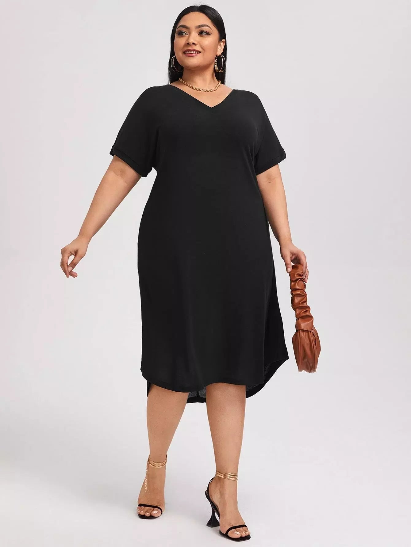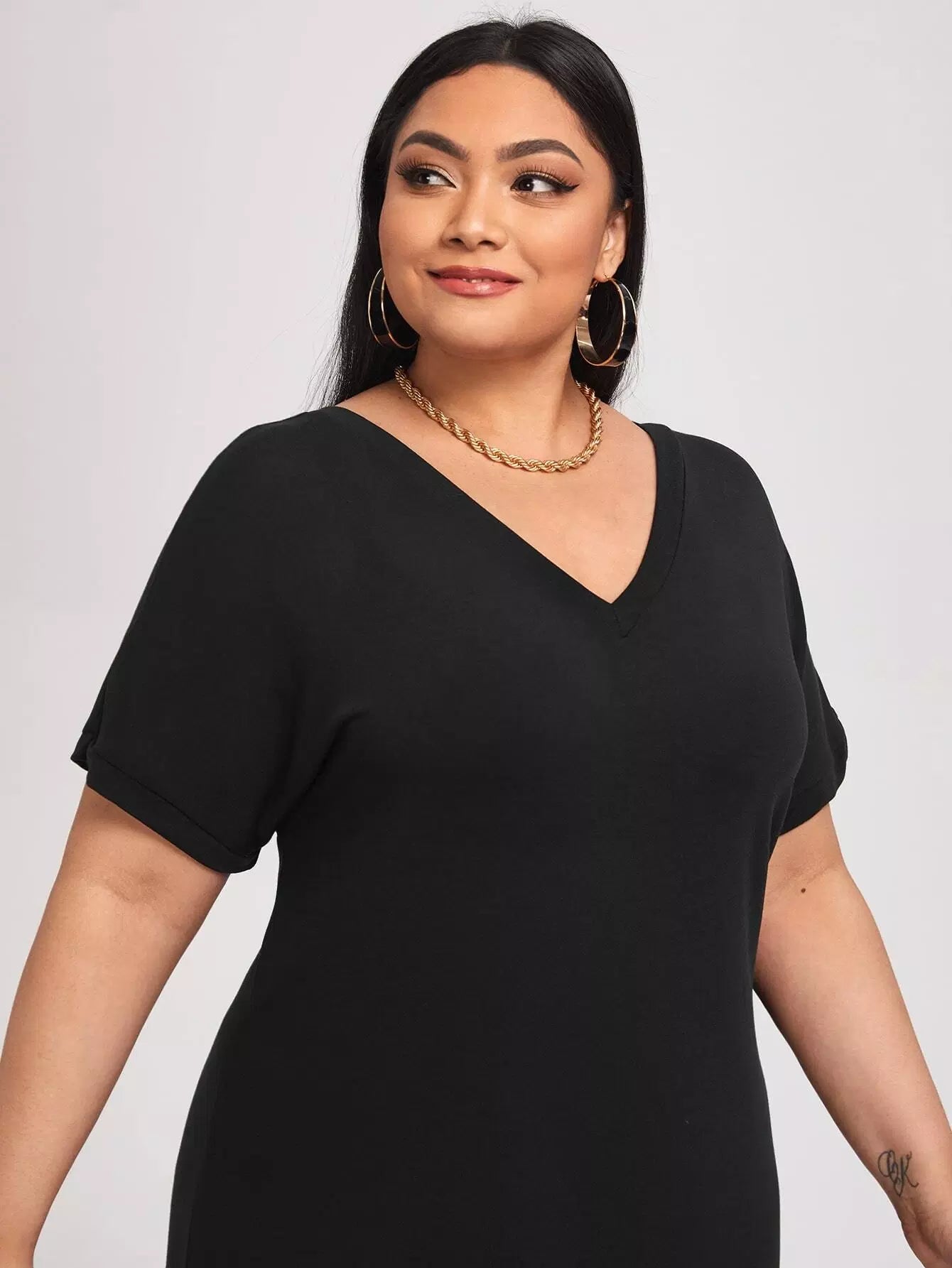 Plus V-neck Batwing Sleeve Midi Tee Dress