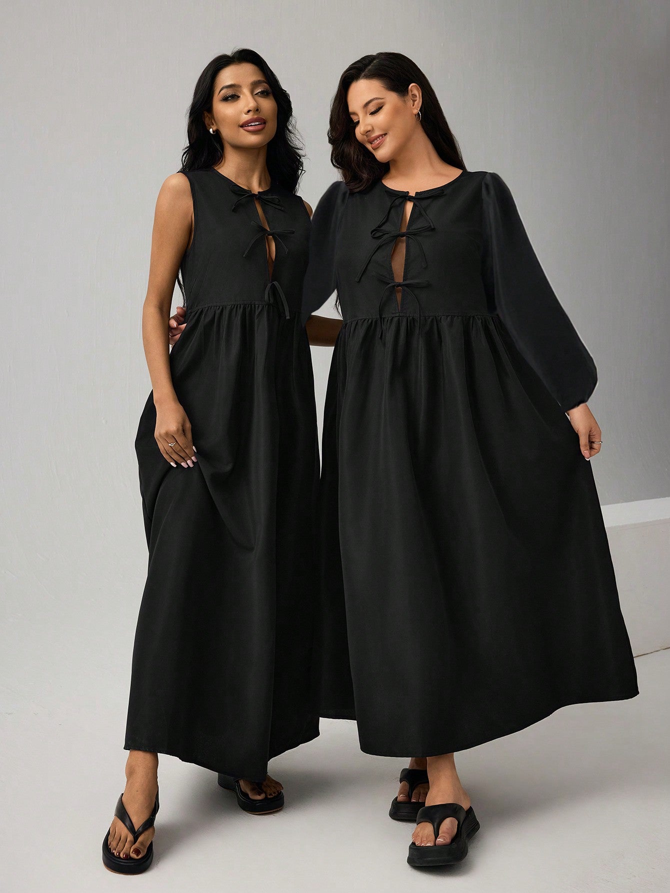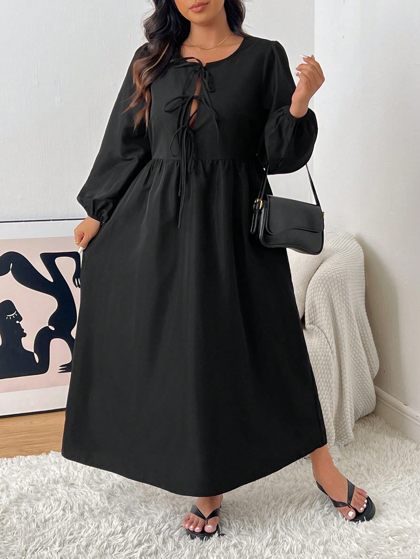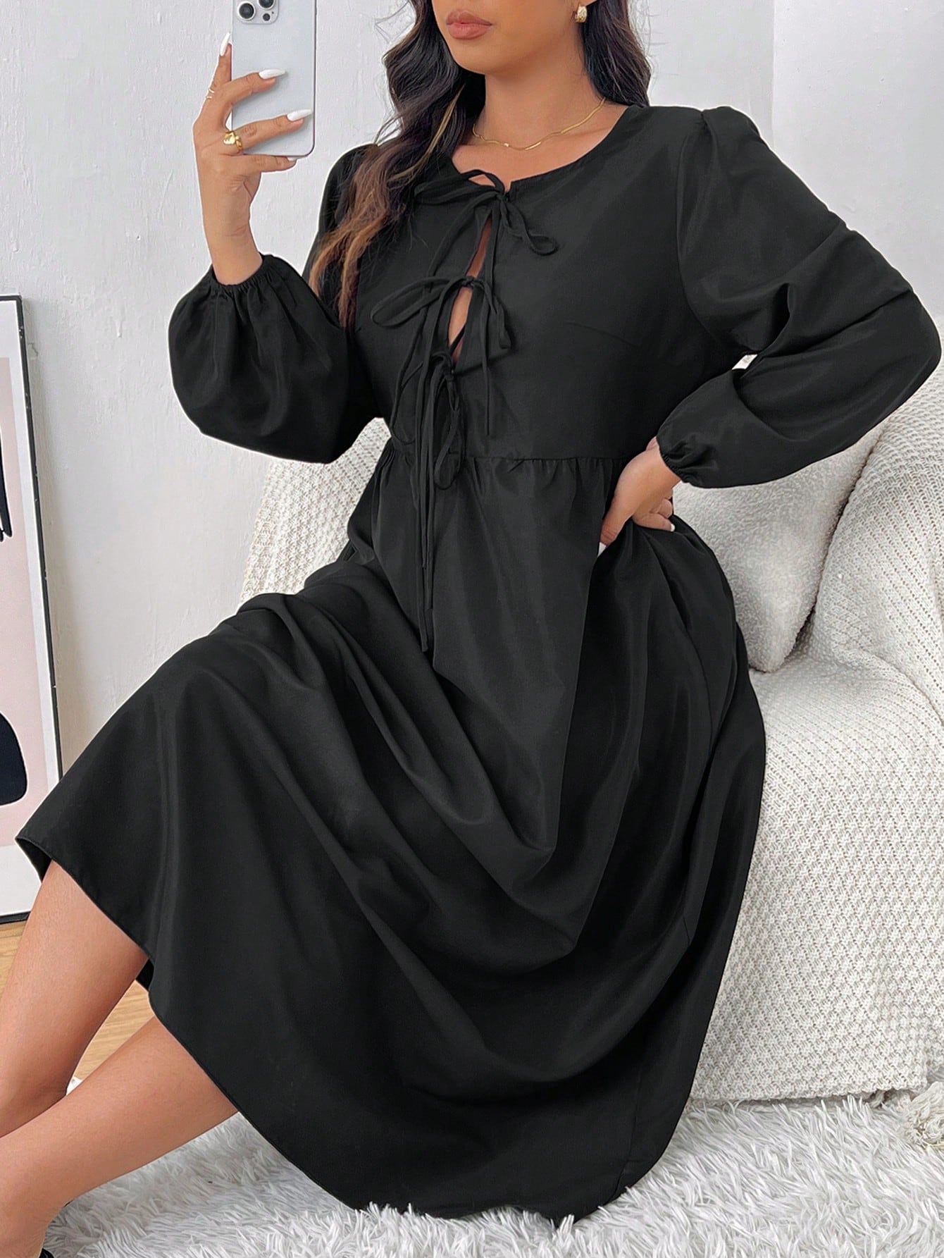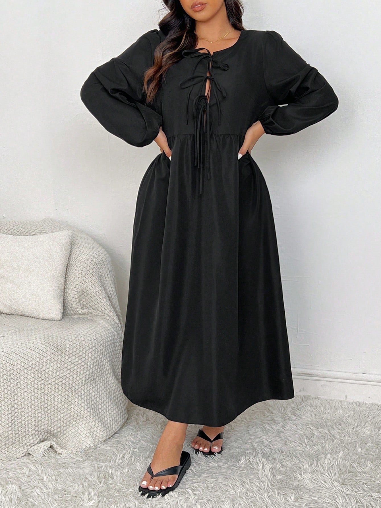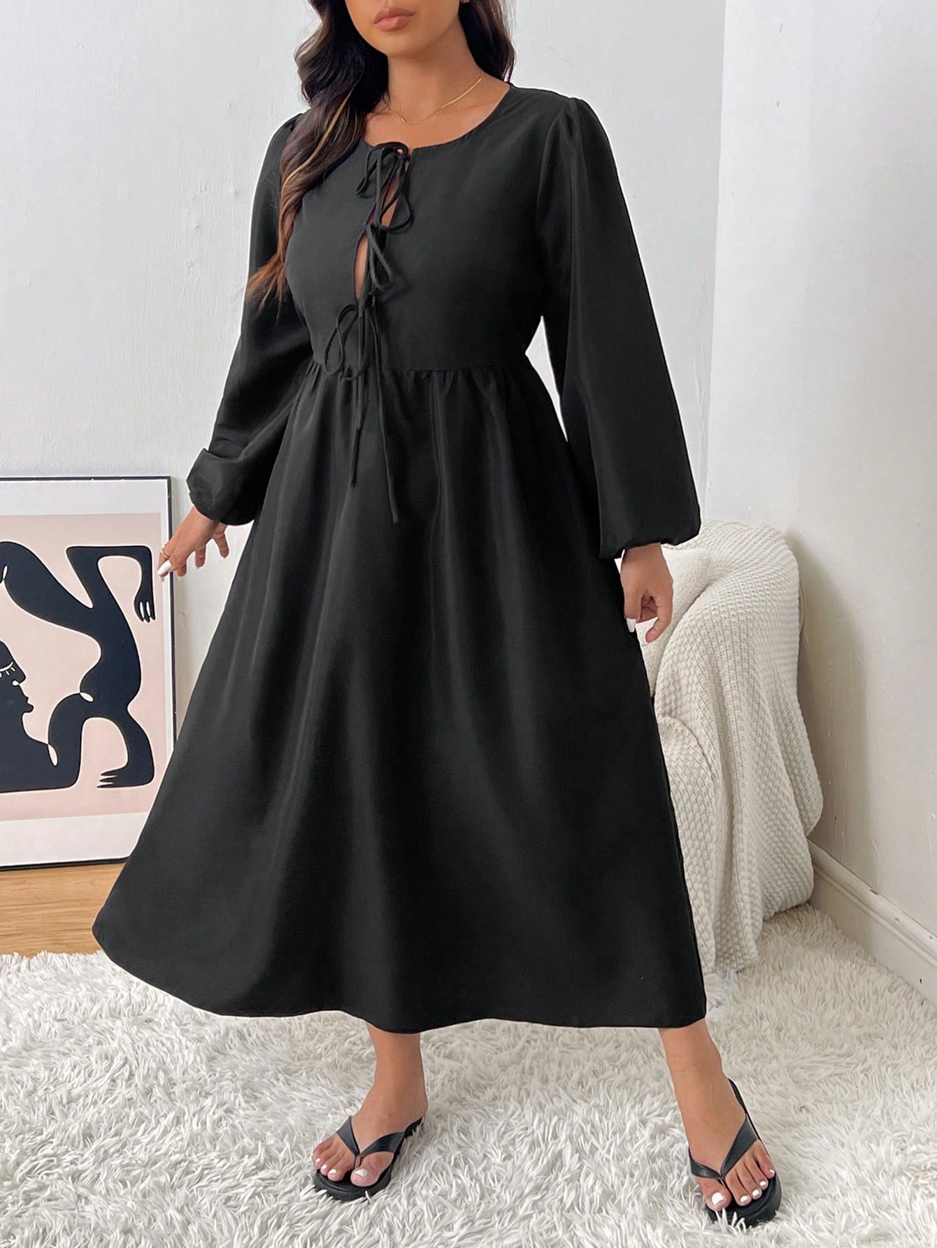 SHEIN Frenchy Plus Size Women's Bow Tie Waist Dress