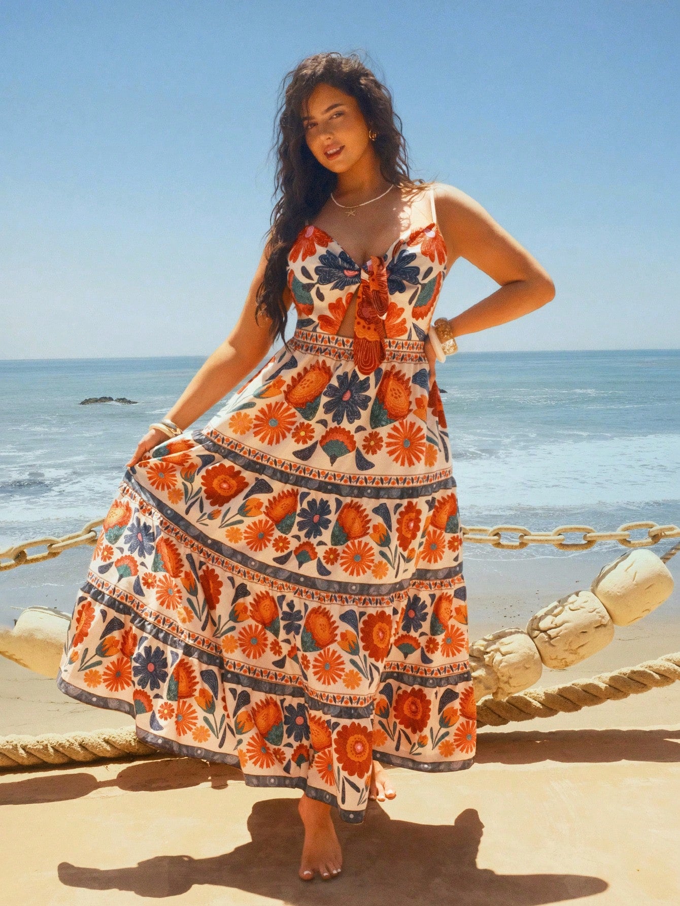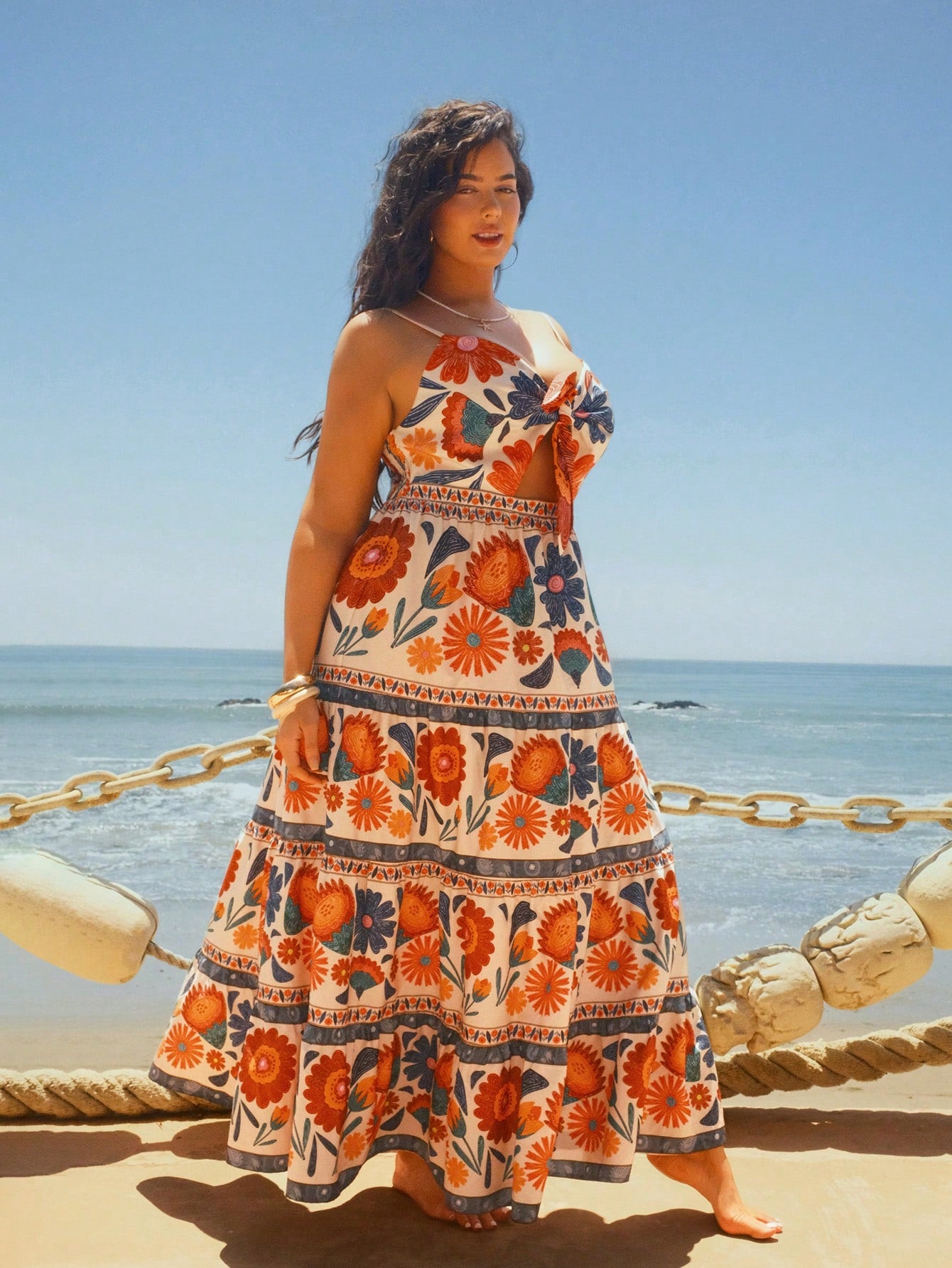 Travachic Plus Size Romantic Floral Print Front Twist Dress For Women, Pink, Summer Women Summer Clothing