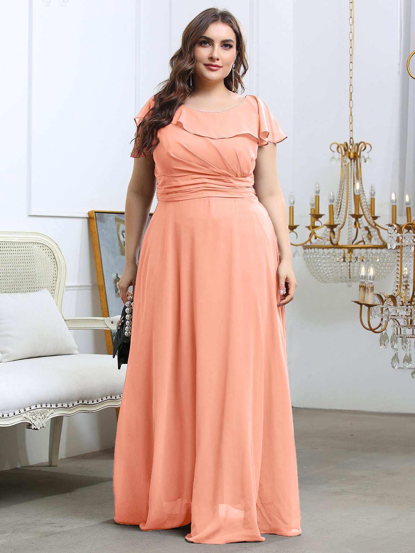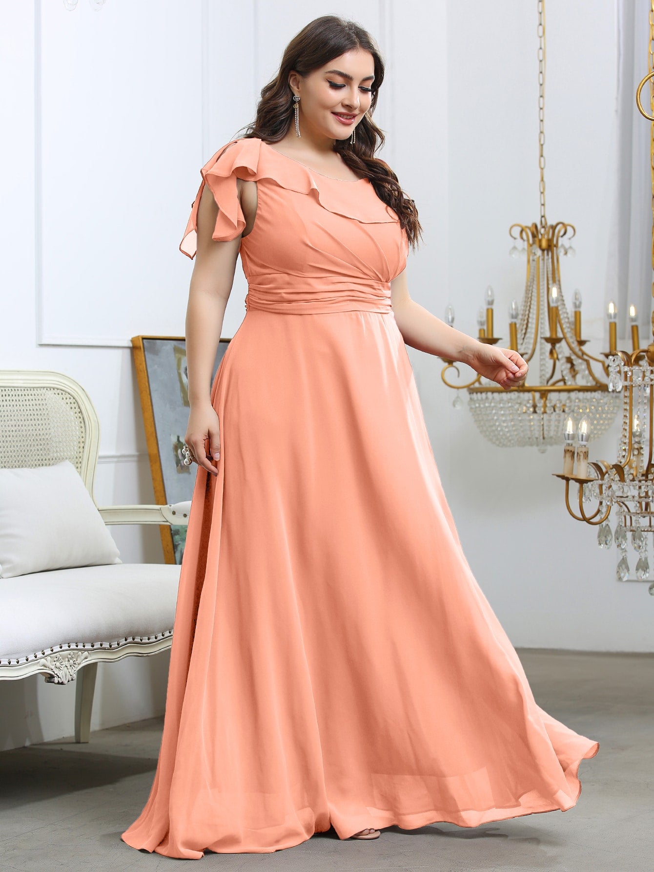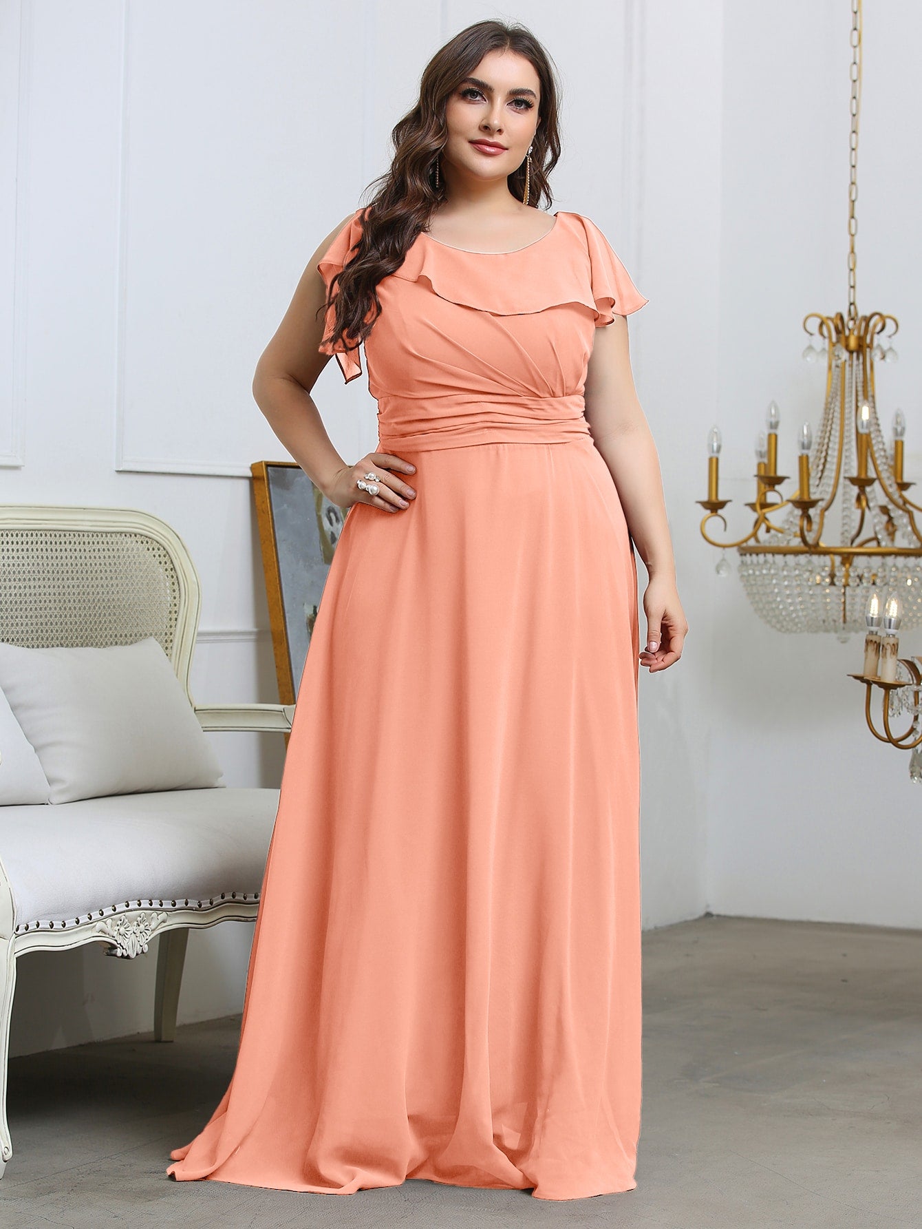 Plus Ruffle Ruched Chiffon Maxi Dress
