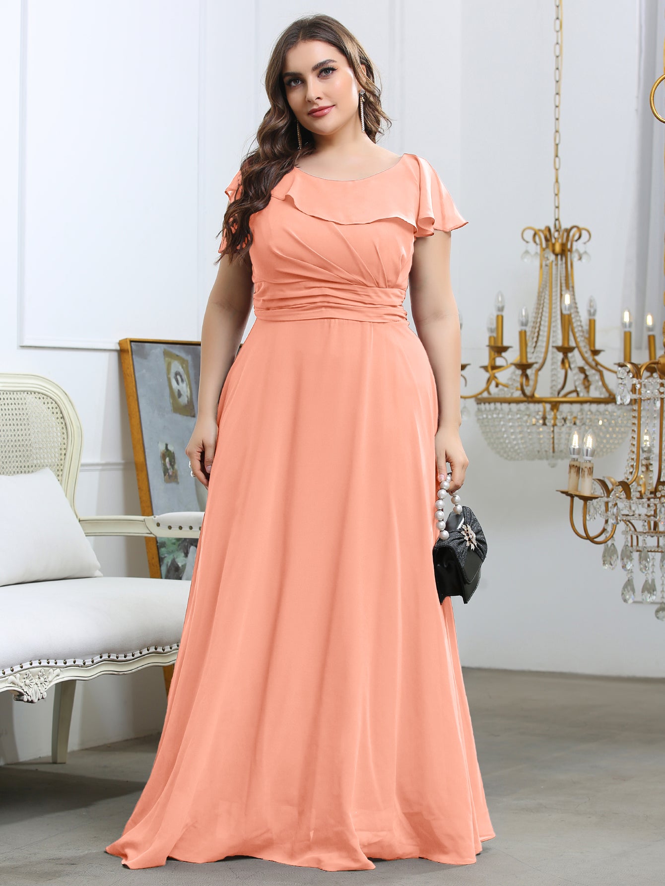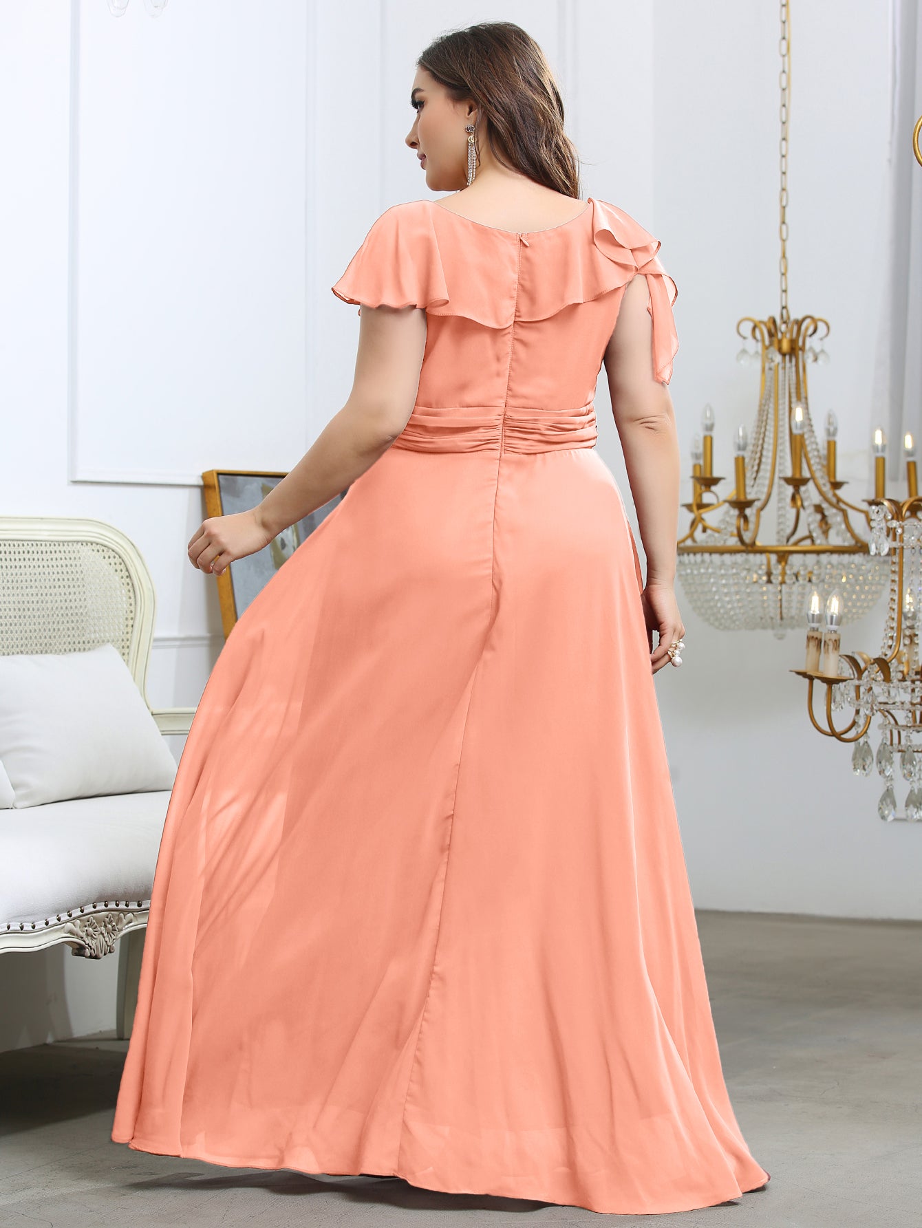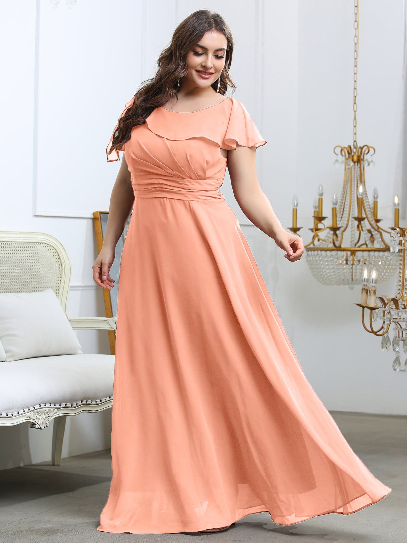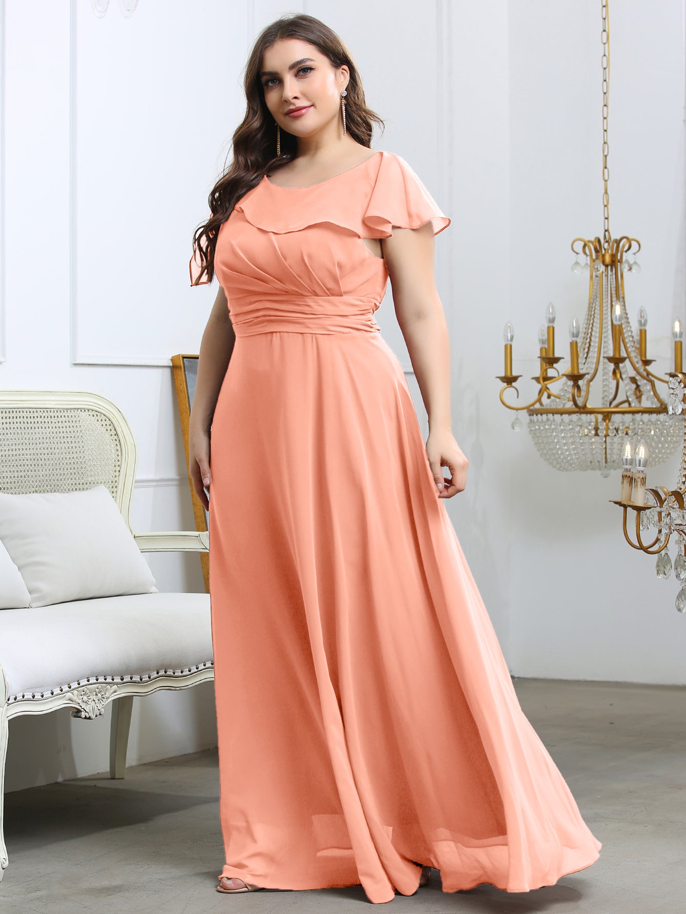 Plus Ruffle Ruched Chiffon Maxi Dress