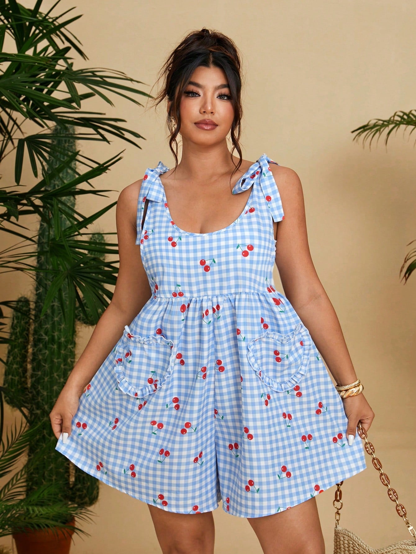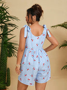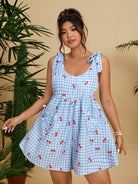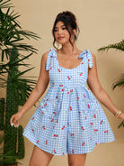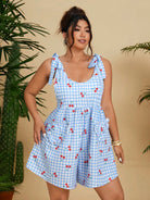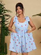 women Flirla Plus Size Fashionable Blue Cute Cherry Heart Jumpsuit