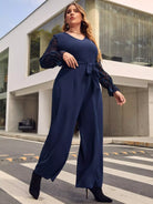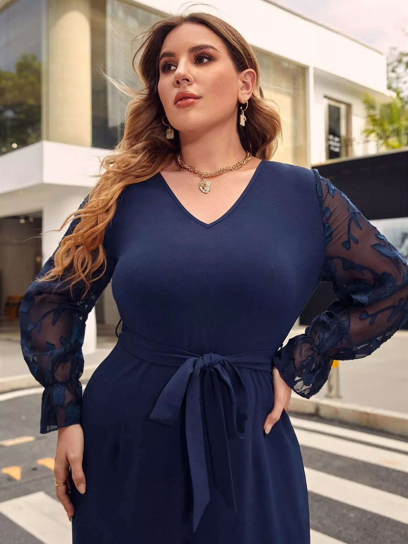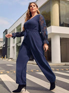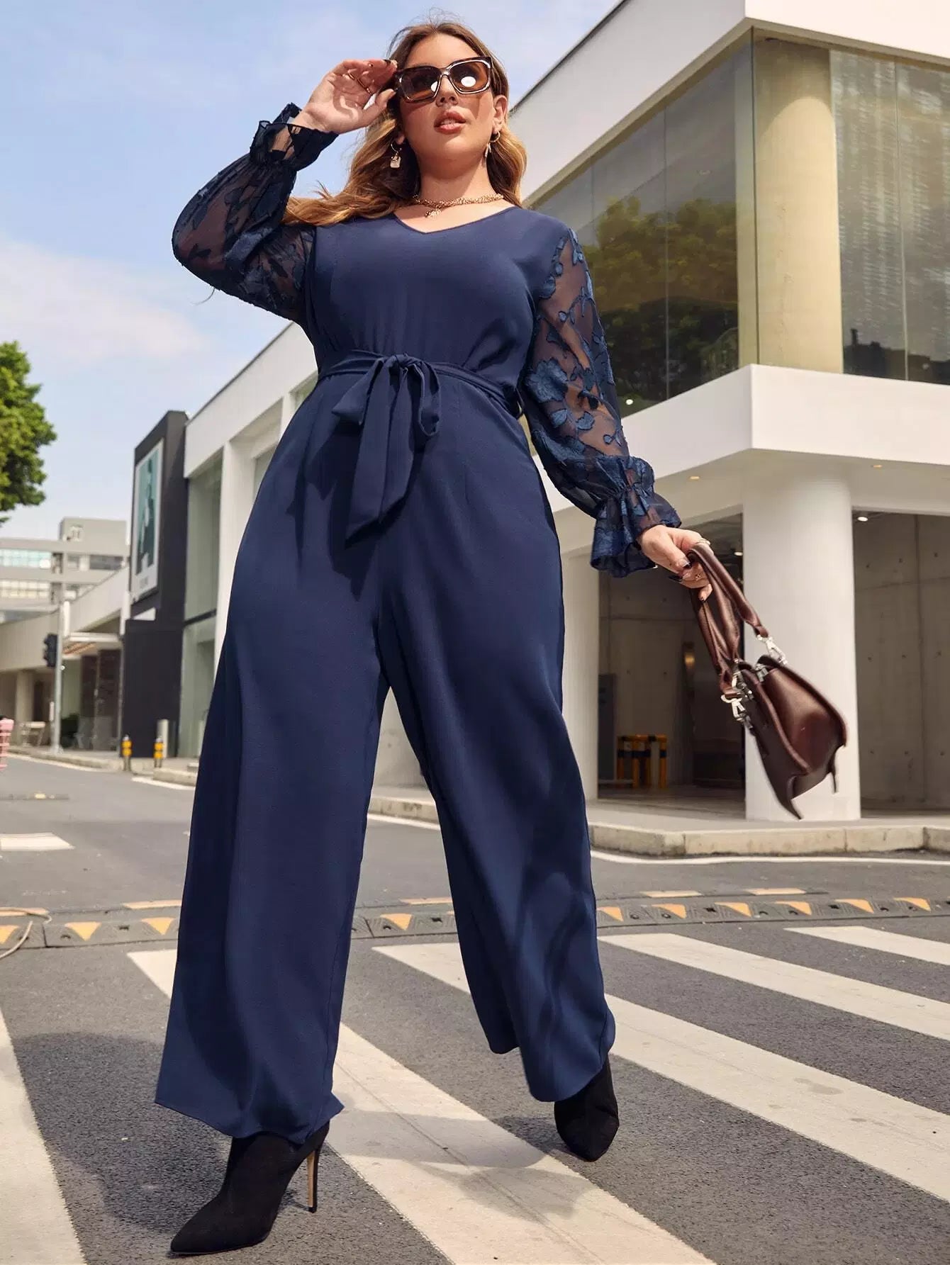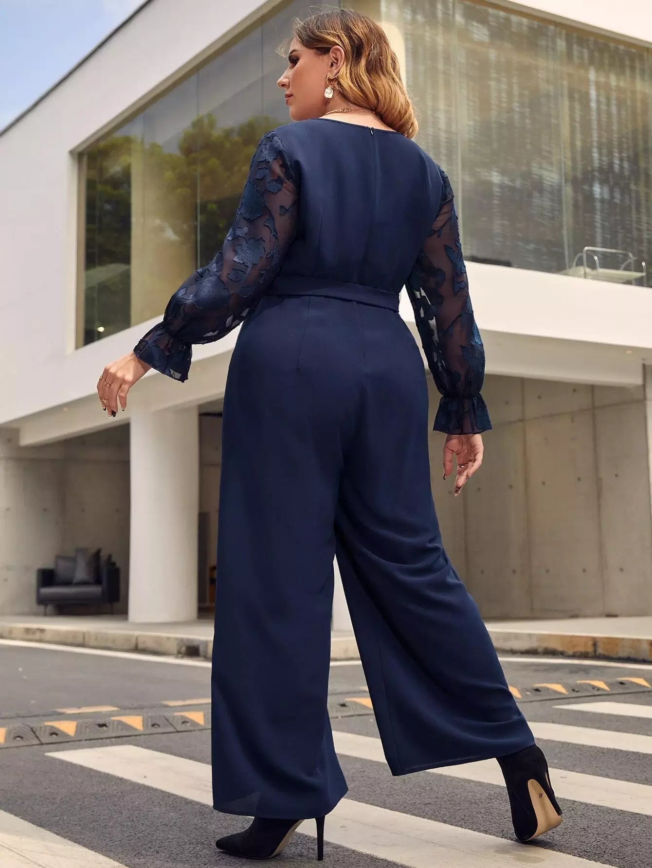 Plus Contrast Floral Mesh Flounce Sleeve Jumpsuit Without Belt