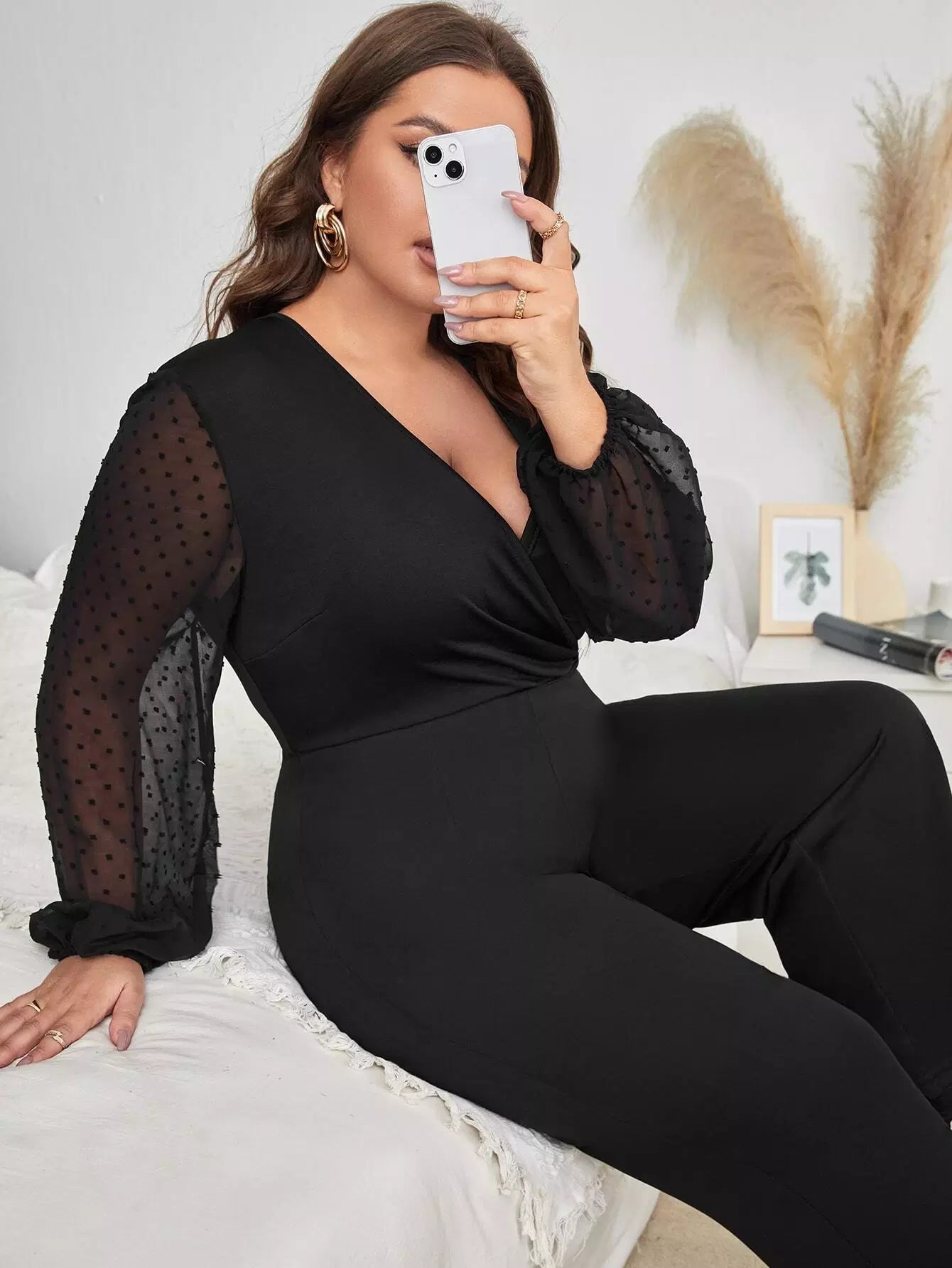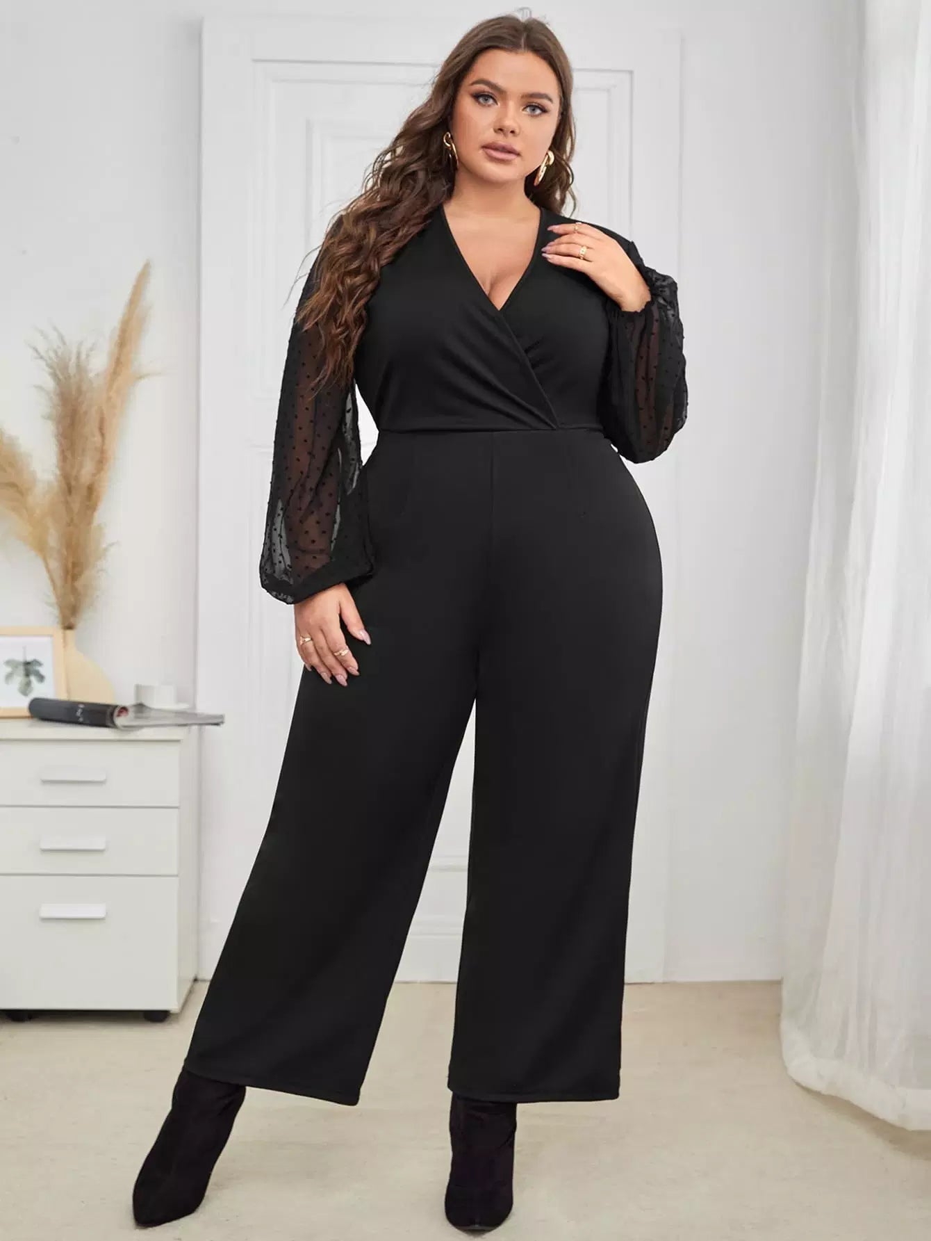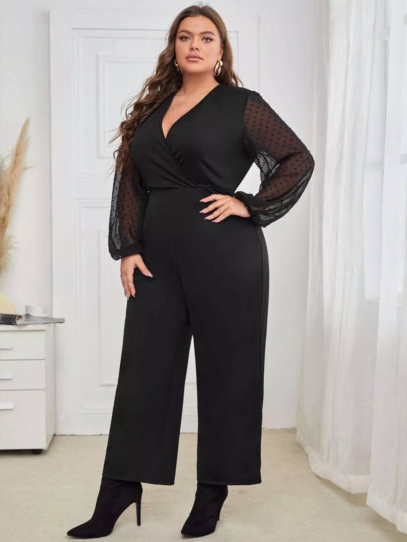 Plus Dobby Mesh Bishop Sleeve Warp Jumpsuit