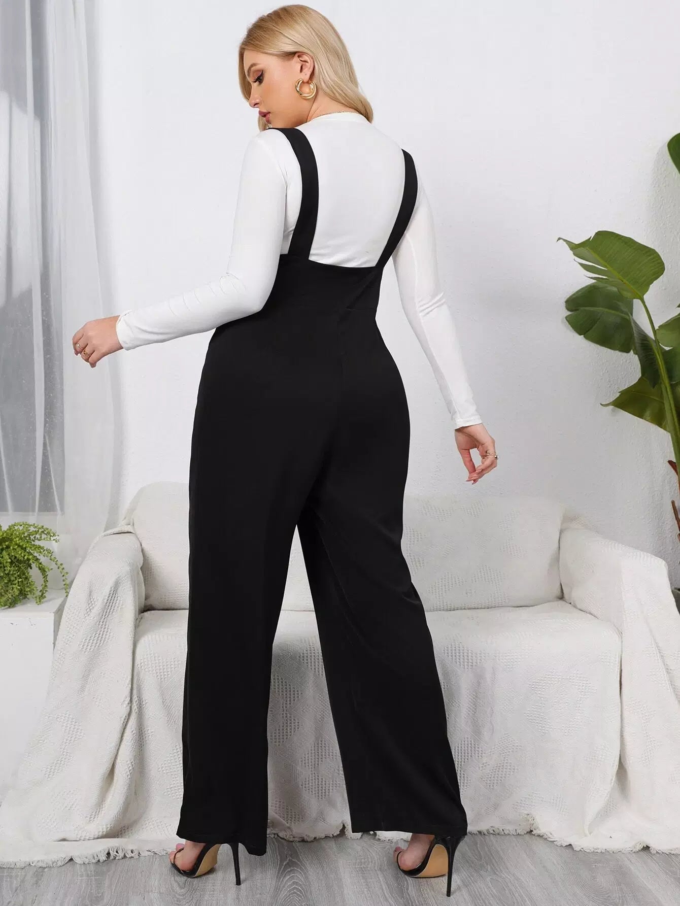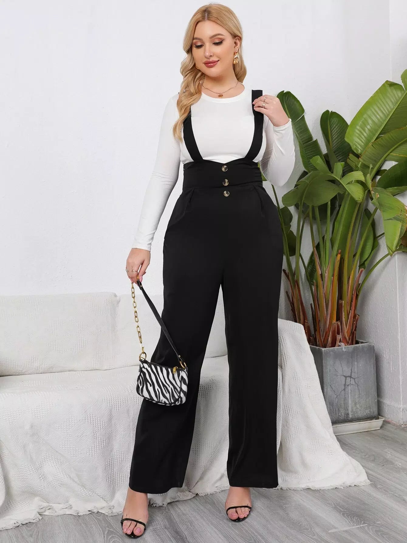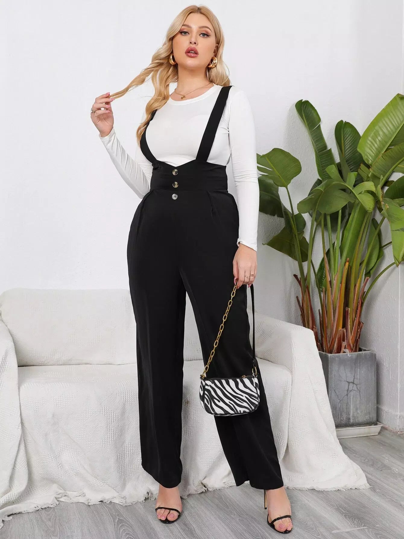 Plus Fake Button Plicated Detail Overalls Without Tee