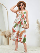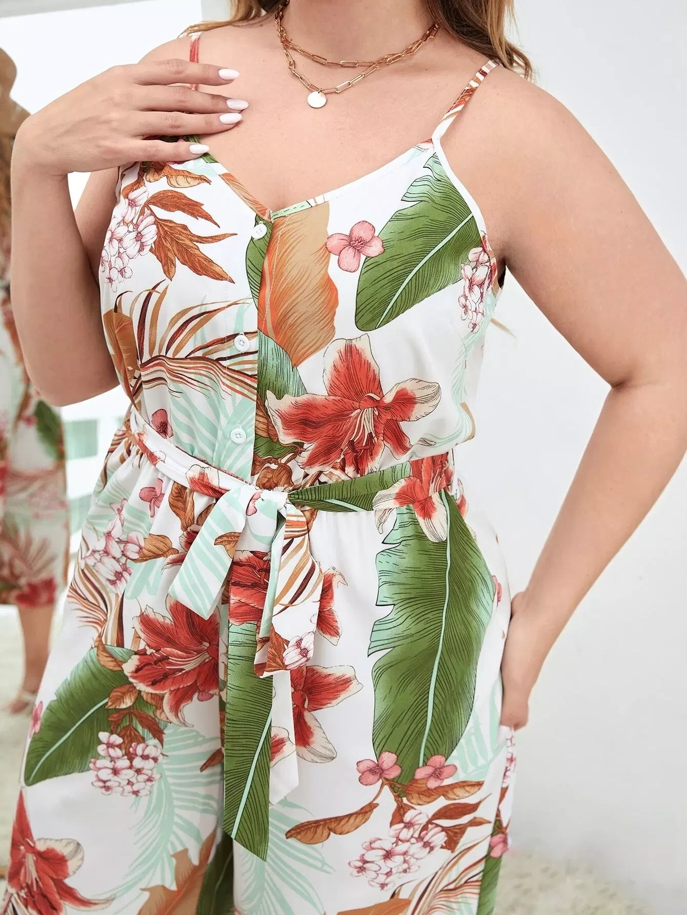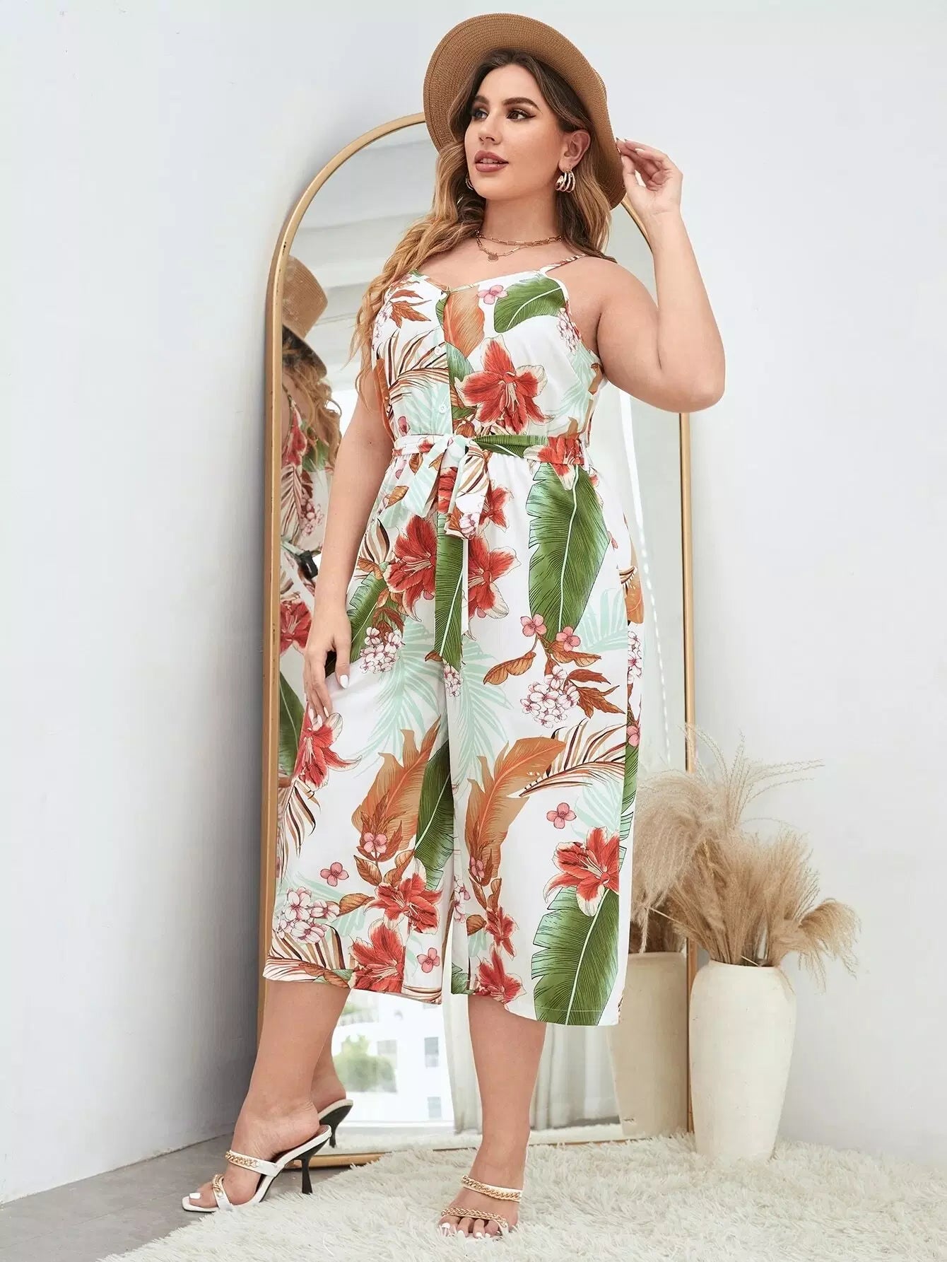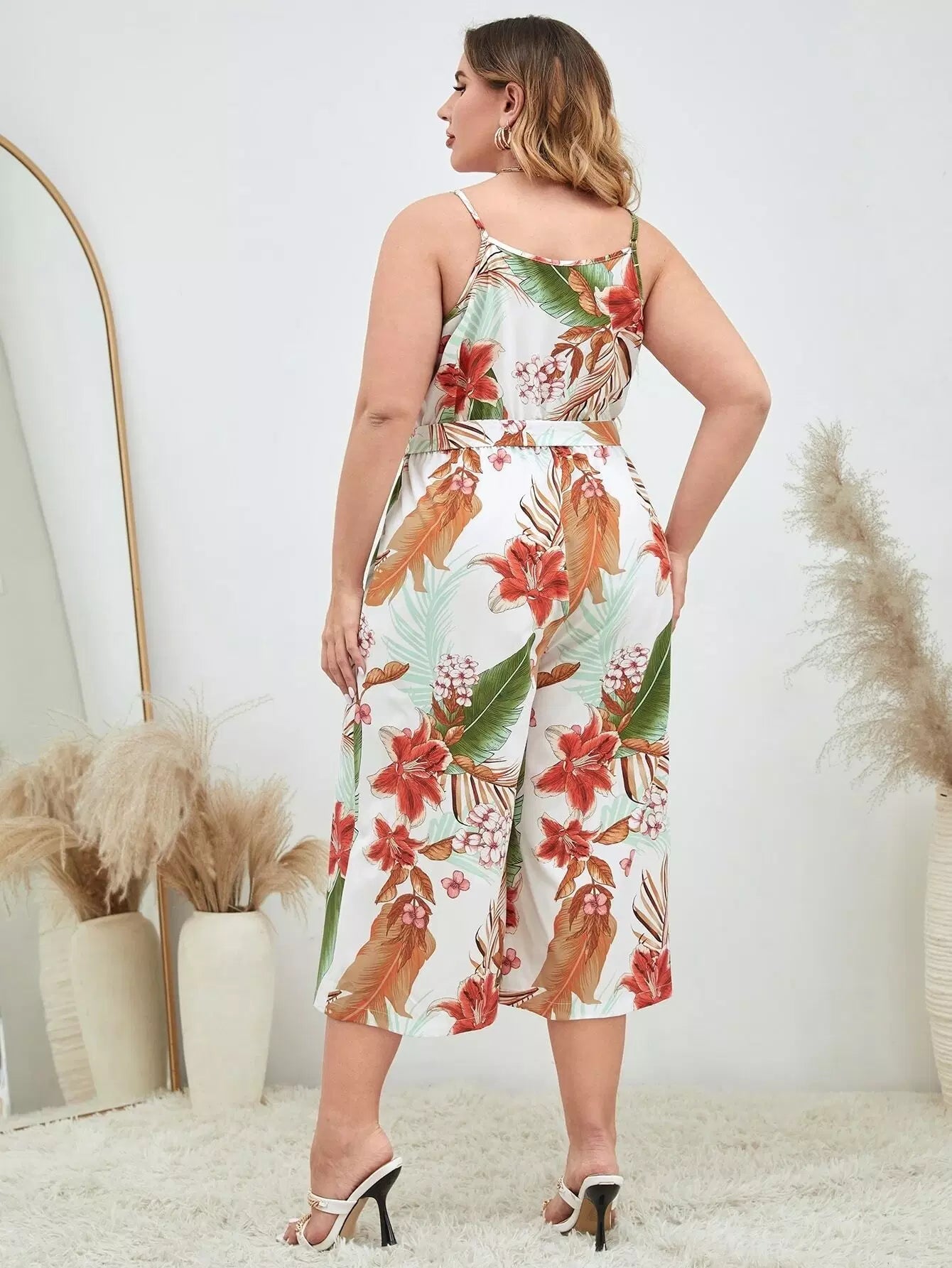 Plus Floral Print Wide Leg Cami Jumpsuit Without Belt