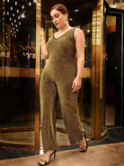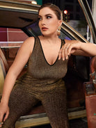 Plus Glitter Contrast Binding Jumpsuit