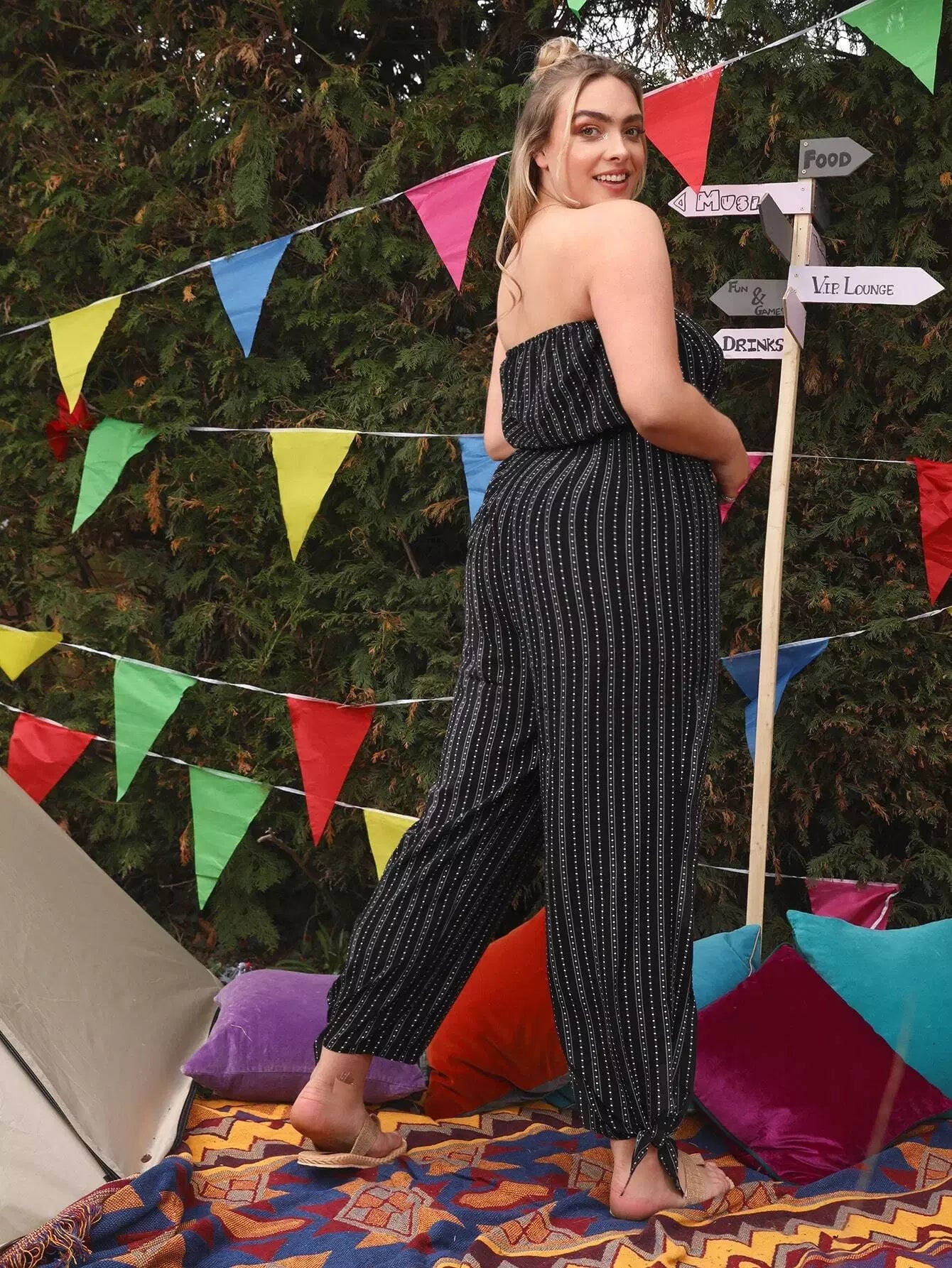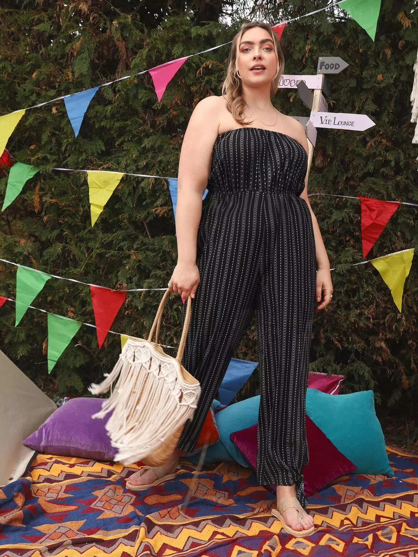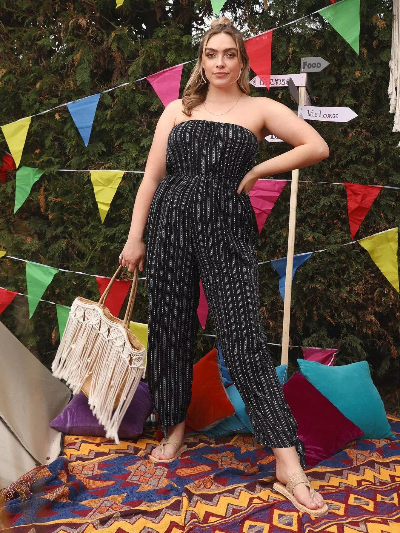 Plus Knot Hem Polka Dot and Striped Tube Jumpsuit