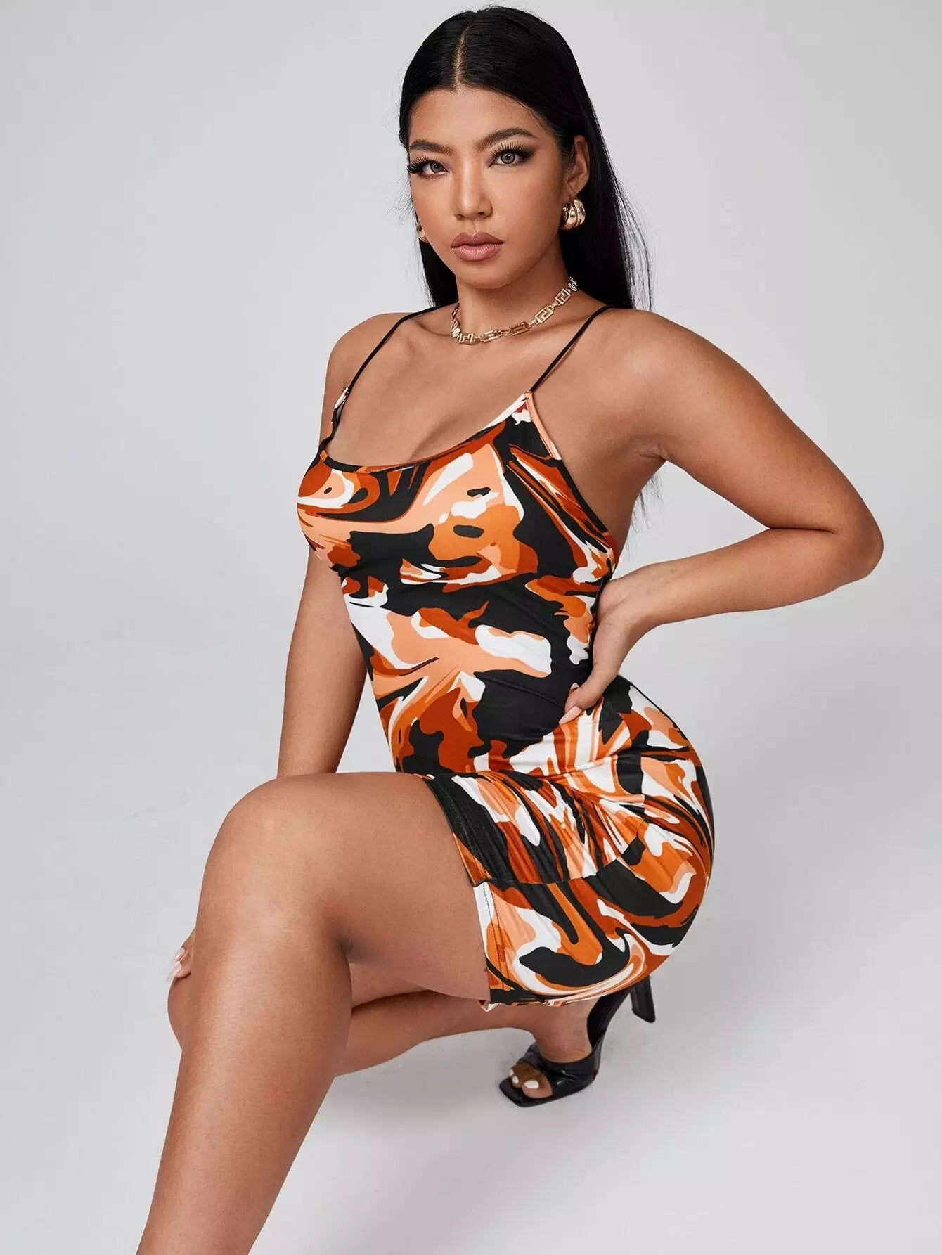 Plus Marble Print Crisscross Open Back Unitard Romper