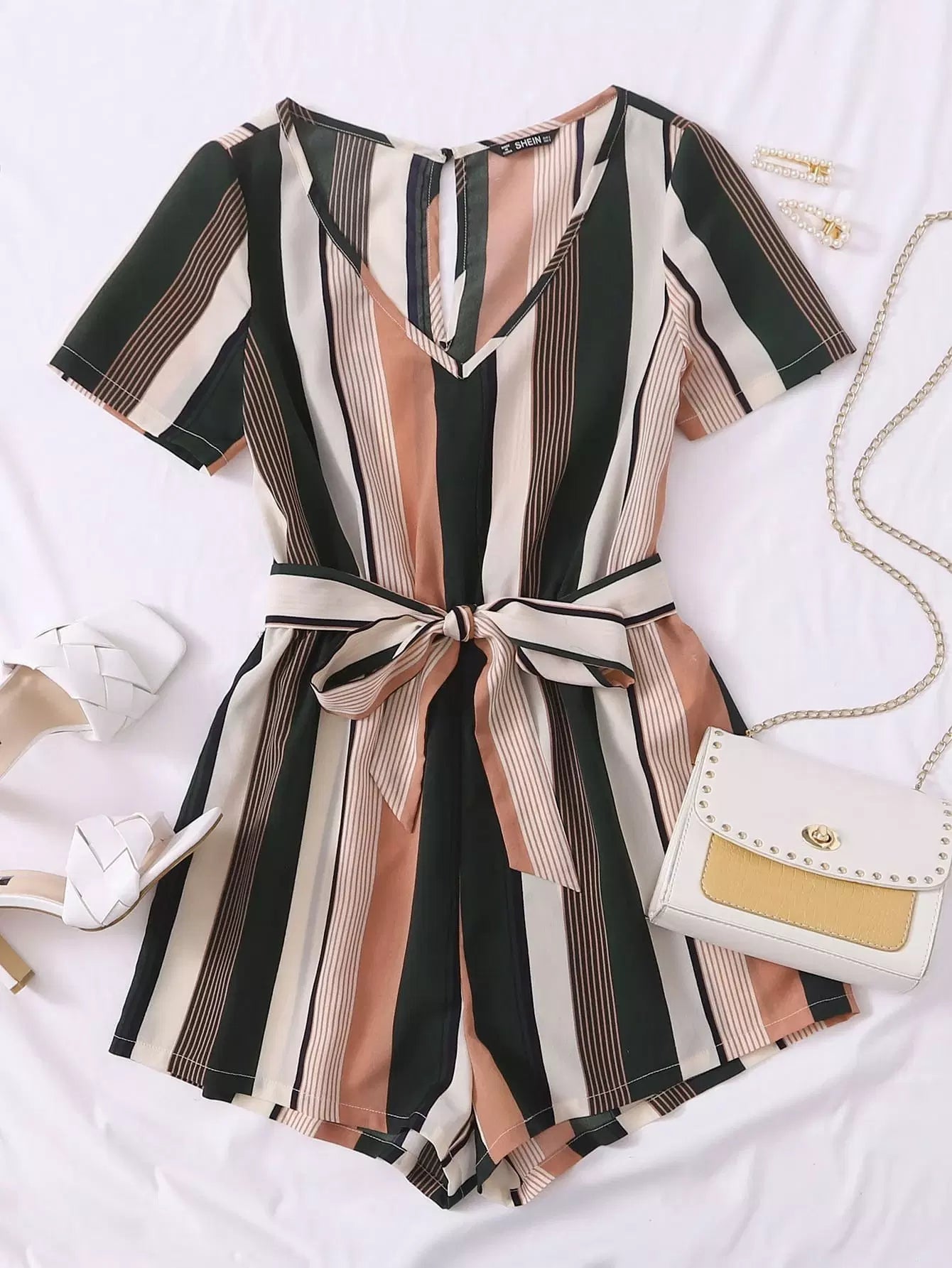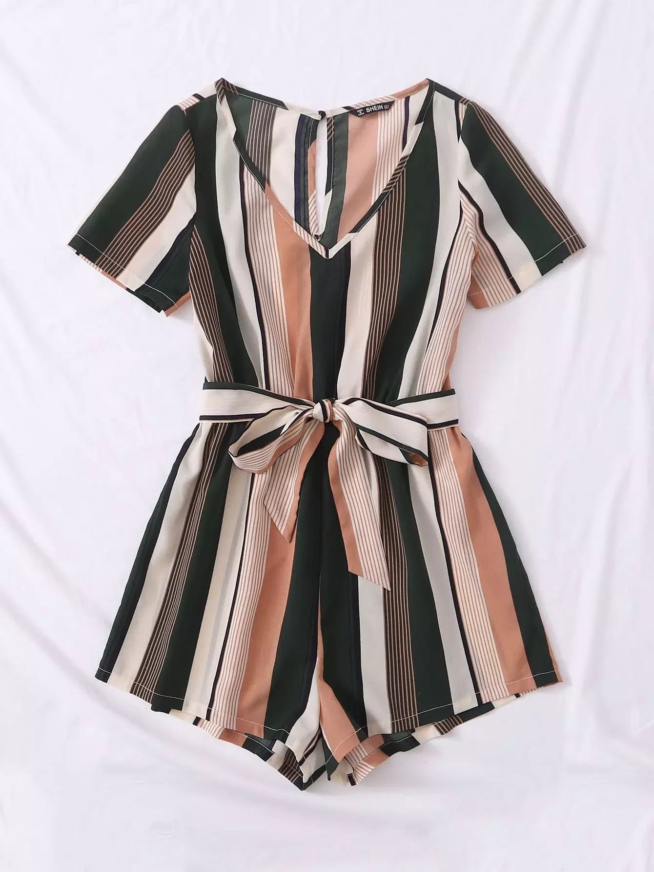Plus Self Striped Romper Without Belt