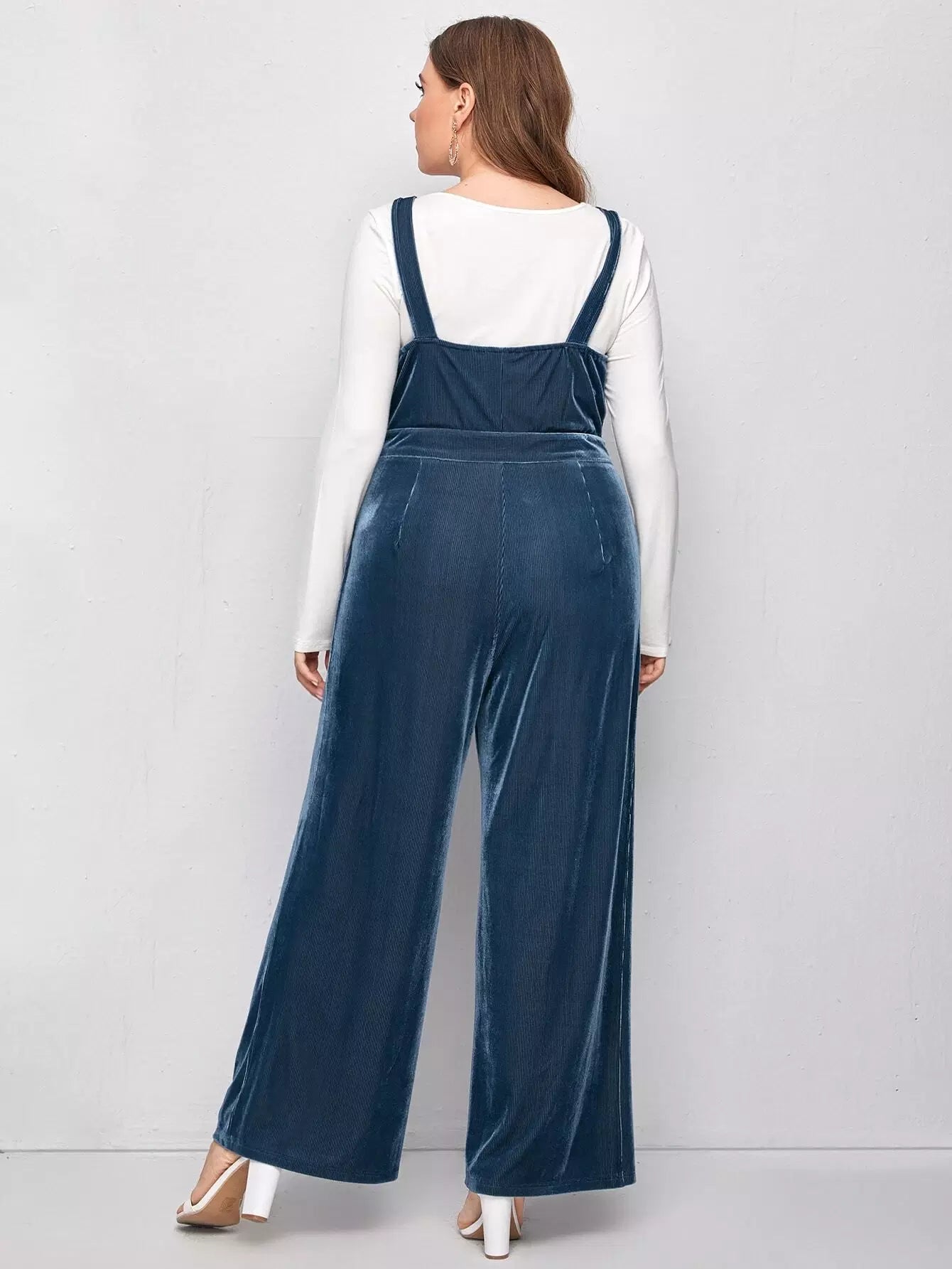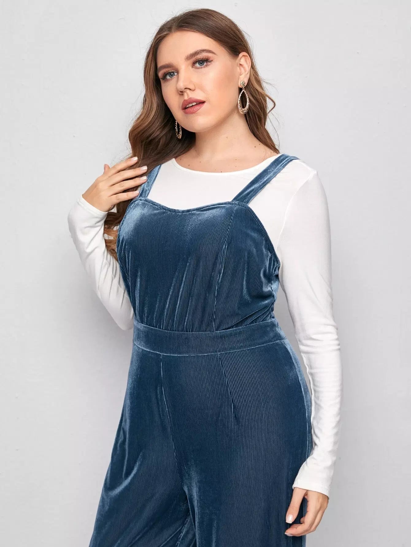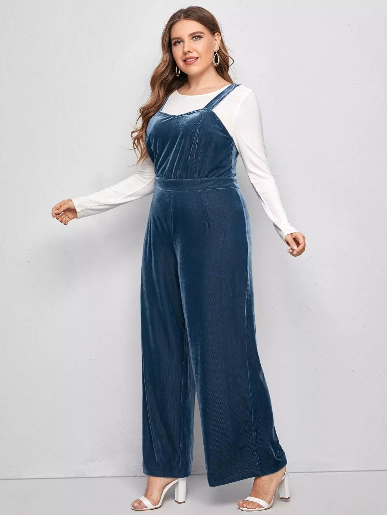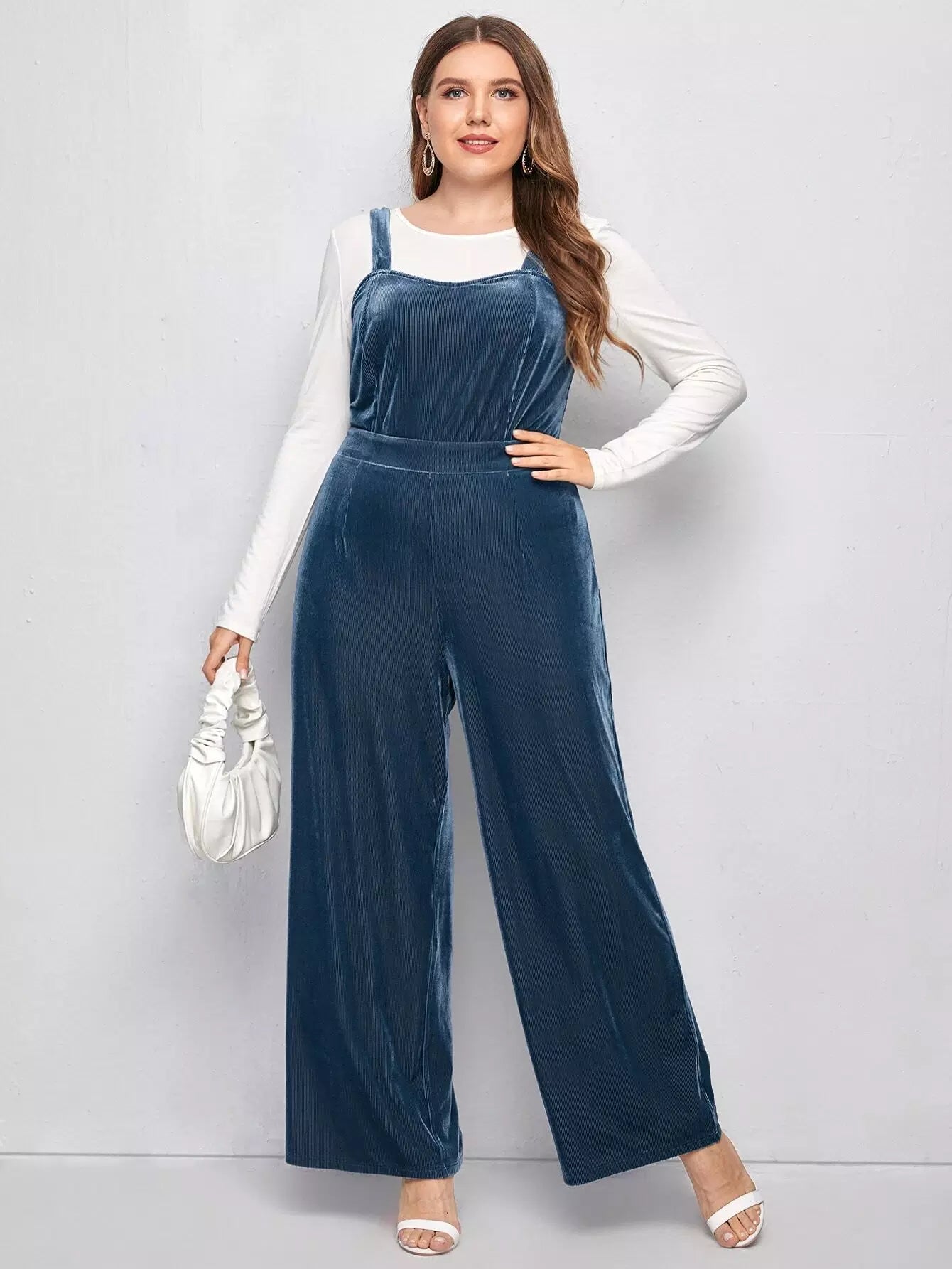 Plus Solid Velvet Cami Jumpsuit Without Tee