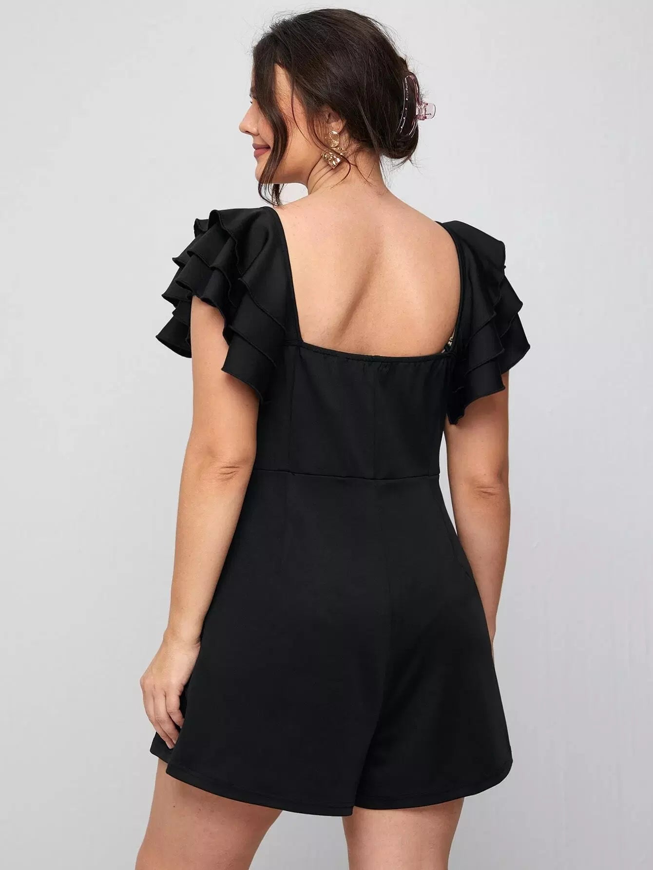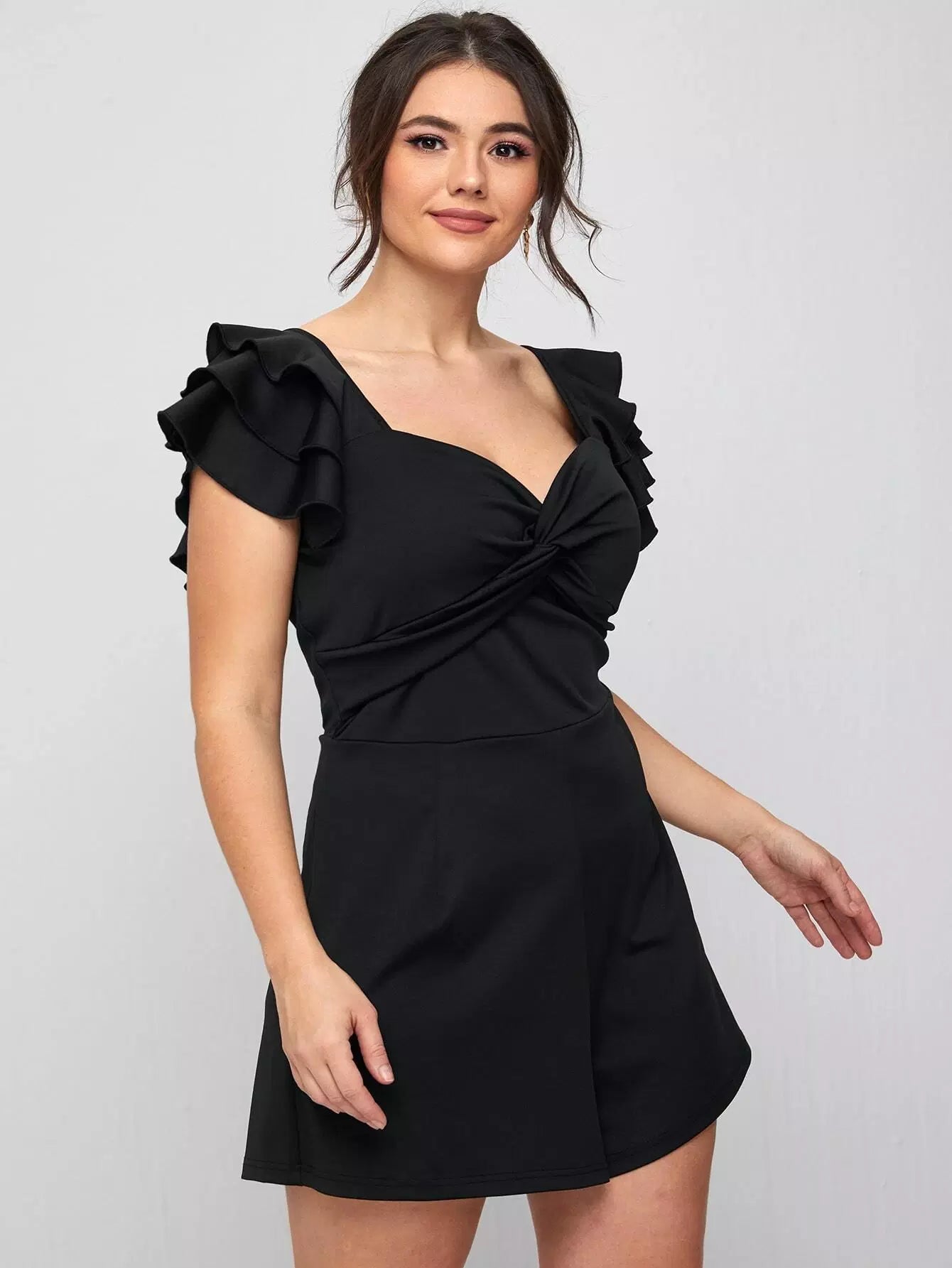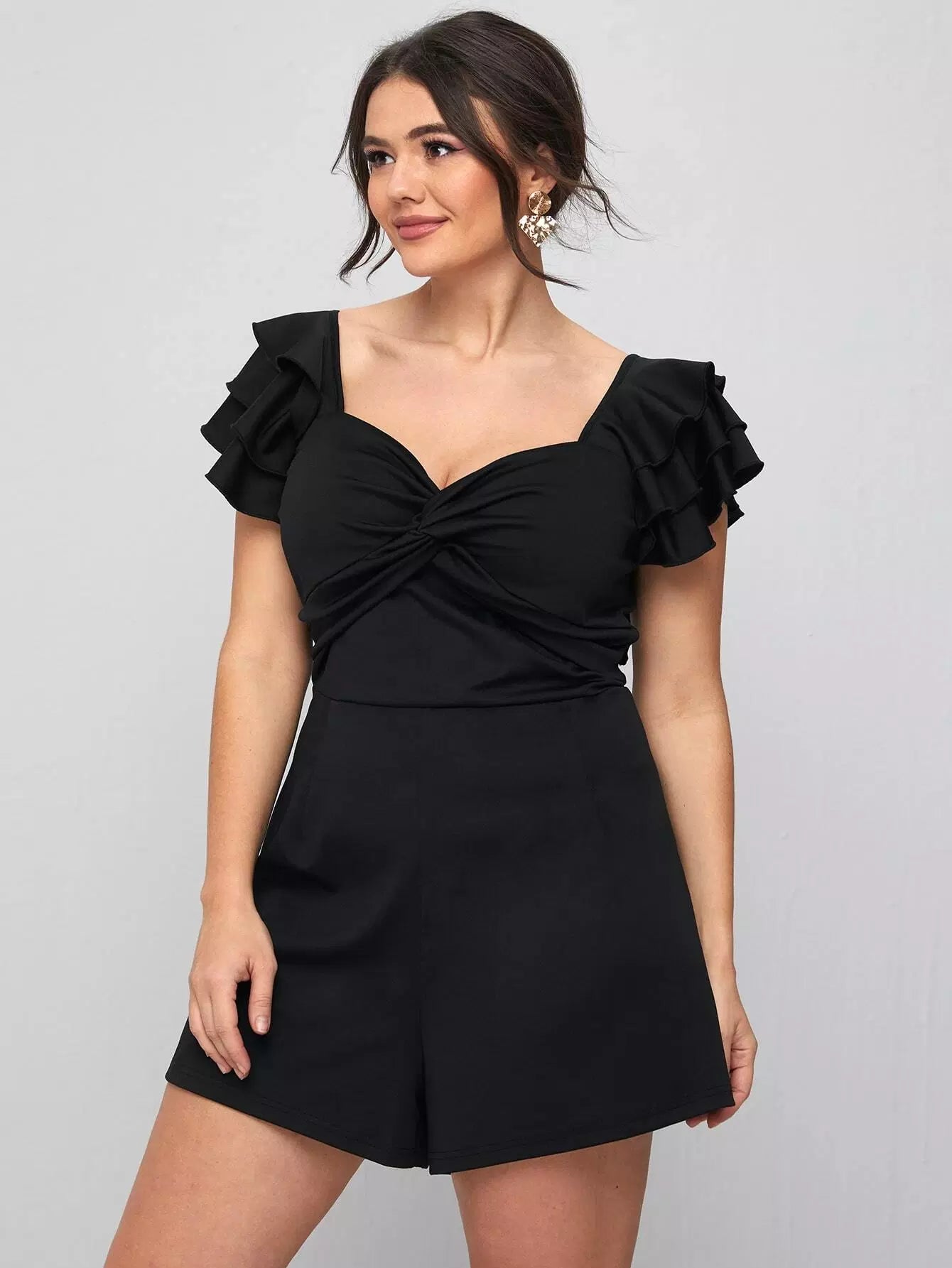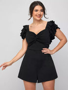 Plus Sweetheart Neck Ruffle Trim Twist Romper